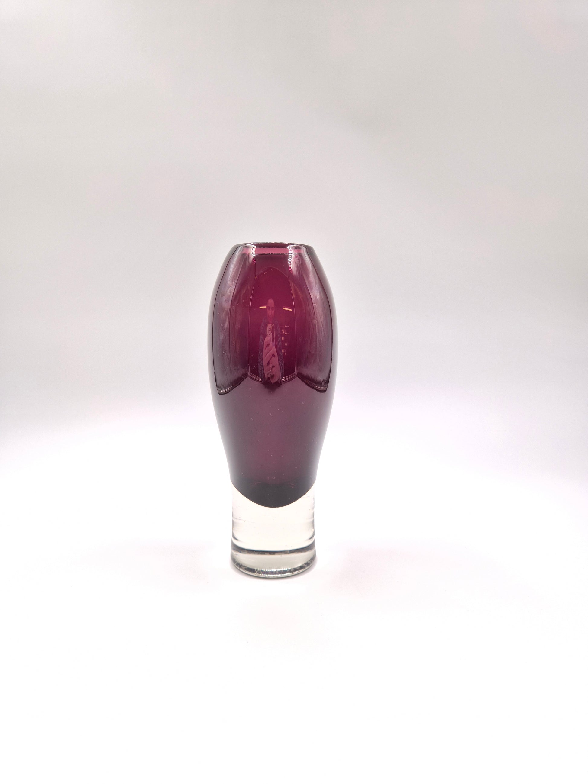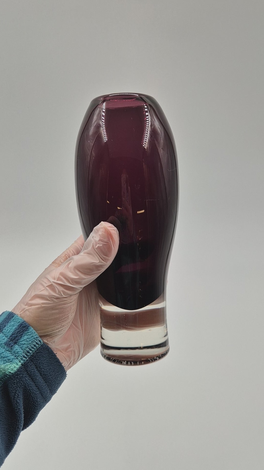 The "Nimipäivä" series, meaning "Name Day" in Finnish, was produced between 1959 and 1967. This particular vase features a delicate lilac hue, achieved through the spinning-blown color holster technique, which gives the glass its unique depth and luminosity.