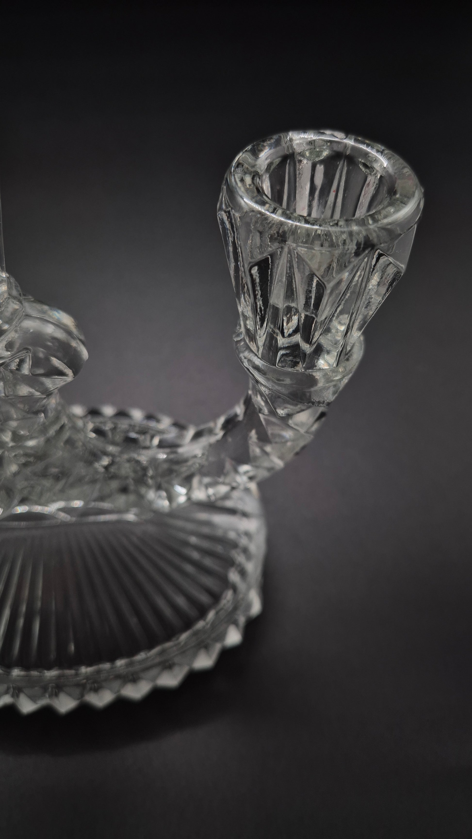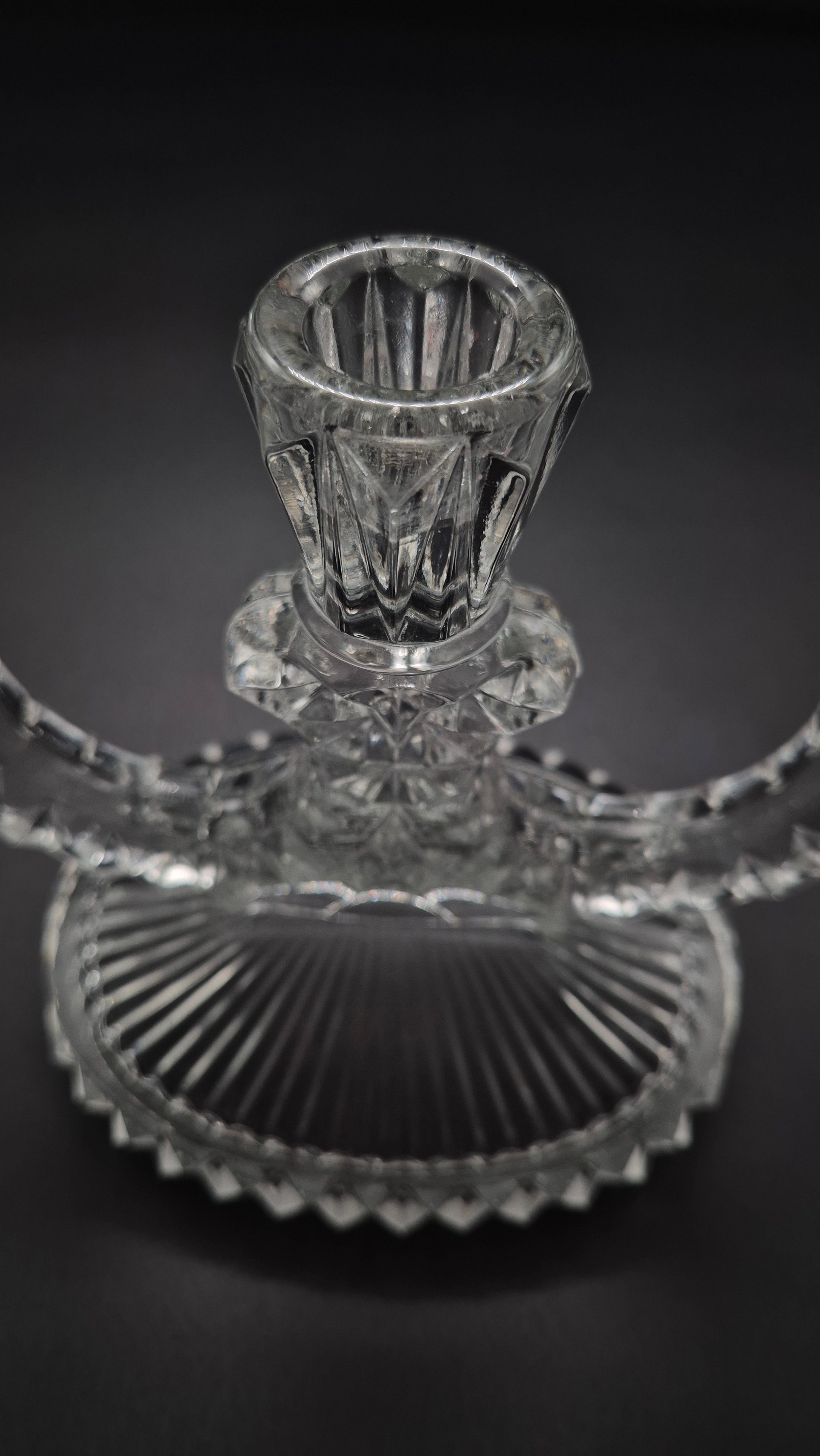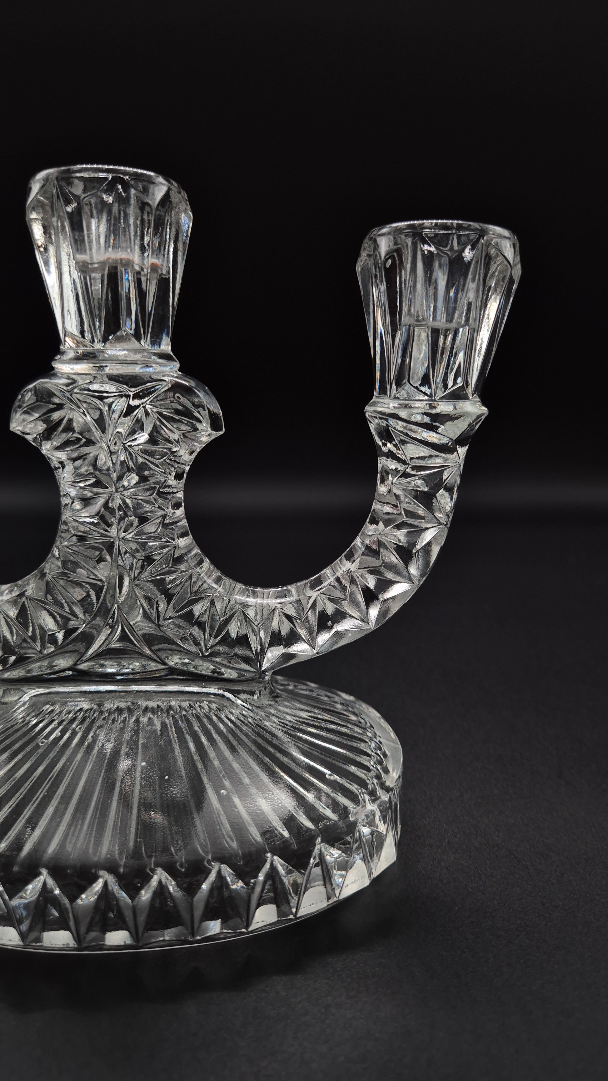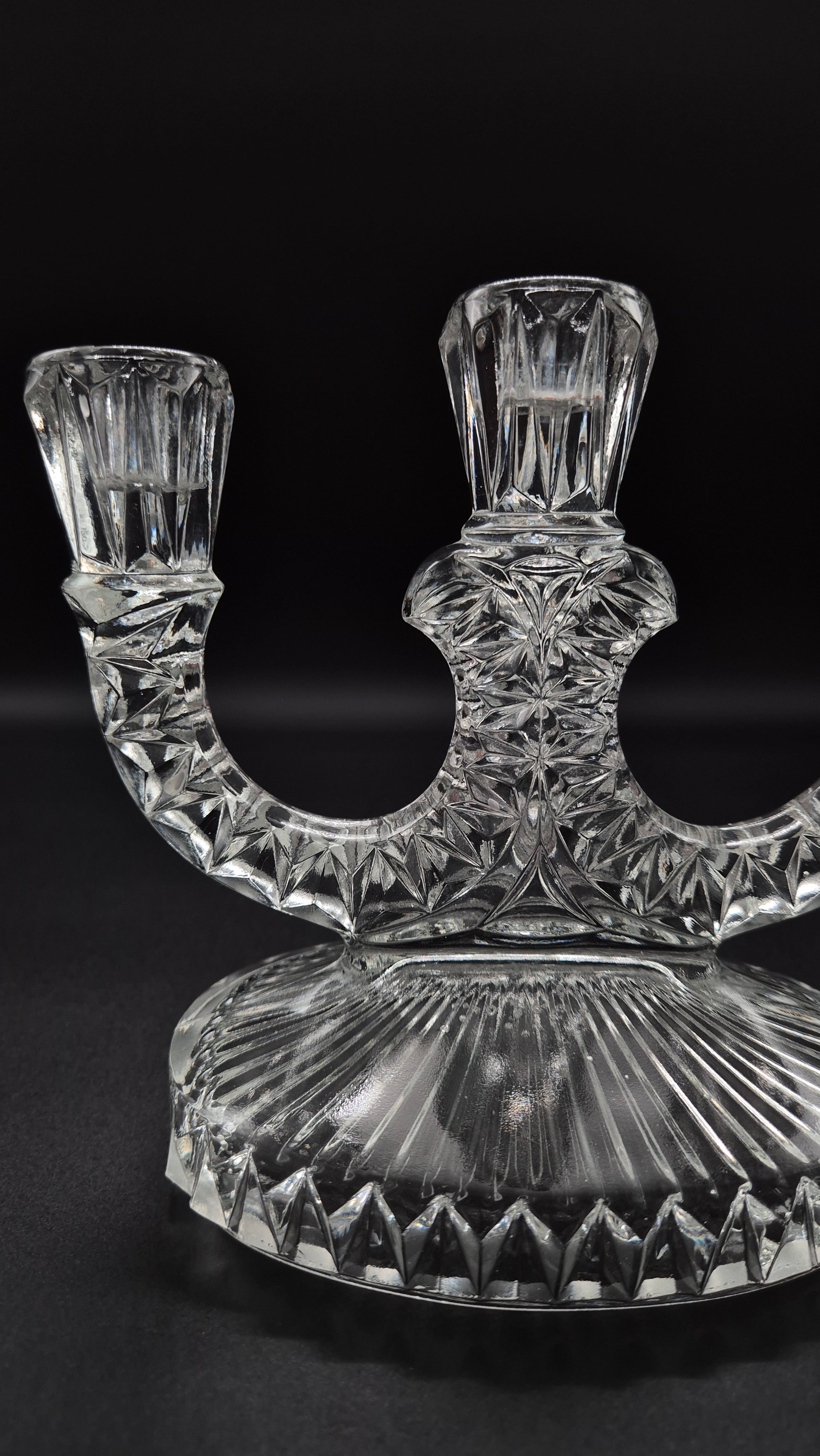 Add vintage glamour to your space with this stunning Art Deco Pressed Glass Candelabra. Featuring geometric lines and elegant symmetry, this piece exemplifies the iconic Art Deco style of the early 20th century. Crafted from pressed glass, it beautifully catches and reflects light, making it a perfect centerpiece or accent for formal dining, vintage decor, or collector displays.