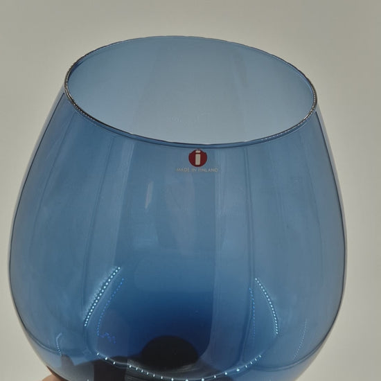 A refined example of Finnish glass design, this dark blue aroma glass by Erkki Vesanto for Iittala blends functional elegance with sculptural form. Designed for capturing and enhancing aromas, the glass is both tactile and visually striking. Its deep blue tone and minimalist shape reflect the timeless style of mid-century Finnish craftsmanship, making it a beautiful piece for display or use.