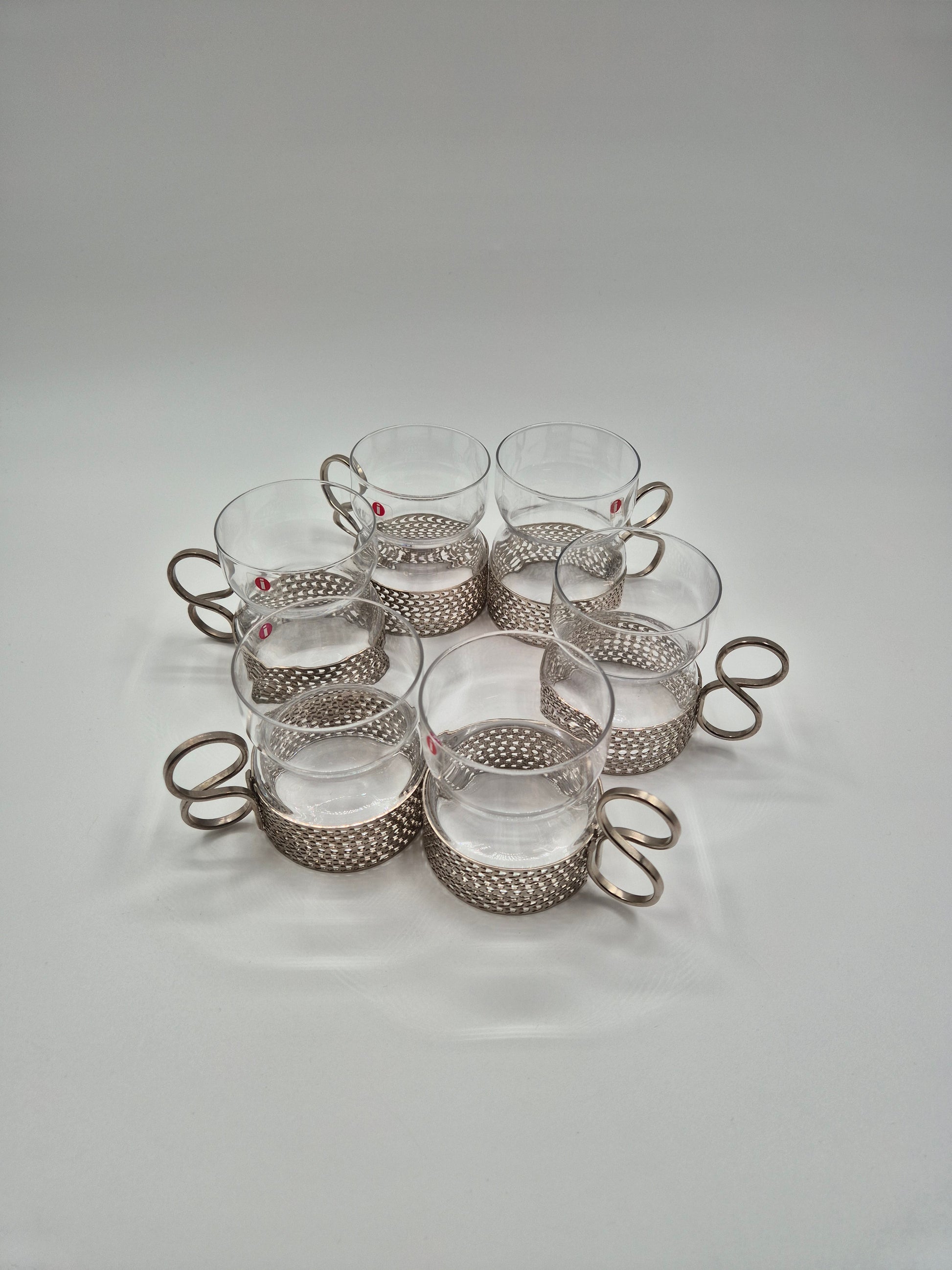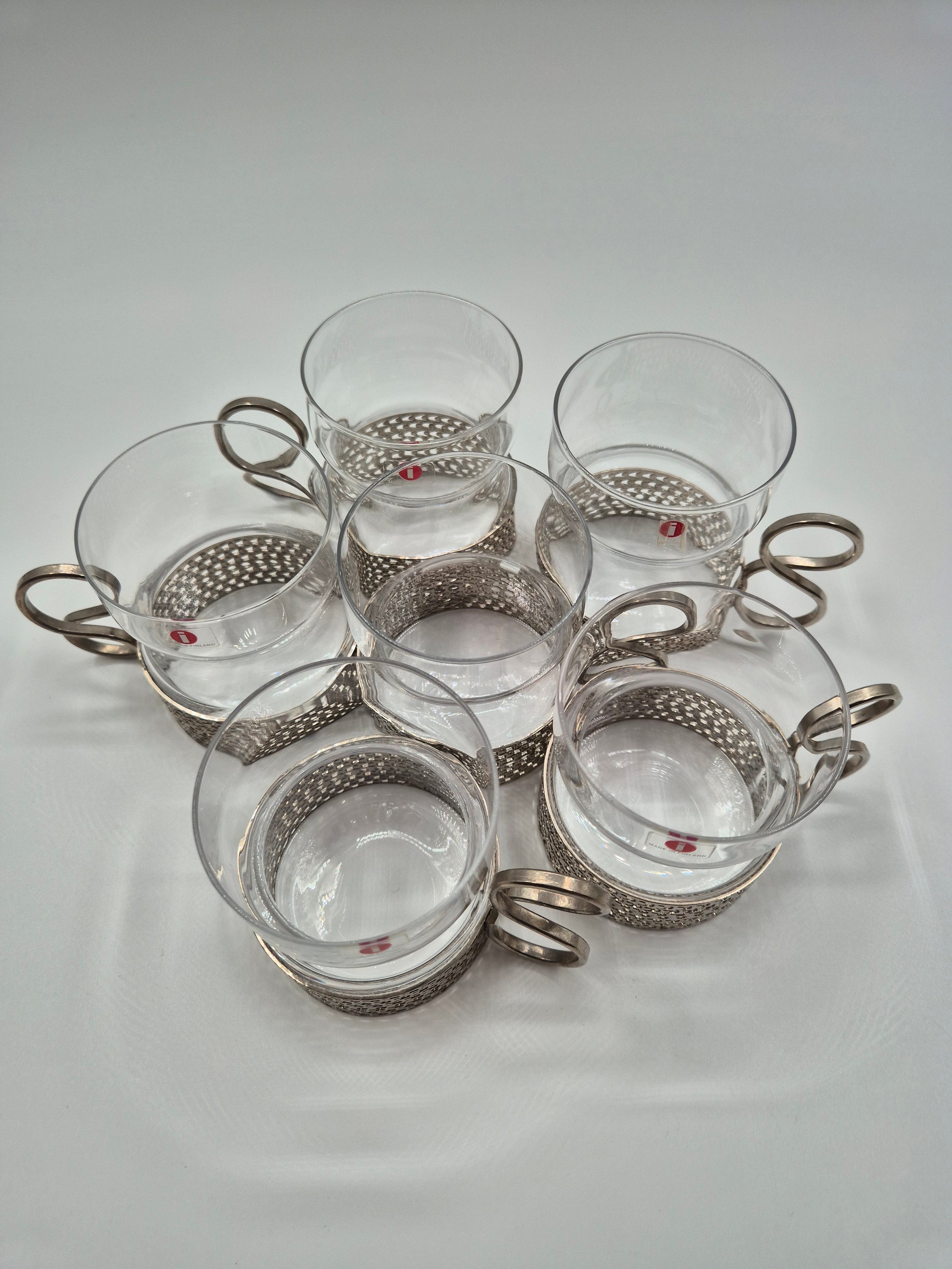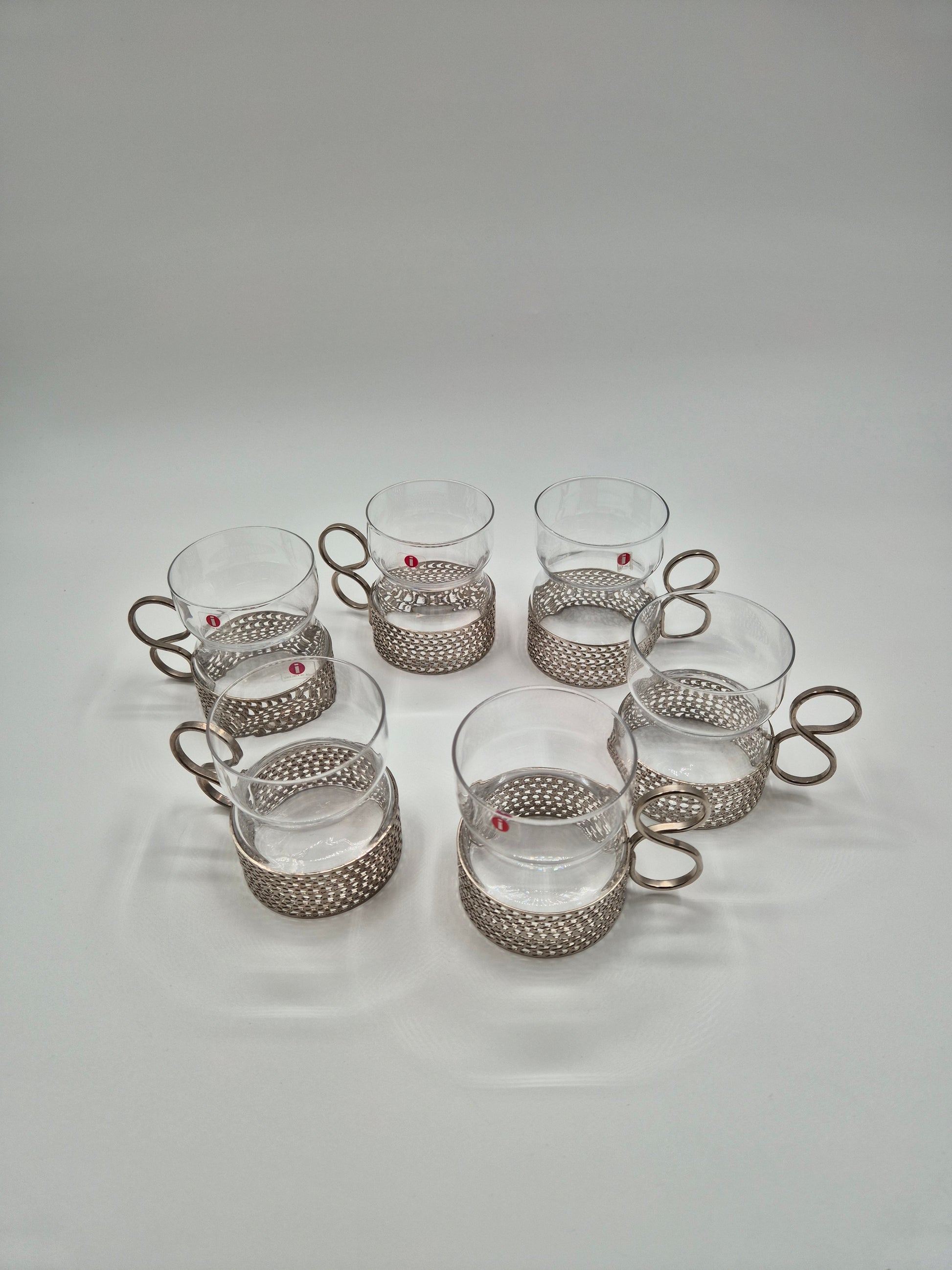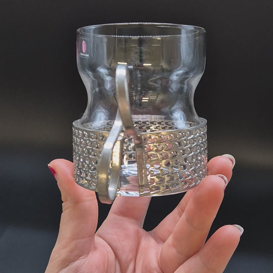 Designed in 1957 by renowned Finnish designer Timo Sarpaneva, the Tsaikka mug is a Scandinavian icon. Crafted by Iittala, it features a removable heat-resistant glass insert held by a decorative metal holder with elegant loop handles combining practicality with mid-century elegance.