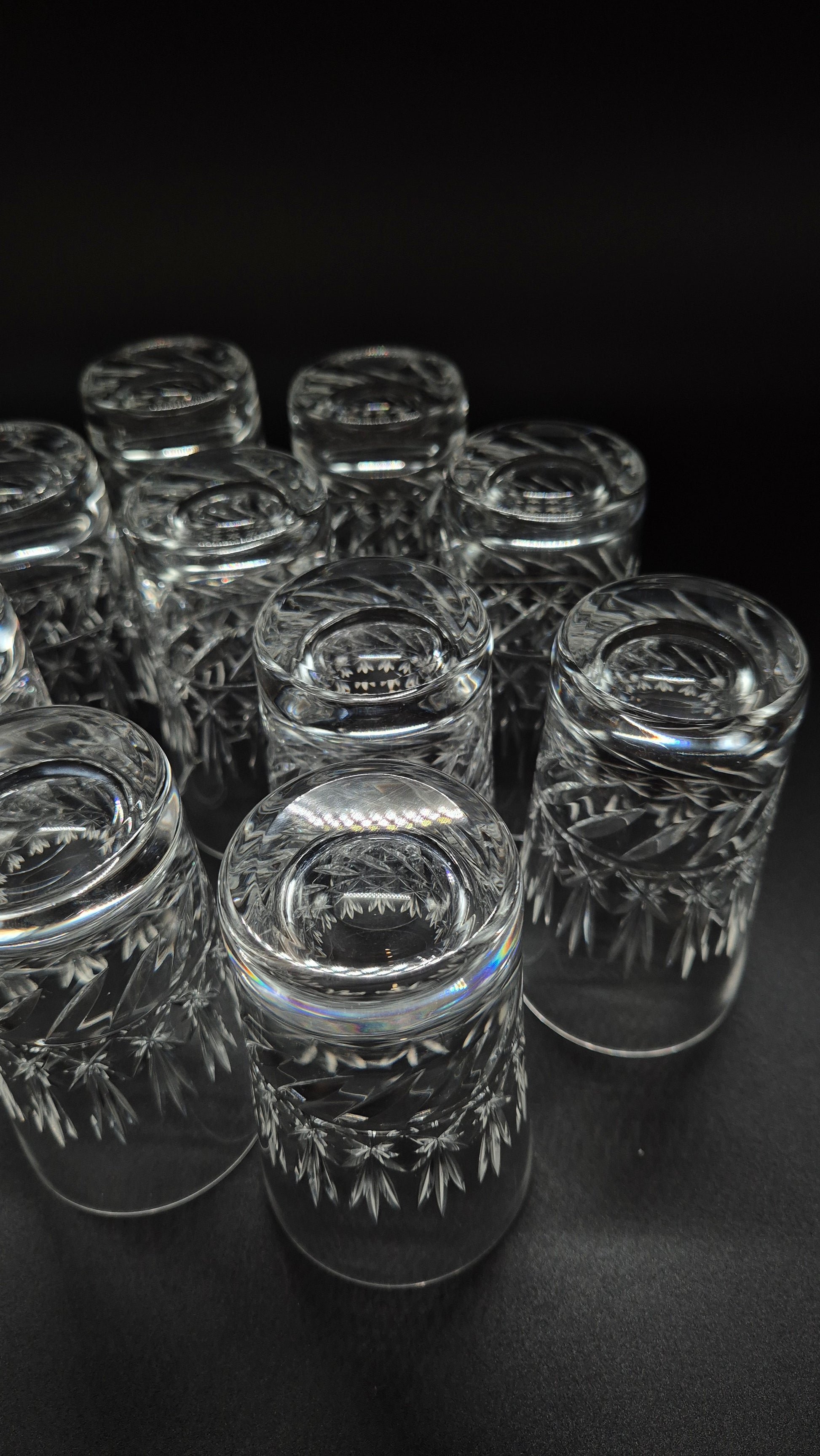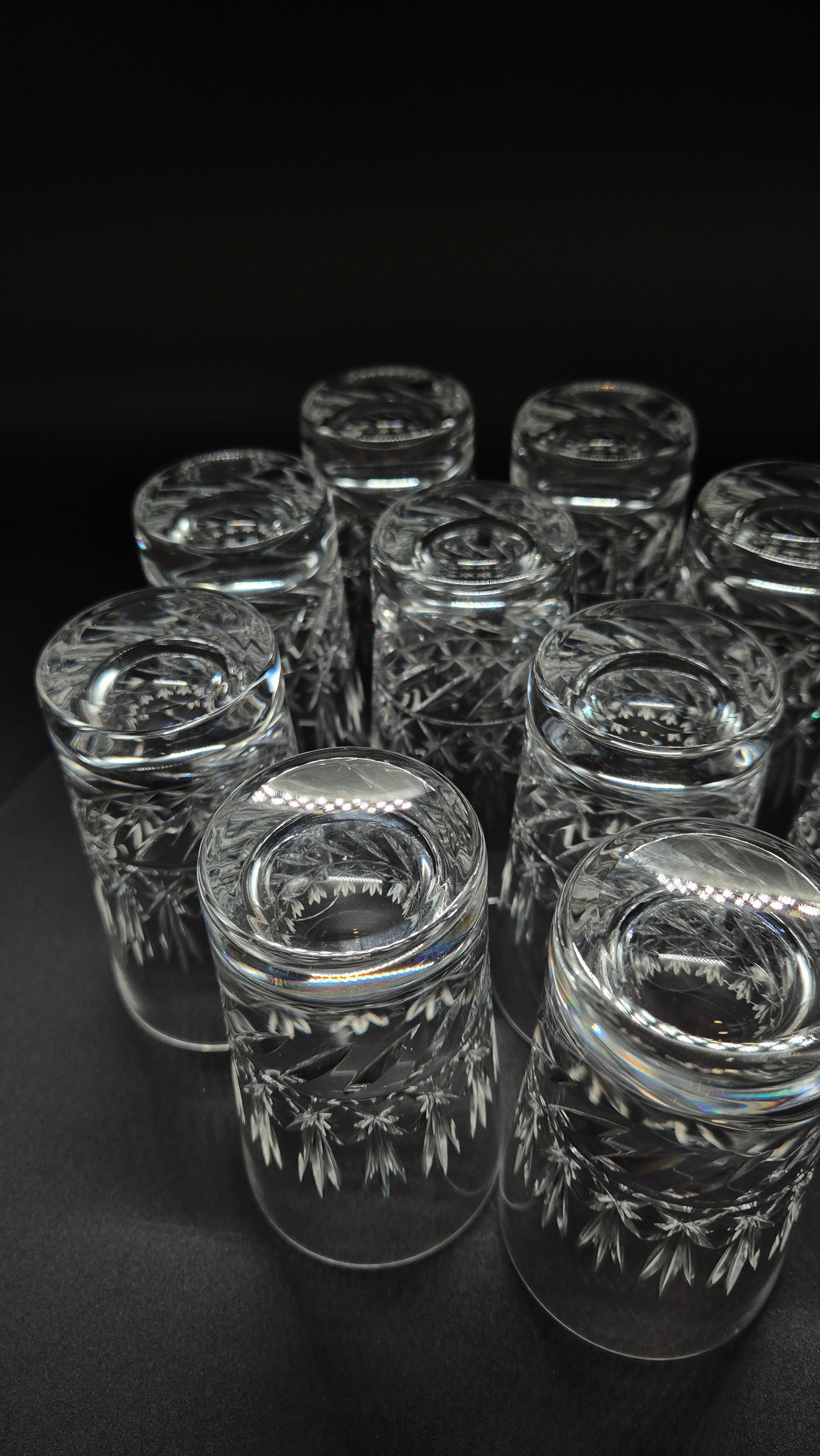 The price is for one glass and at the moment we've got only 10 glass left in the warehouse. All 10 glasses are in an excellent vintage crystal condition. Perfect lightweight and super pretty they are as you see in the video and photos.