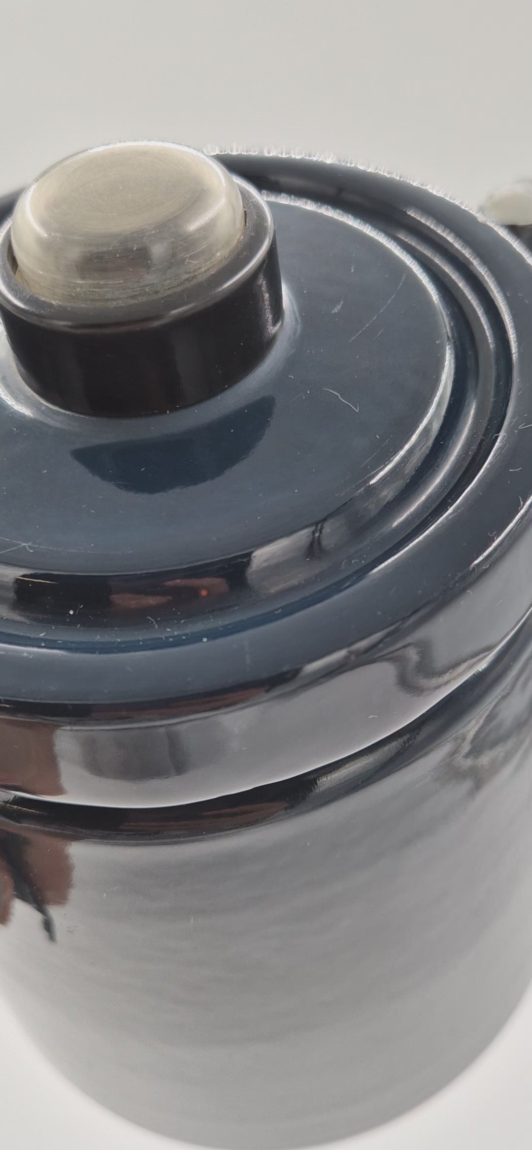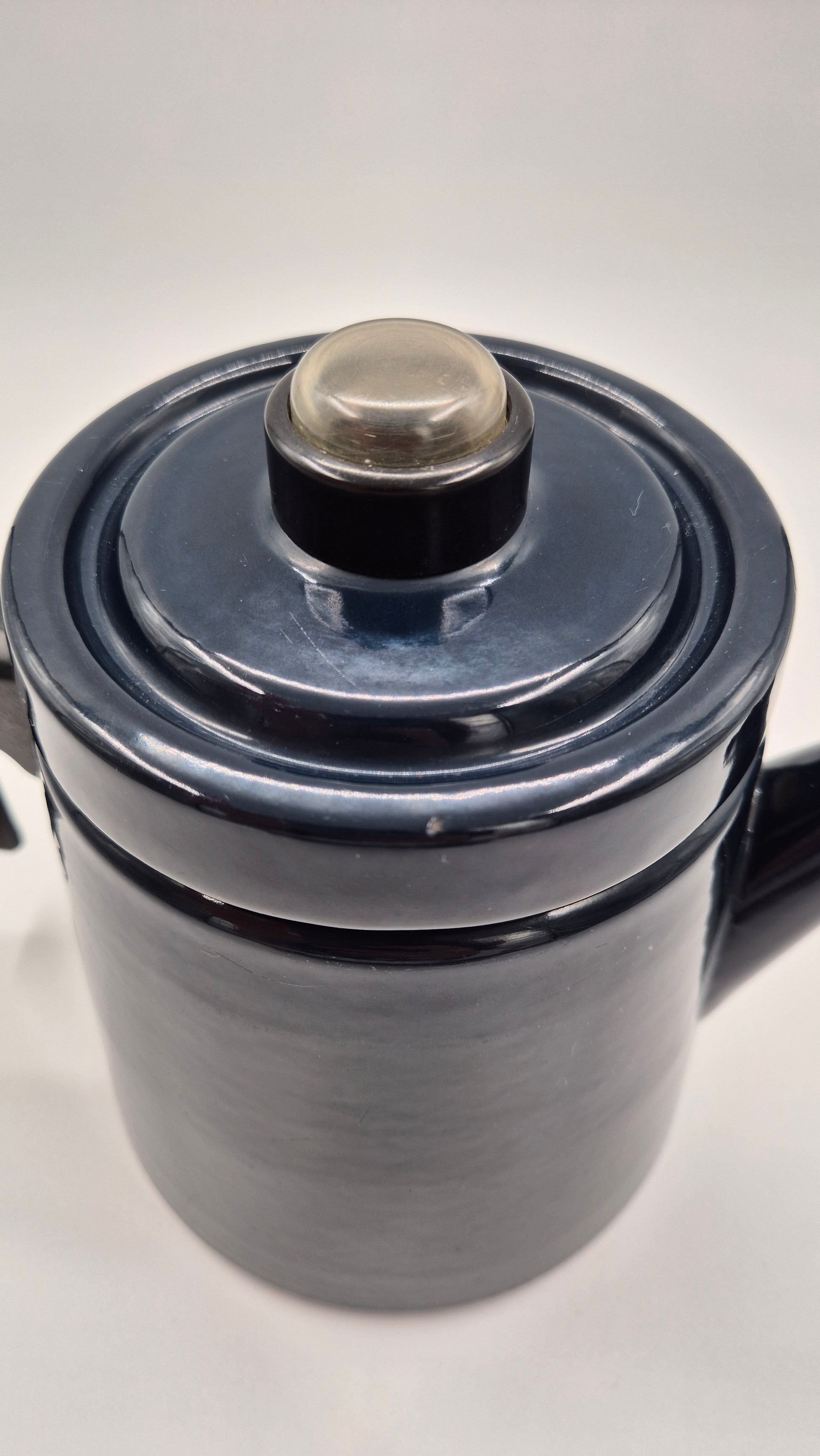 The pot is in a very good vintage condition. Please check the photos for details. The interior is clean and fully usable, though naturally not in brand-new condition. The clear knob on the lid allows you to see when the water reaches boiling, demonstrated in the video.
