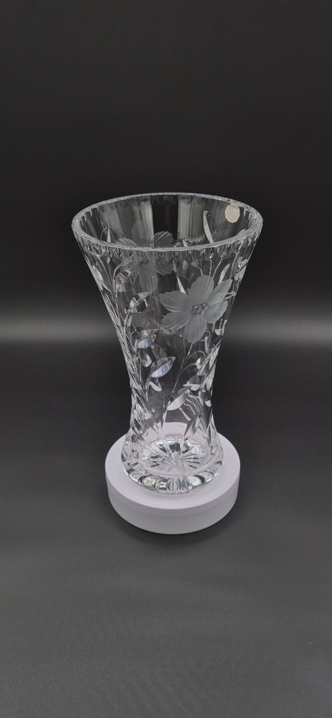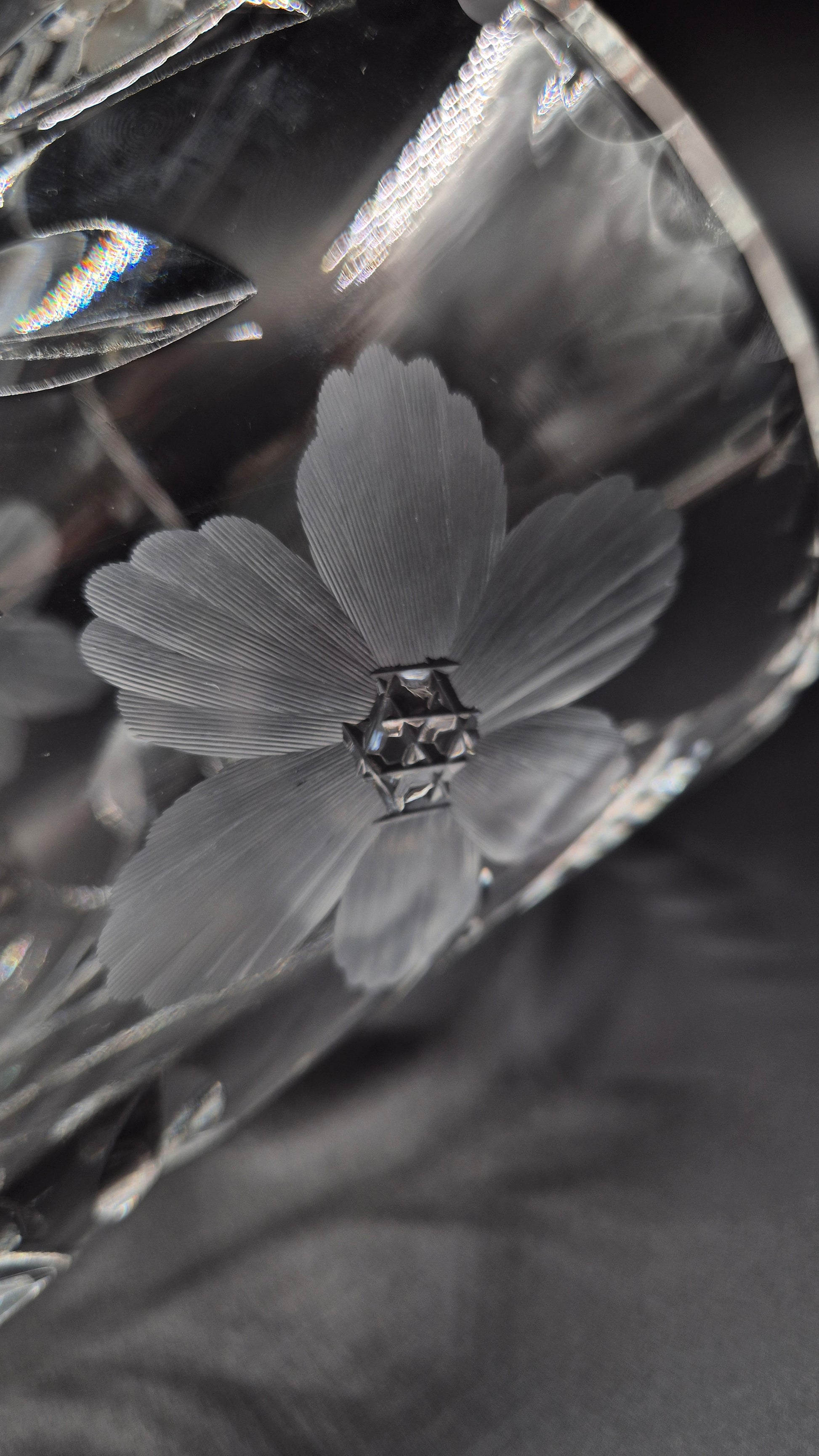 Stunning vintage Selleri crystal vase designed by Aimo Okkolin for Riihimäen Lasi. A perfect statement piece for Scandinavian vintage decor lovers. Ideal for fresh flowers or as a standalone decorative piece, this vintage vase is a must-have for collectors of Finnish crystal art and lovers of mid-century design. H25,5cm Ø15.5cm