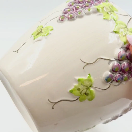 Vintage Alcobaça Flower Pot – Hand-Painted Bold Grape Design
