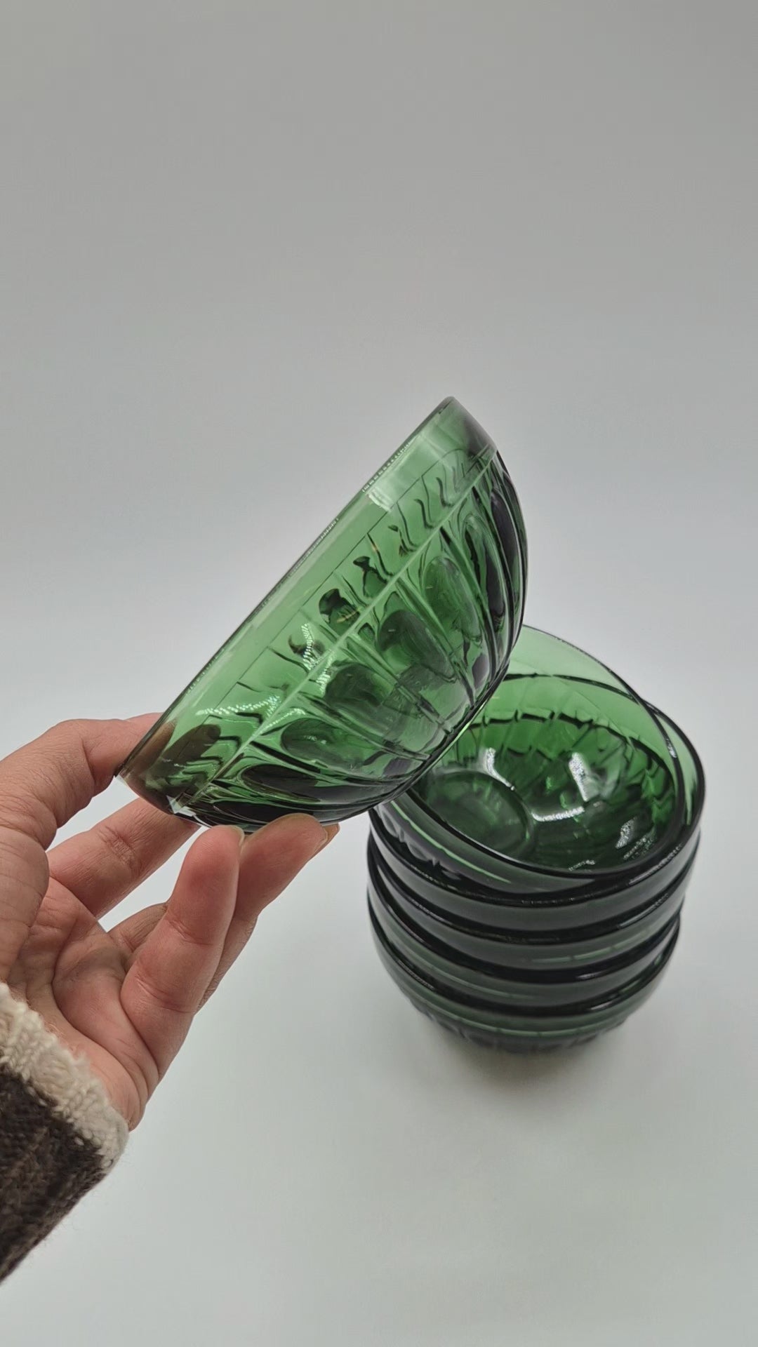Vintage Green Glass Dessert Bowl (Set of 6)