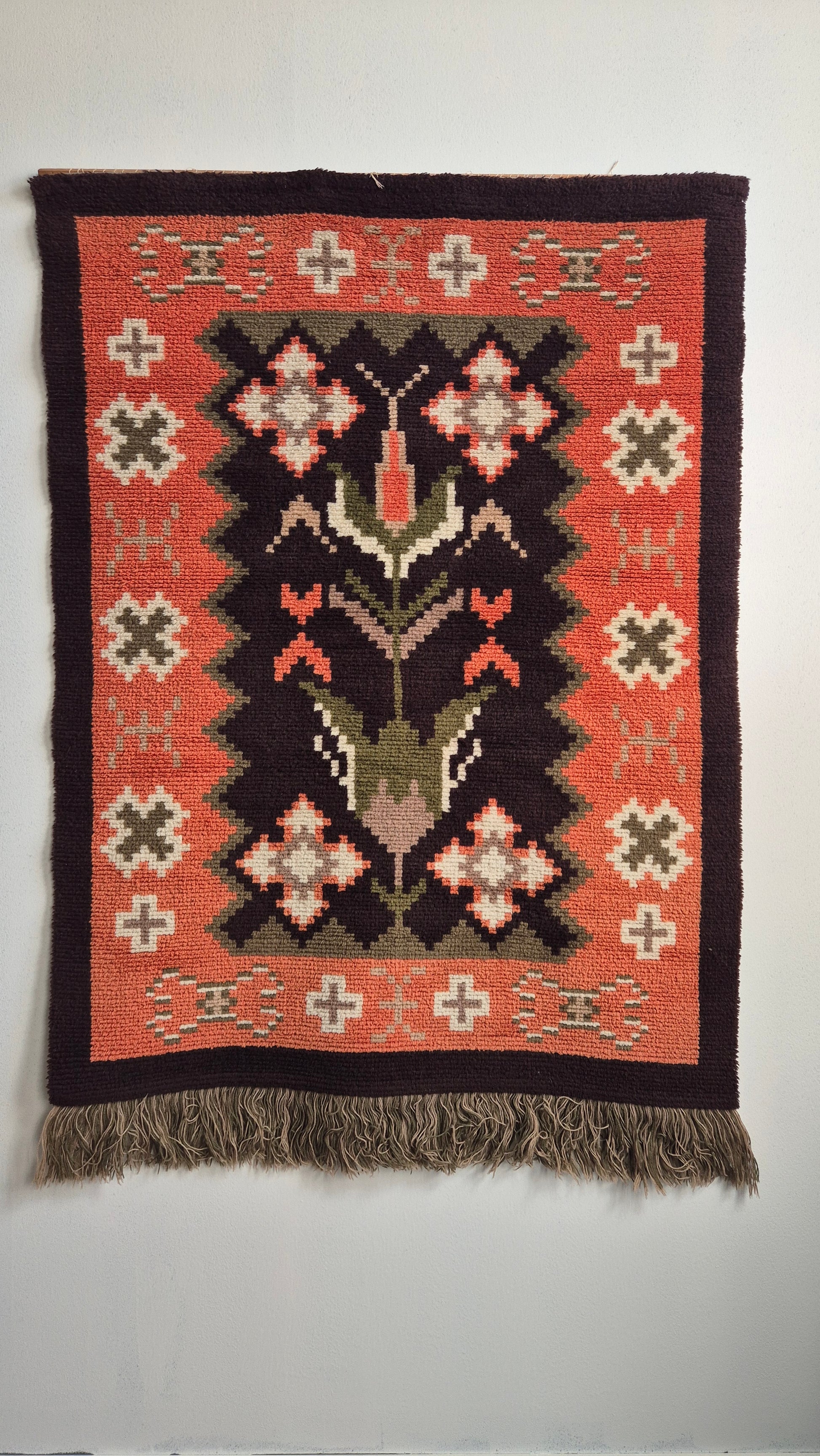 Expertly crafted using high-quality wool, this wall rug combines warm colors and meticulous craftsmanship, a perfect decorative statement for both modern and vintage interiors. Measuring 115 × 150 cm, it’s an eye-catching wall hanging that brings both warmth and cultural history to any room.