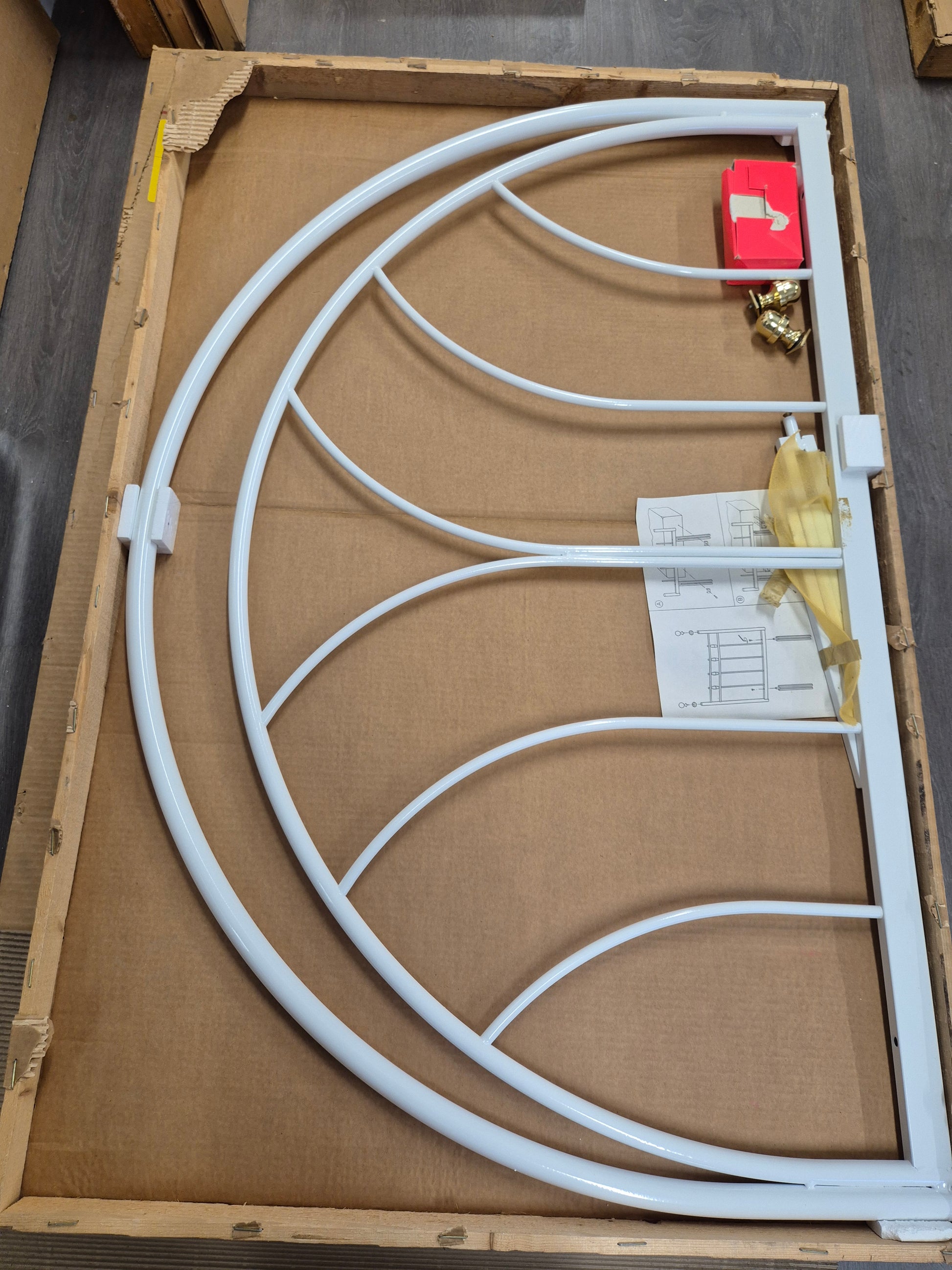 This headboard features a refined curved metal design with a clean white finish. It was manufactured in Finland approximately 50 years ago by Messin Oy, a company renowned for its high-quality metal craftsmanship. The design reflects the timeless elegance and durability characteristic of Finnish furniture from that era.