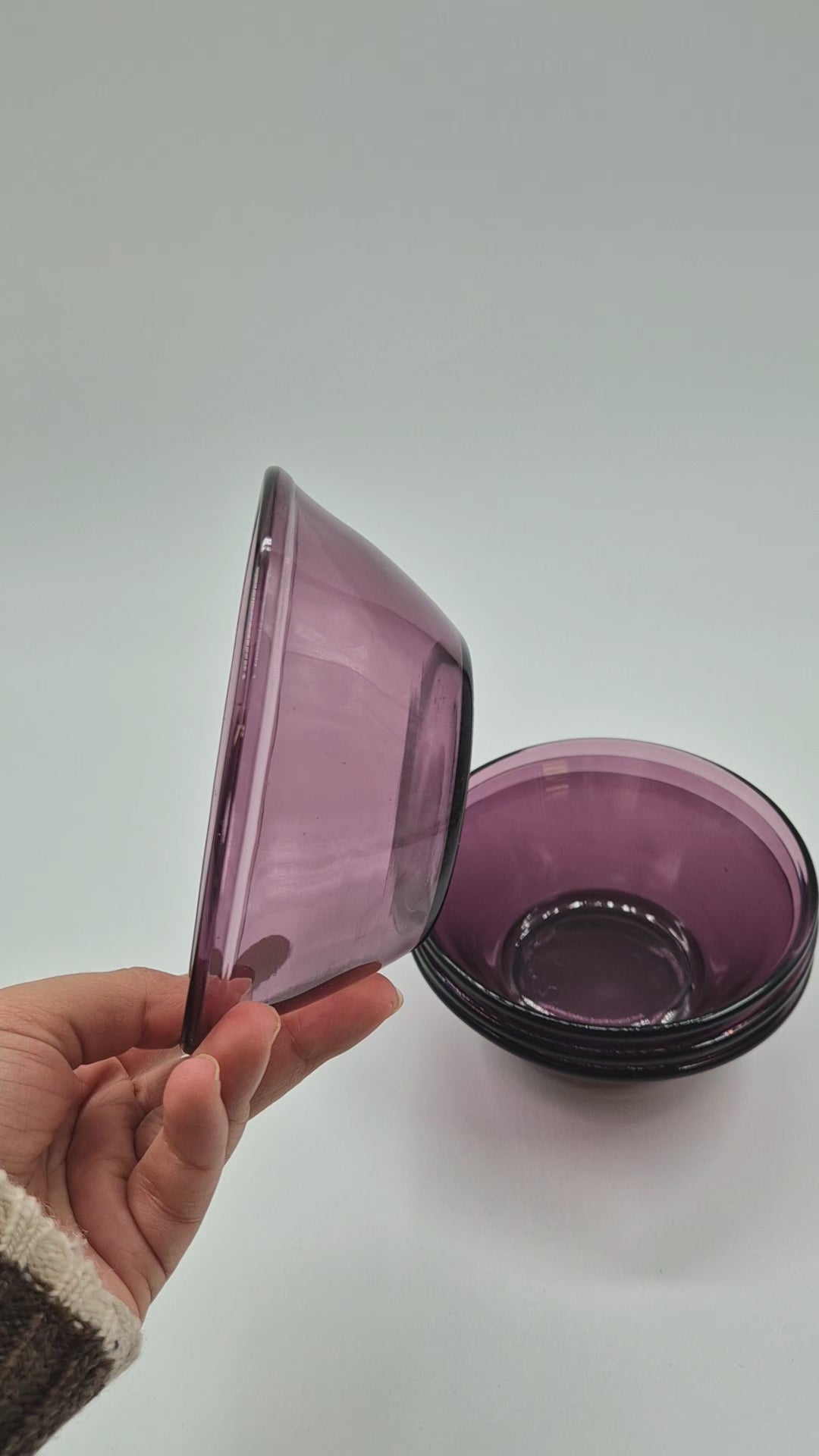 Delight in the charm of this Vintage Lilac Dessert Bowl, crafted from beautiful pressed glass in a soft purple hue. With its delicate scalloped edges and textured design, it’s perfect for serving desserts, fruits, or small snacks in vintage style.