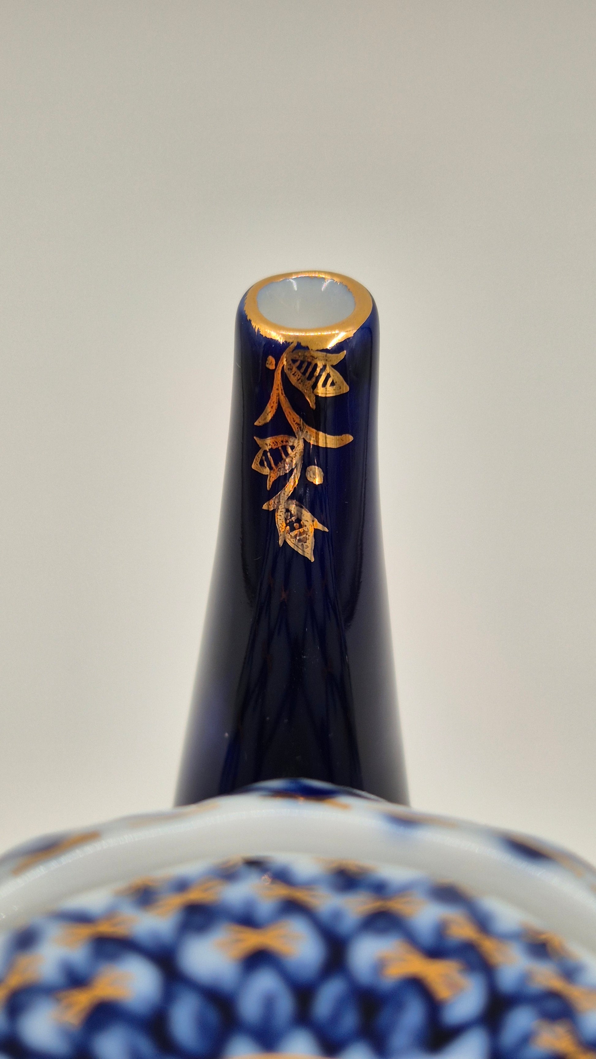 The coffee pot is in great vintage condition with no visible cracks or chips. Its graceful oval form, deep blue handle and spout, and delicate gold embellishments make it a striking decorative piece as well as a functional server. A wonderful addition to any collection of Russian porcelain, blue-and-white decor, or refined vintage kitchenware.