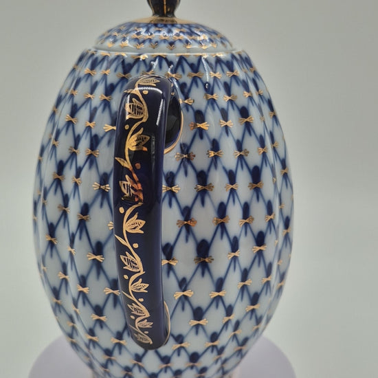 Vintage Lomonosov Cobalt Net Coffee Pot