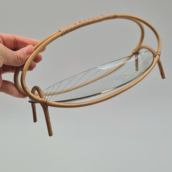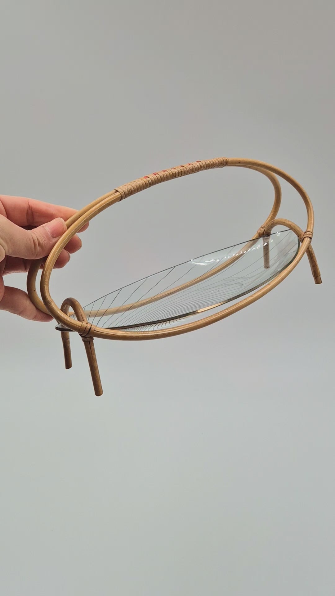 Vintage Rattan Glass Tray – Woven Serving Tray