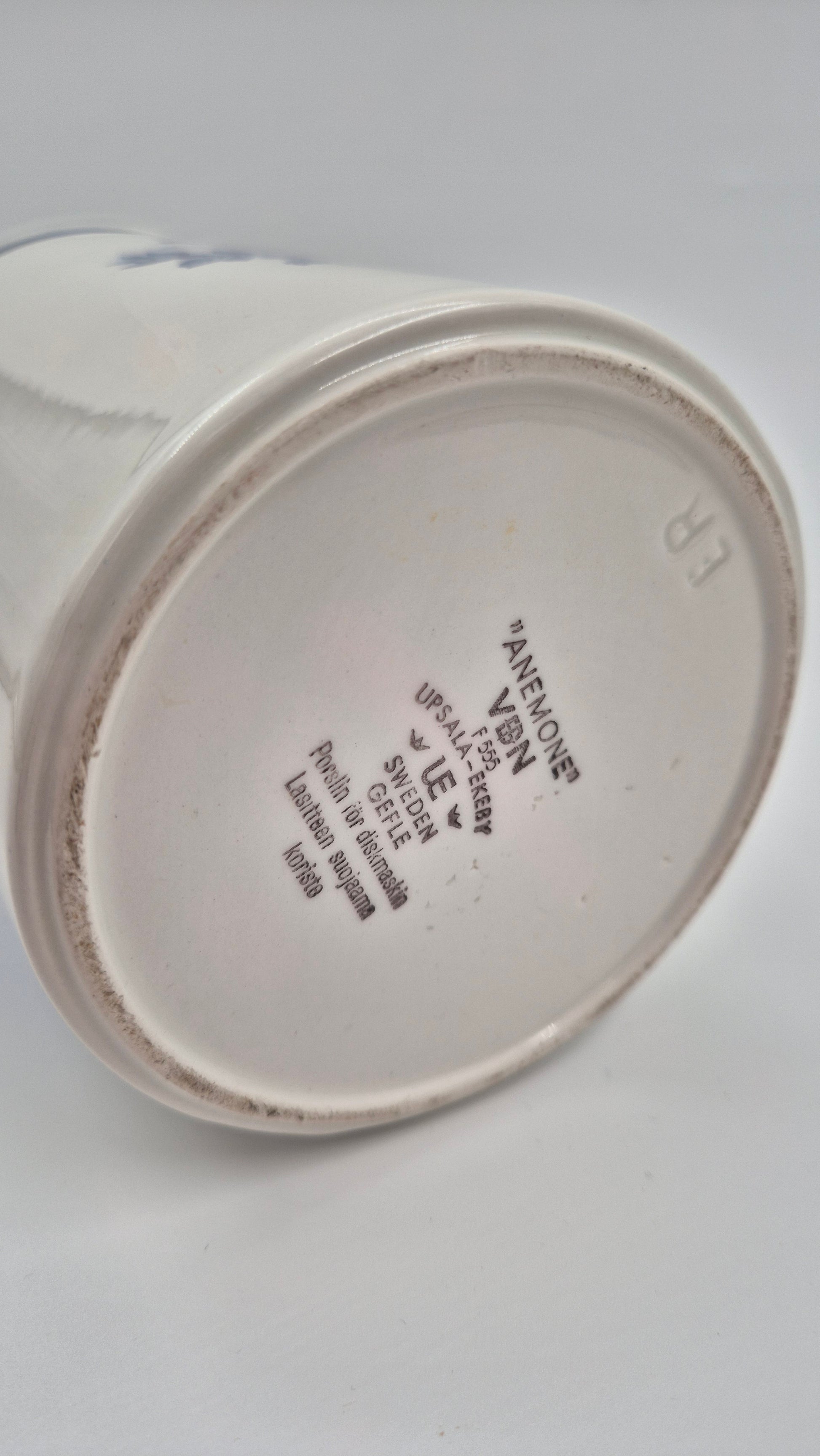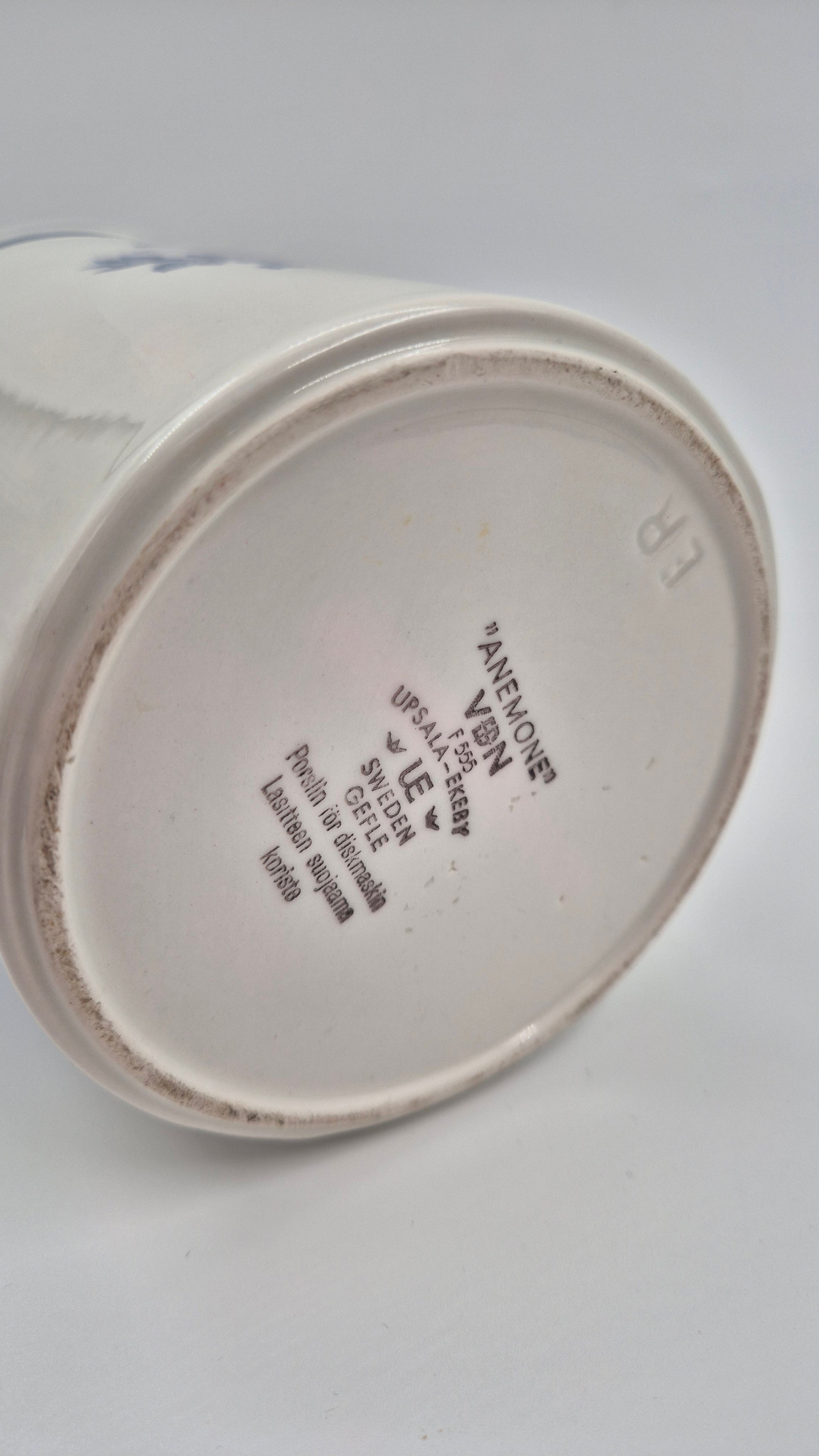 Vintage Upsala-Ekeby Gefle “Anemone” Pitcher – Blue Floral Jug – Sweden 1970s