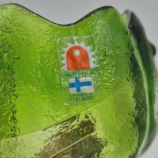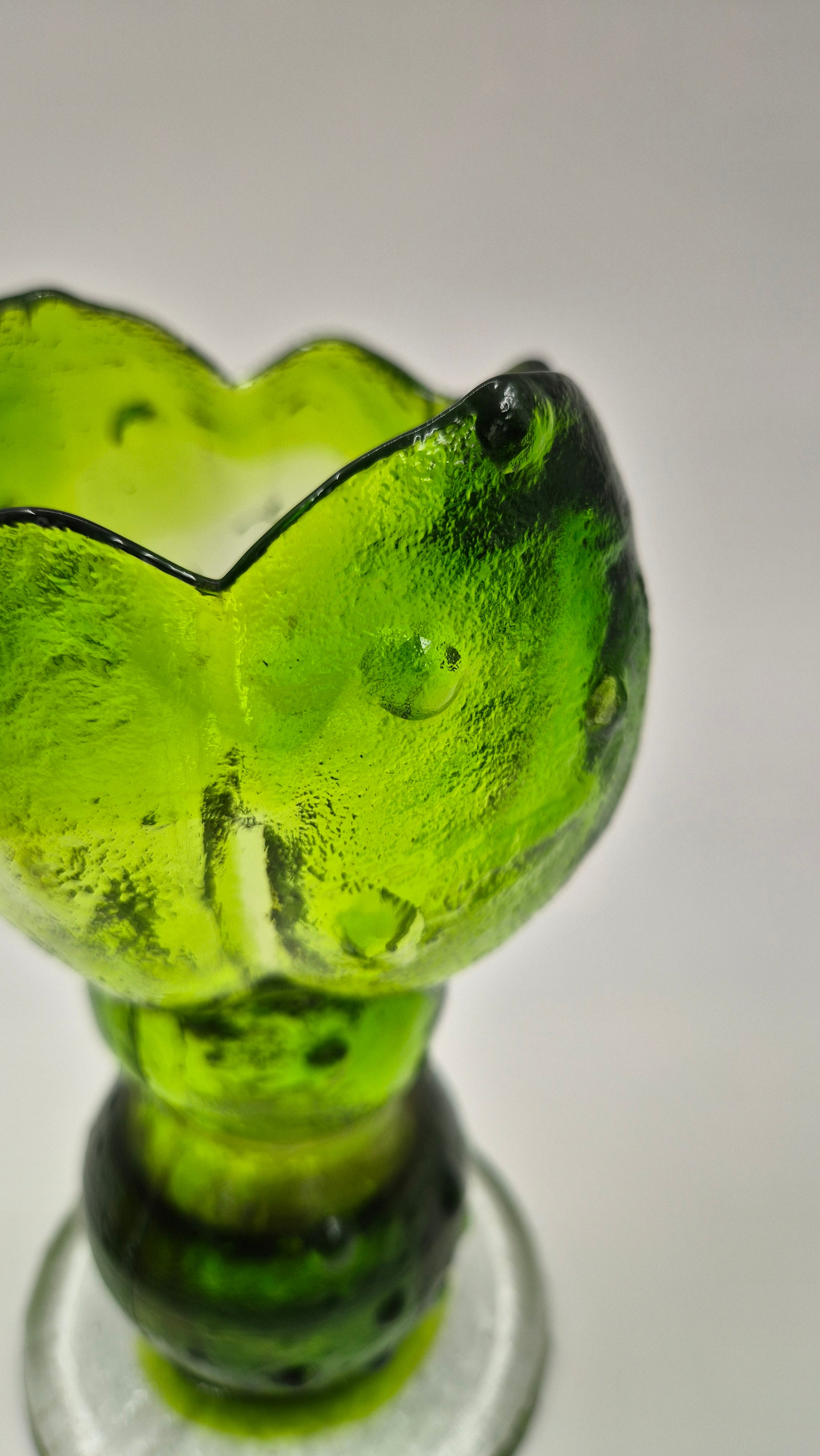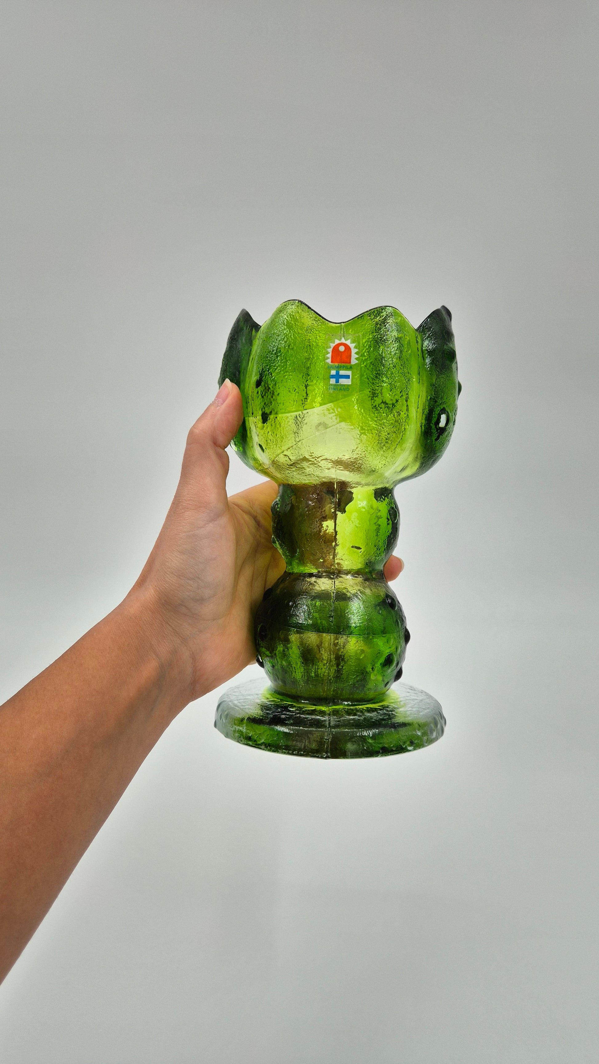 Ce vase vintage Humppila , signé par le designer finlandais Pertti Santalahti , est une pièce remarquable de l'art verrier scandinave du milieu du siècle. Fabriqué à la main en Finlande, ce vase présente des formes organiques fluides et des surfaces texturées, reflétant l'inspiration naturelle souvent présente dans l'œuvre de Santalahti.