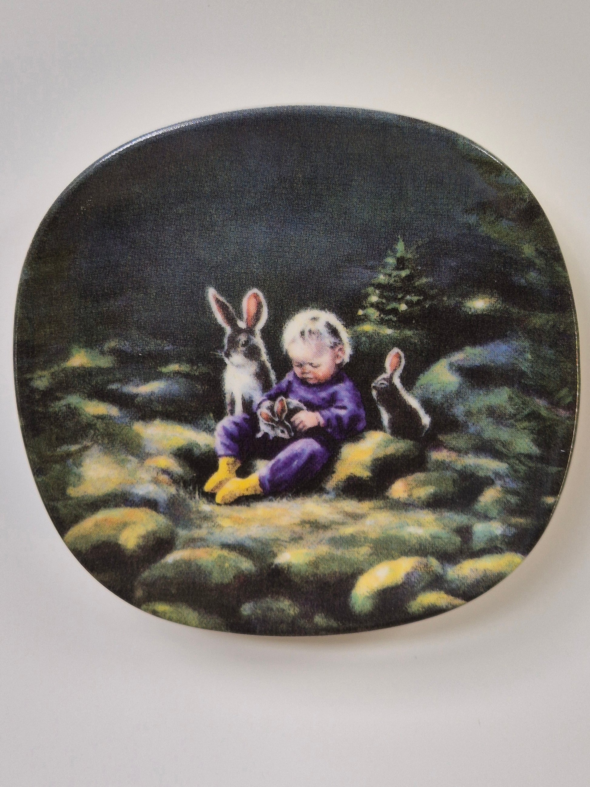 Vier de tedere banden van vriendschap met dit Arabia-wandbord van Sussi Anna Åberg . De delicate, op sprookjes geïnspireerde illustratie straalt vreugde, harmonie en tijdloze charme uit, waardoor het een verzamelobject van Scandinavische kunst is.