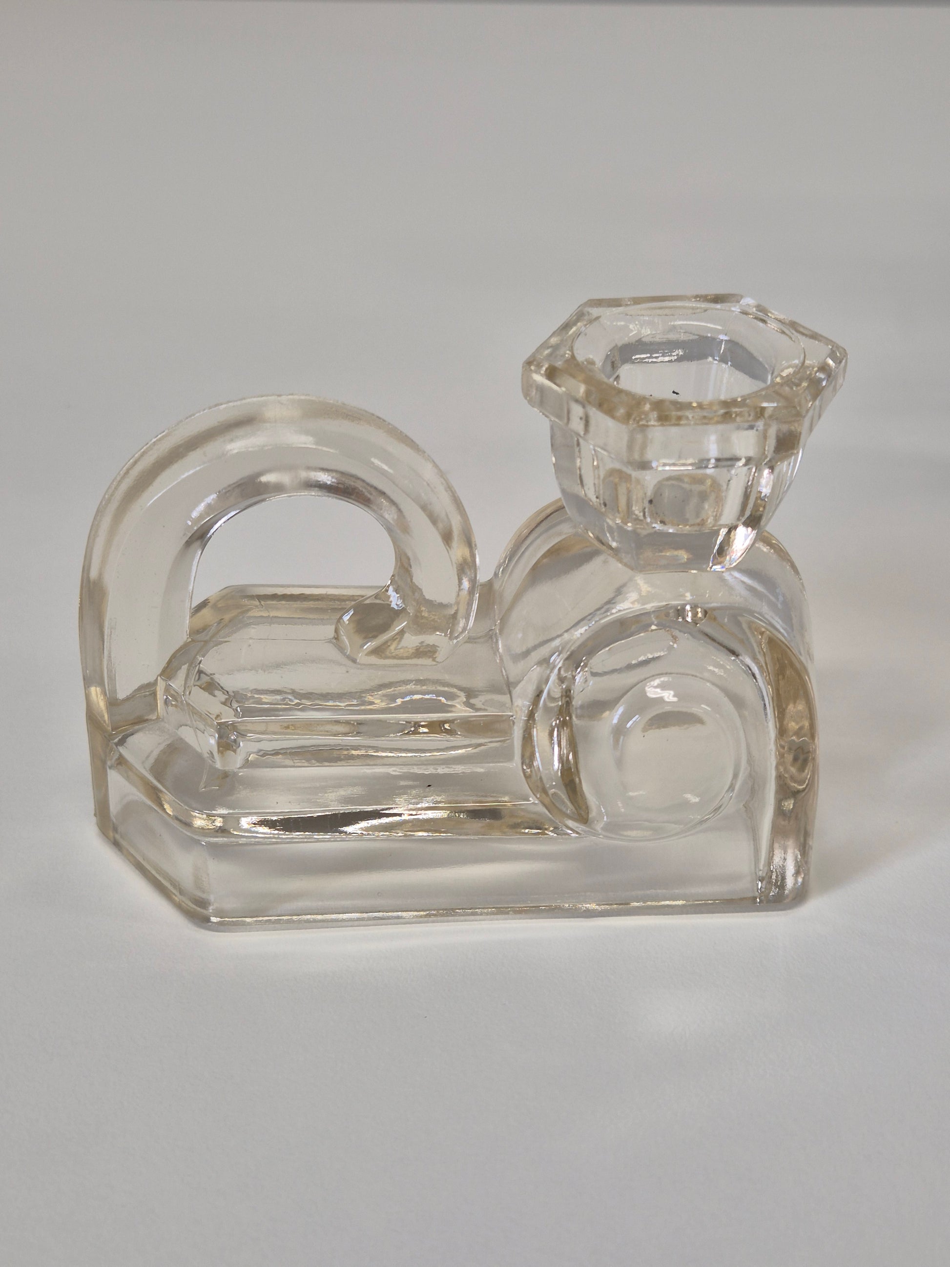 Art Deco glazen kandelaar - Vintage elegante kaarsenhouder