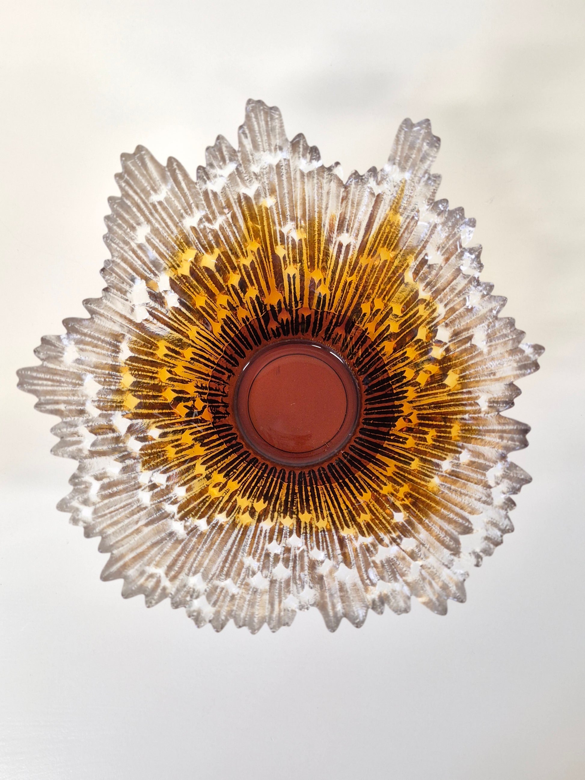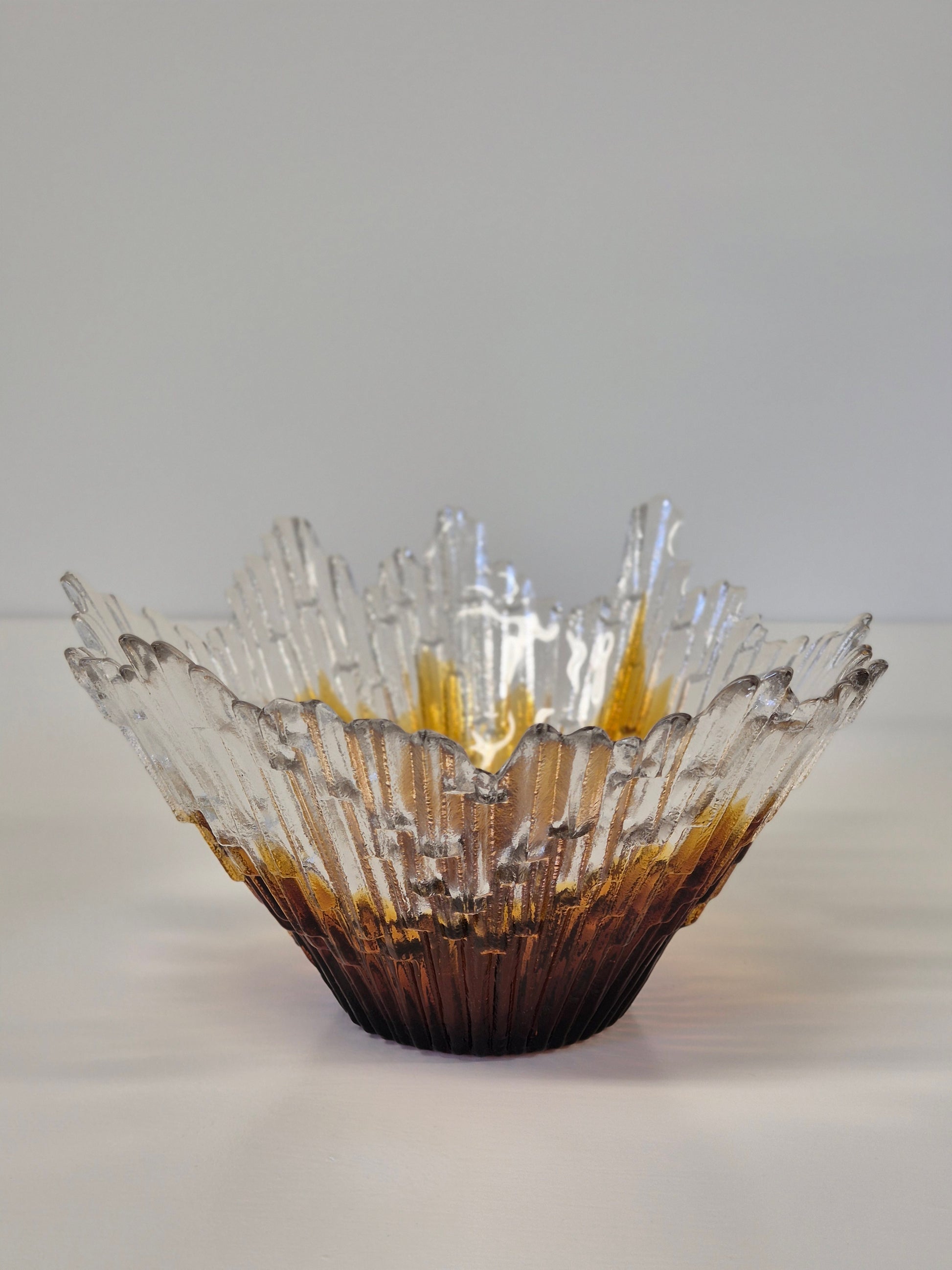 Haal een vleugje Scandinavische magie in huis met de Humppila Revontulet Bowl , ontworpen door de gewaardeerde Finse kunstenaar Tauno Wirkkala en geproduceerd van 1972 tot 1987. Vernoemd naar het Finse woord voor noorderlicht, Revontulet , heeft deze kom een betoverende textuur van matglas met organische vormen die de etherische schoonheid van het noorderlicht vastleggen. Vervaardigd met deskundige glasblaastechnieken, is het zowel een prachtig decoratief stuk als een eerbetoon aan de Finse kunst van halverwege de vorige eeuw . Perfect om tentoon te stellen of functioneel te gebruiken, voegt deze vintage kom elegantie en een verhaal toe aan elke ruimte.