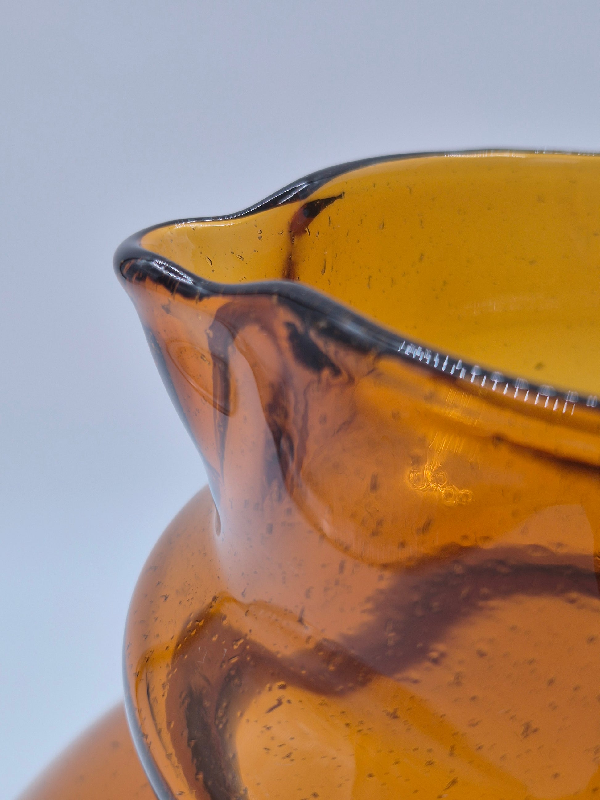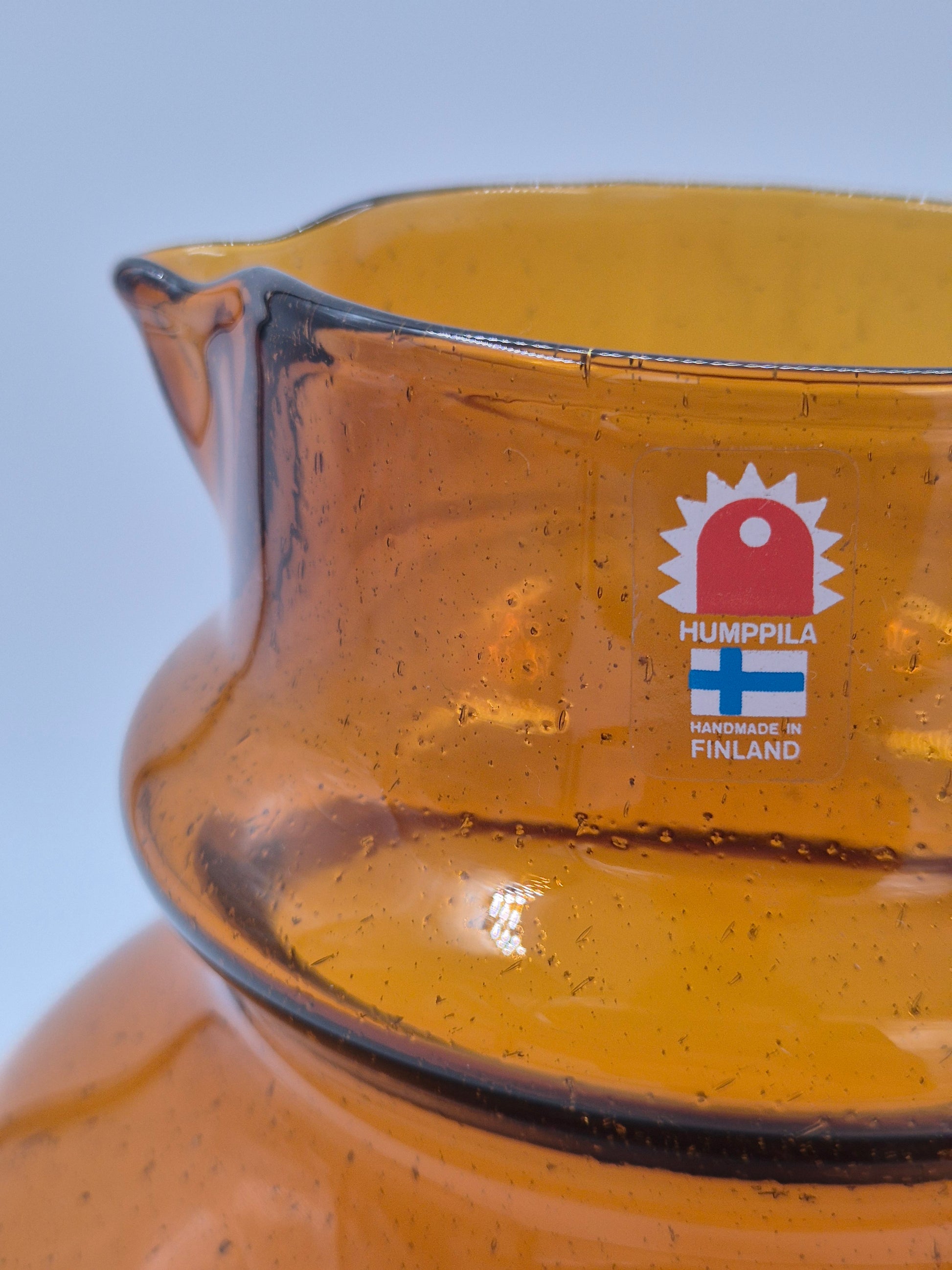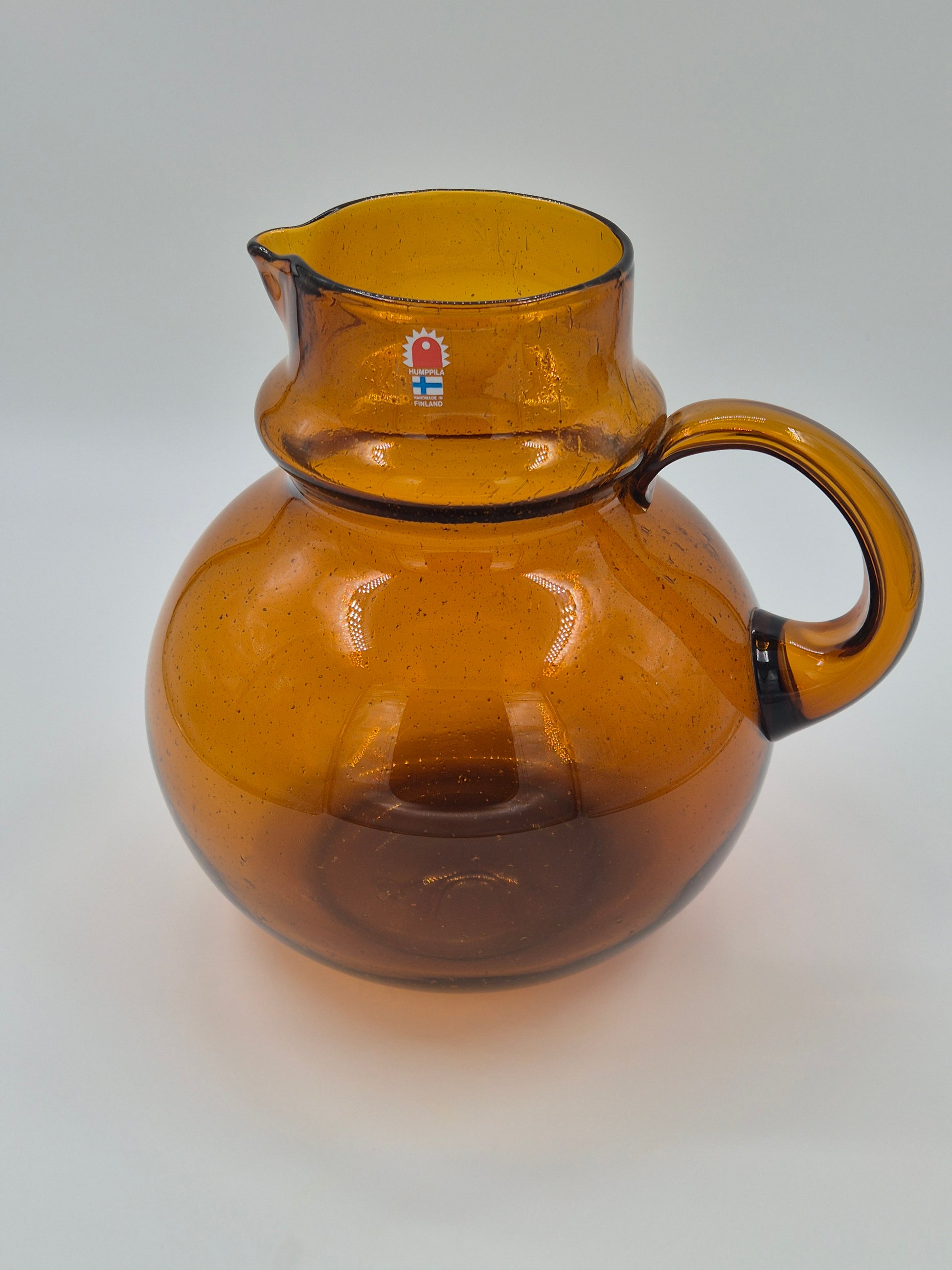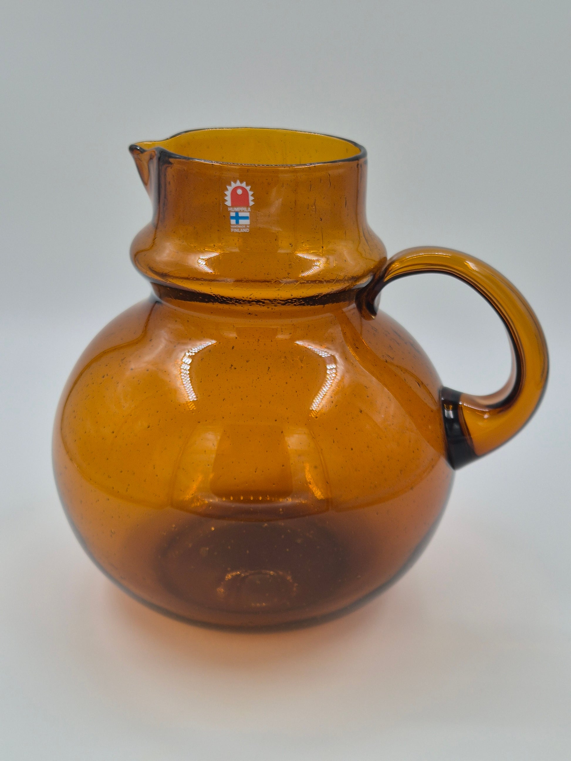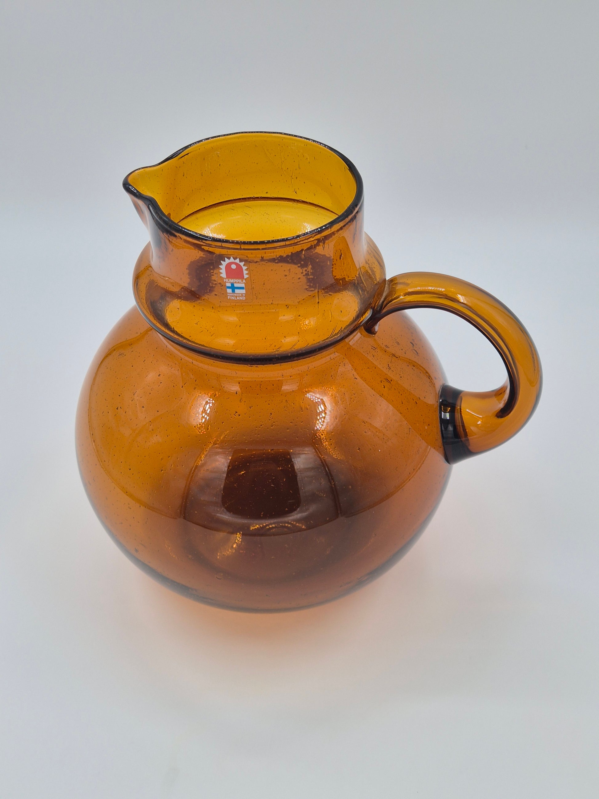 Deze vintage kan is gemaakt van stevig geperst glas en is perfect voor het serveren van water, sap of cocktails, of om te gebruiken als een unieke vaas. Een ware schat uit het midden van de vorige eeuw, een perfecte aanvulling voor verzamelaars en iedereen die van authentieke Finse stijl houdt.