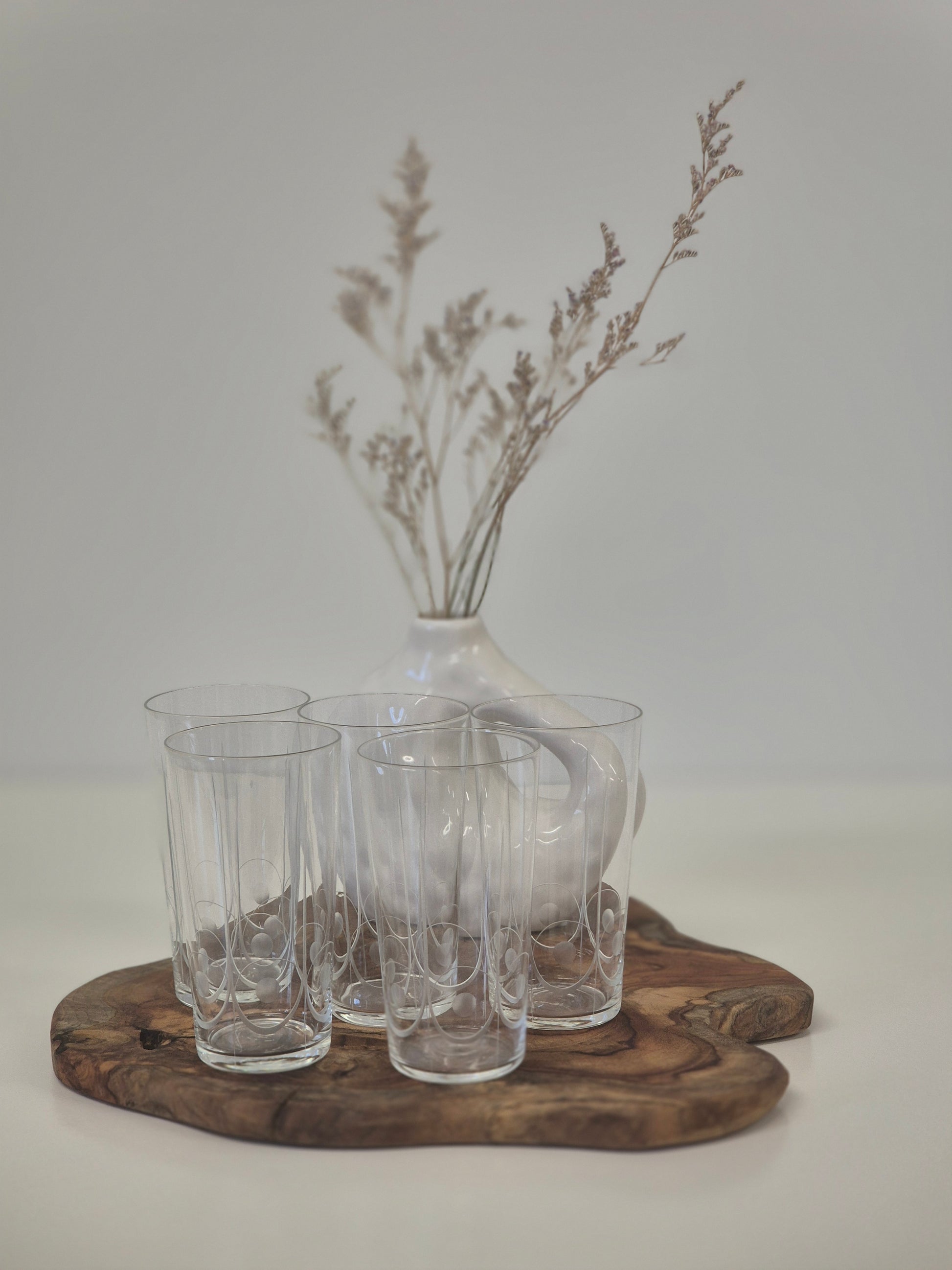 Deze elegante en tijdloze drinkglazen zijn ontworpen door Sirkka-Liisa Kumela en maken deel uit van de Kumela Sirkku- serie. Deze glazen staan bekend om hun verfijnde Scandinavische vakmanschap en hebben strakke lijnen en een minimalistisch design, waardoor ze perfect zijn voor dagelijks gebruik of speciale gelegenheden. Ze zijn vervaardigd in Finland en staan voor kwaliteit en tijdloze stijl.
