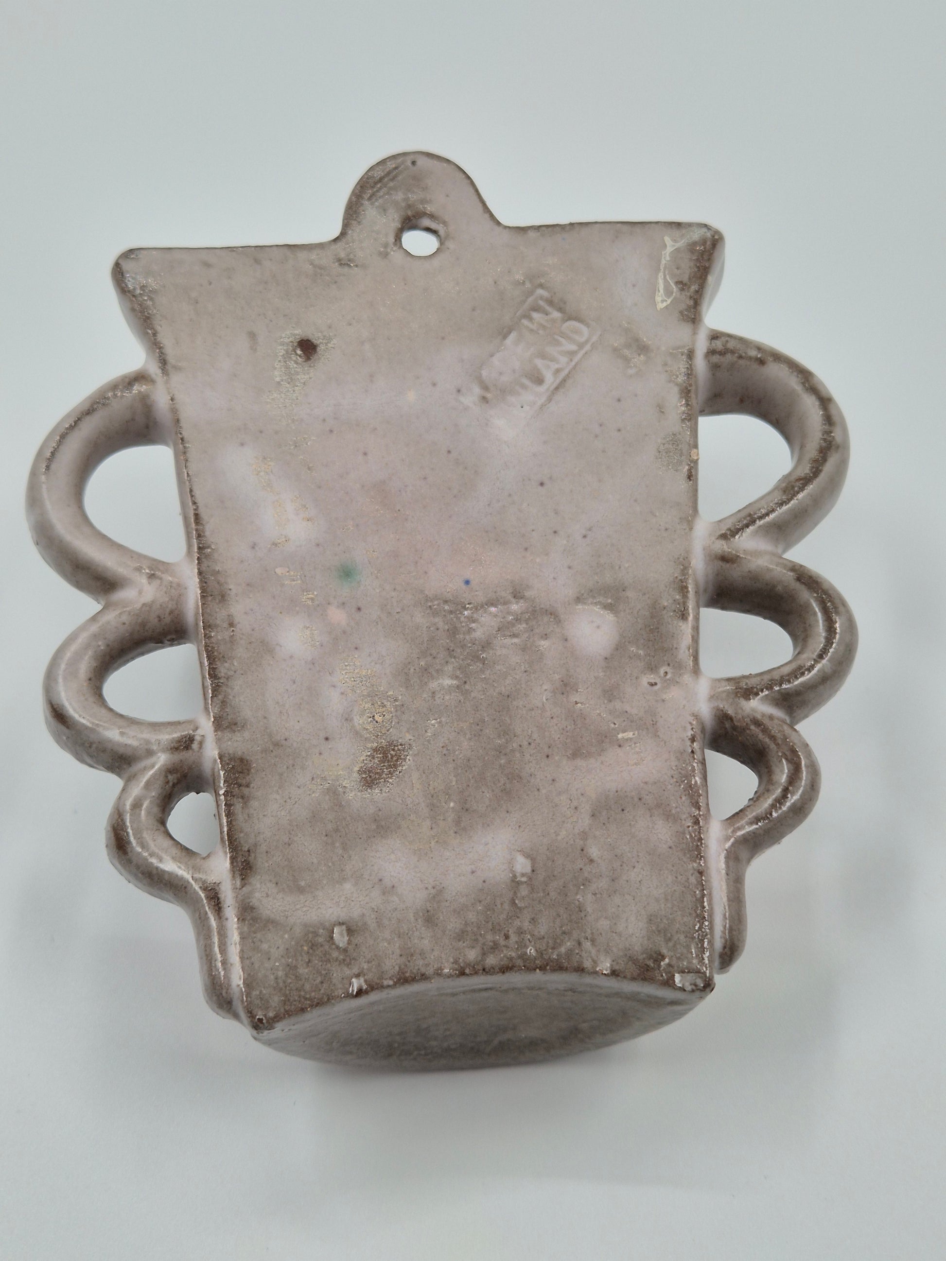 Zeldzame Kupittaan Savi keramische wandvaas in Scandinavische modernistische stijl. Perfect voor verzamelaars van Fins aardewerk.