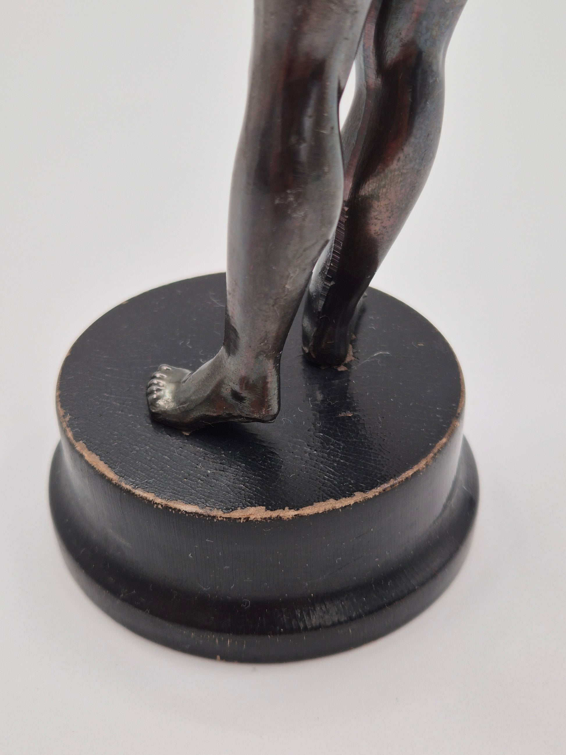 Vier triomf en prestatie met dit vintage metalen beeld van een man die een lauwerkrans opheft . Dit opvallende beeld legt het moment van overwinning en trots vast en symboliseert uitmuntendheid en prestatie. Perfect als verzamelobject, decoratief accent of inspiratiebron, voegt het mid-century charme en tijdloze elegantie toe aan elk huis, kantoor of tentoonstelling.