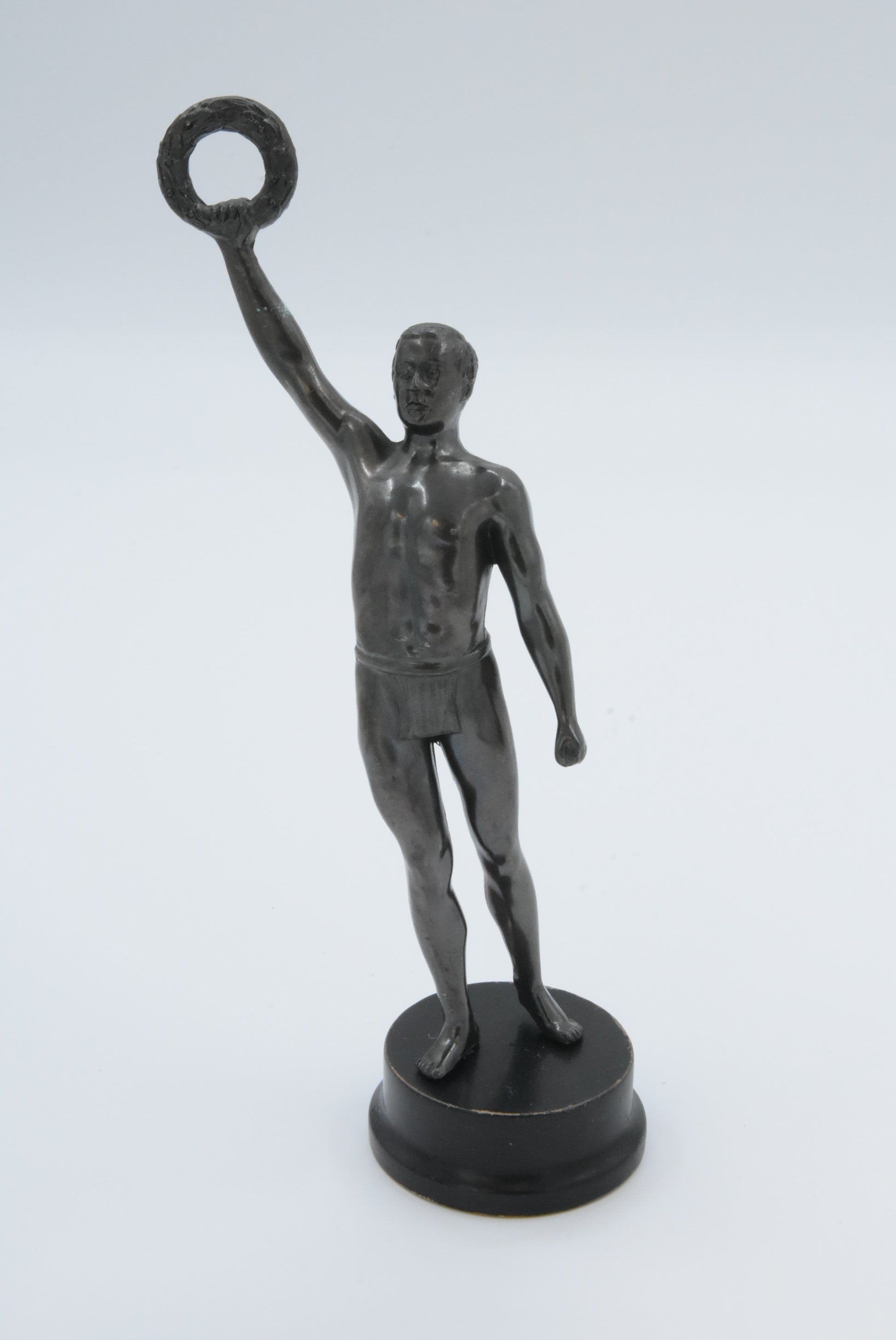 Dit beeld is gemaakt van duurzaam metaal en toont complexe details en een klassiek ontwerp dat het zowel artistiek als betekenisvol maakt. Ideaal voor verzamelaars, sportliefhebbers of iedereen die van vintage prijsfiguren houdt.