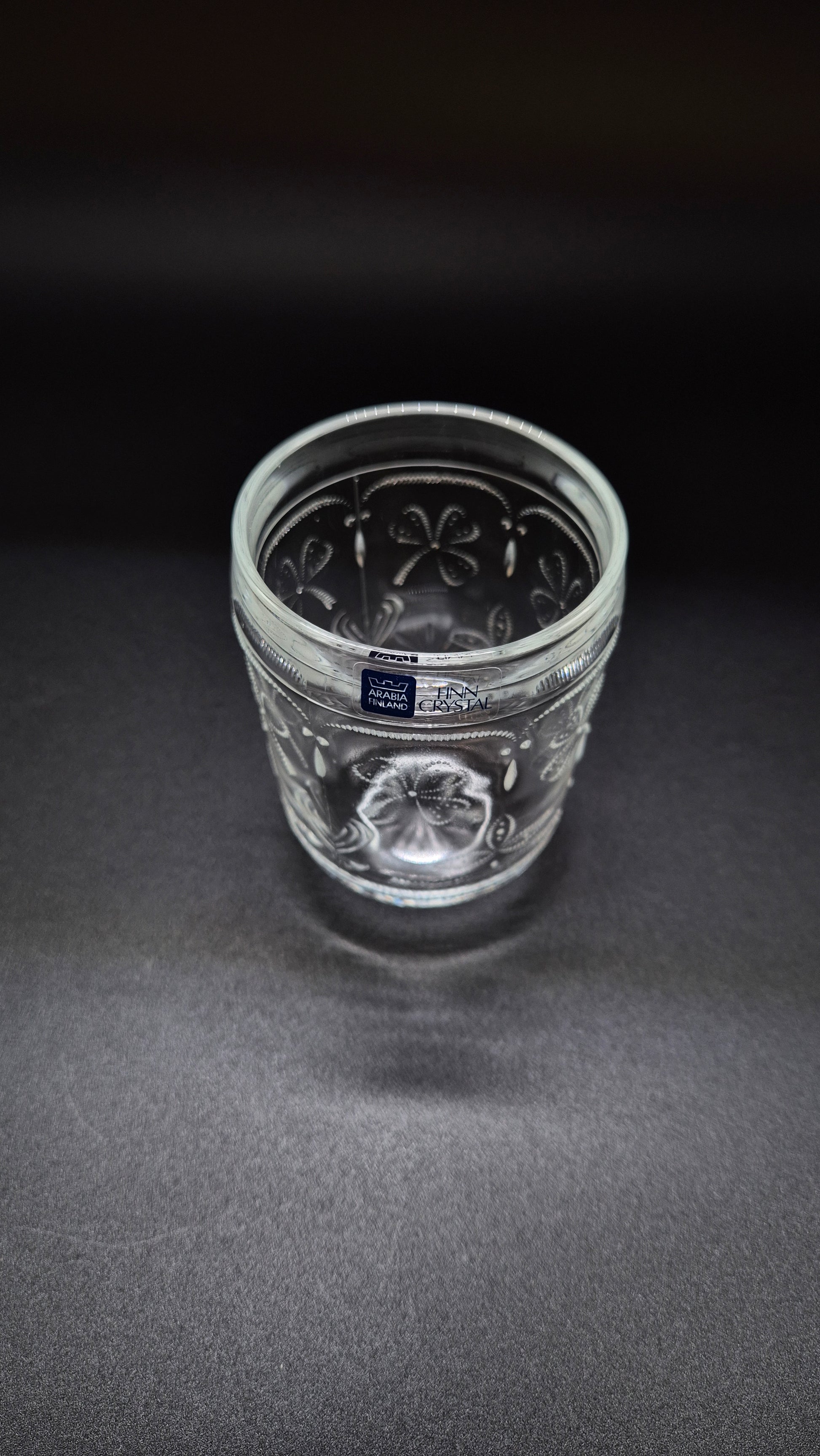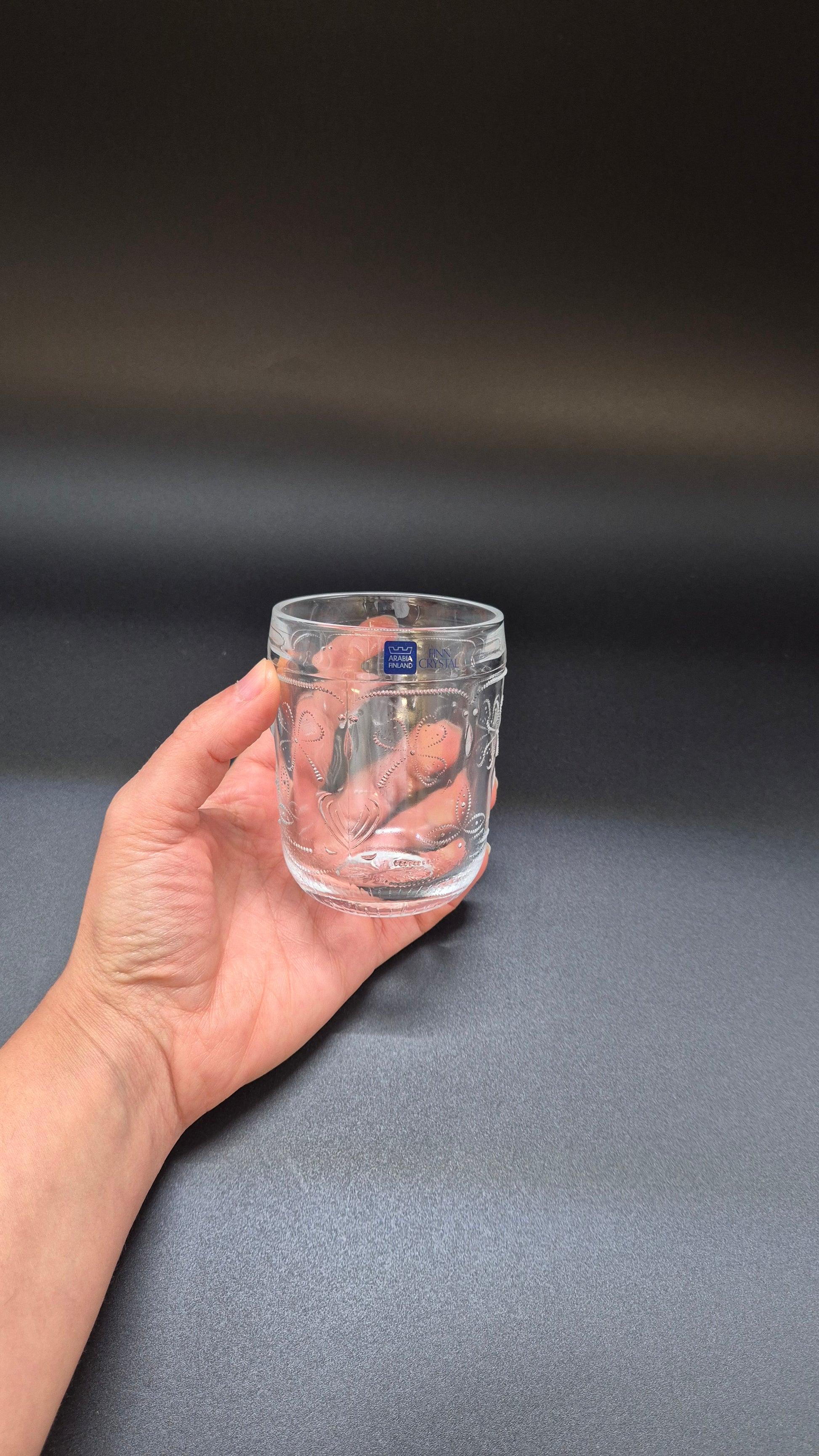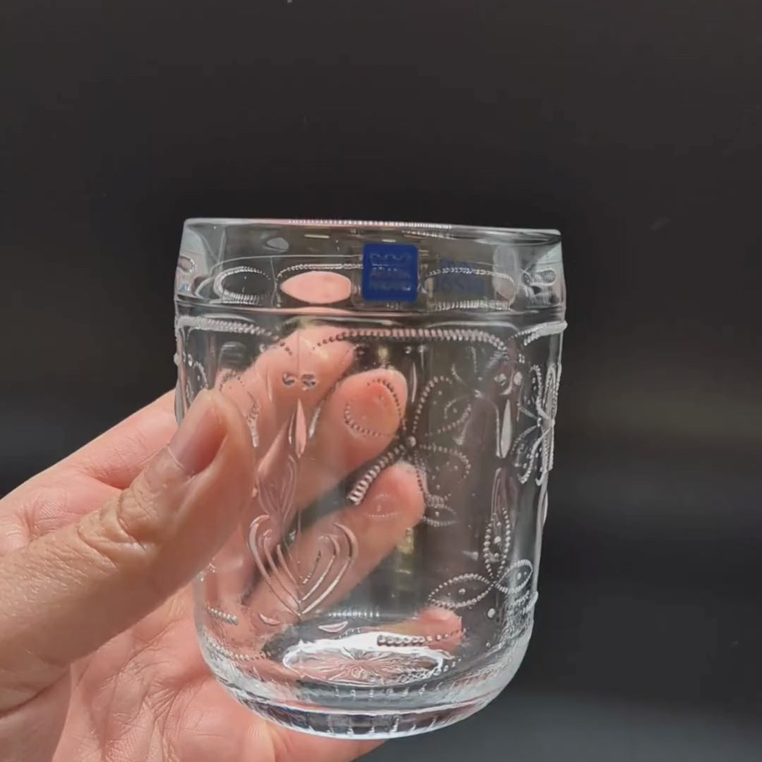 Voeg een charmante Scandinavische touch toe aan uw tafel met dit vintage Nuutajärvi "Apila" drinkglas . Met een prachtig reliëfpatroon van klaver ( apila ) vangt dit glas het licht op een subtiele, gestructureerde manier – een combinatie van vorm en functie met klassieke Finse elegantie.