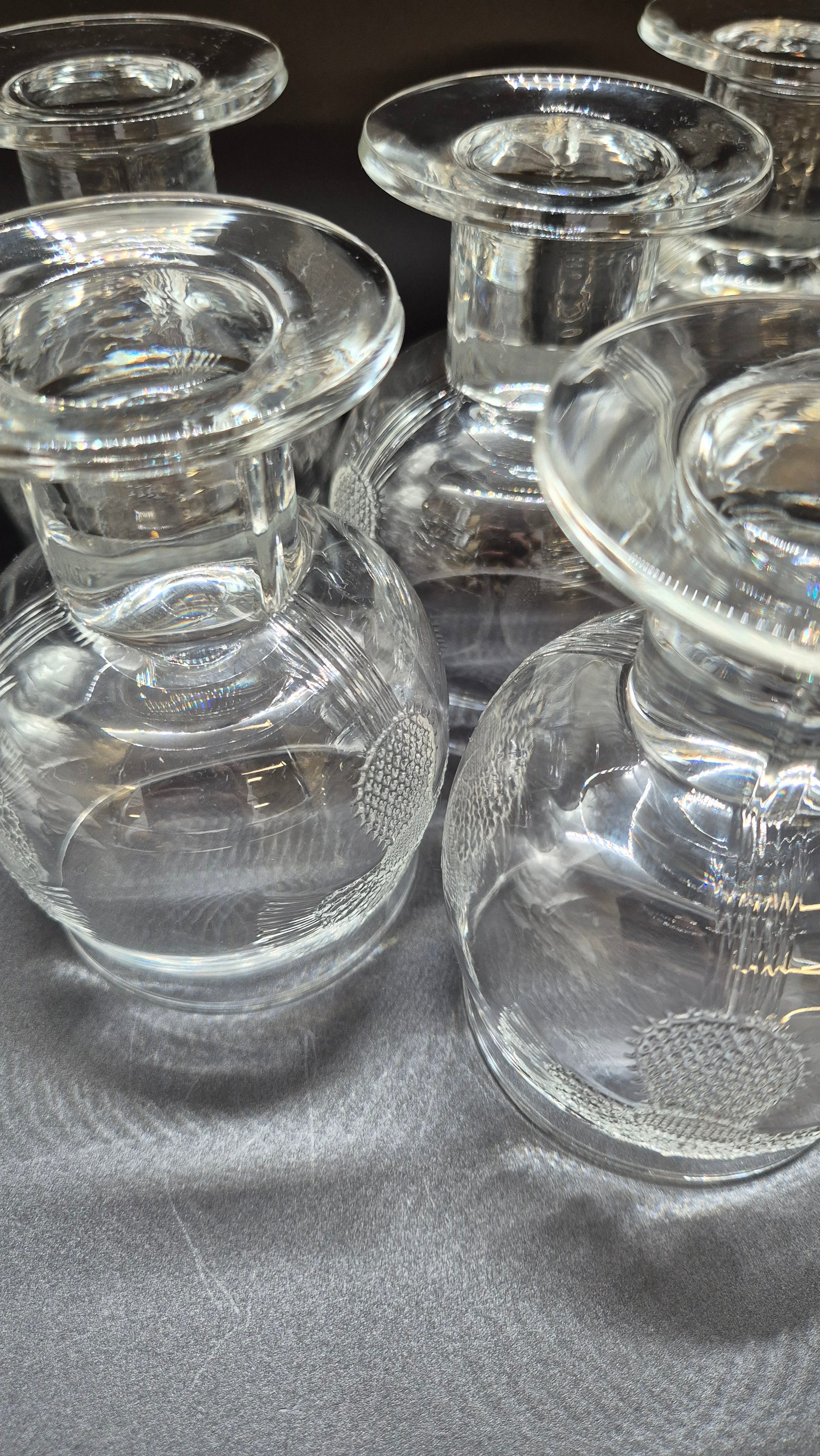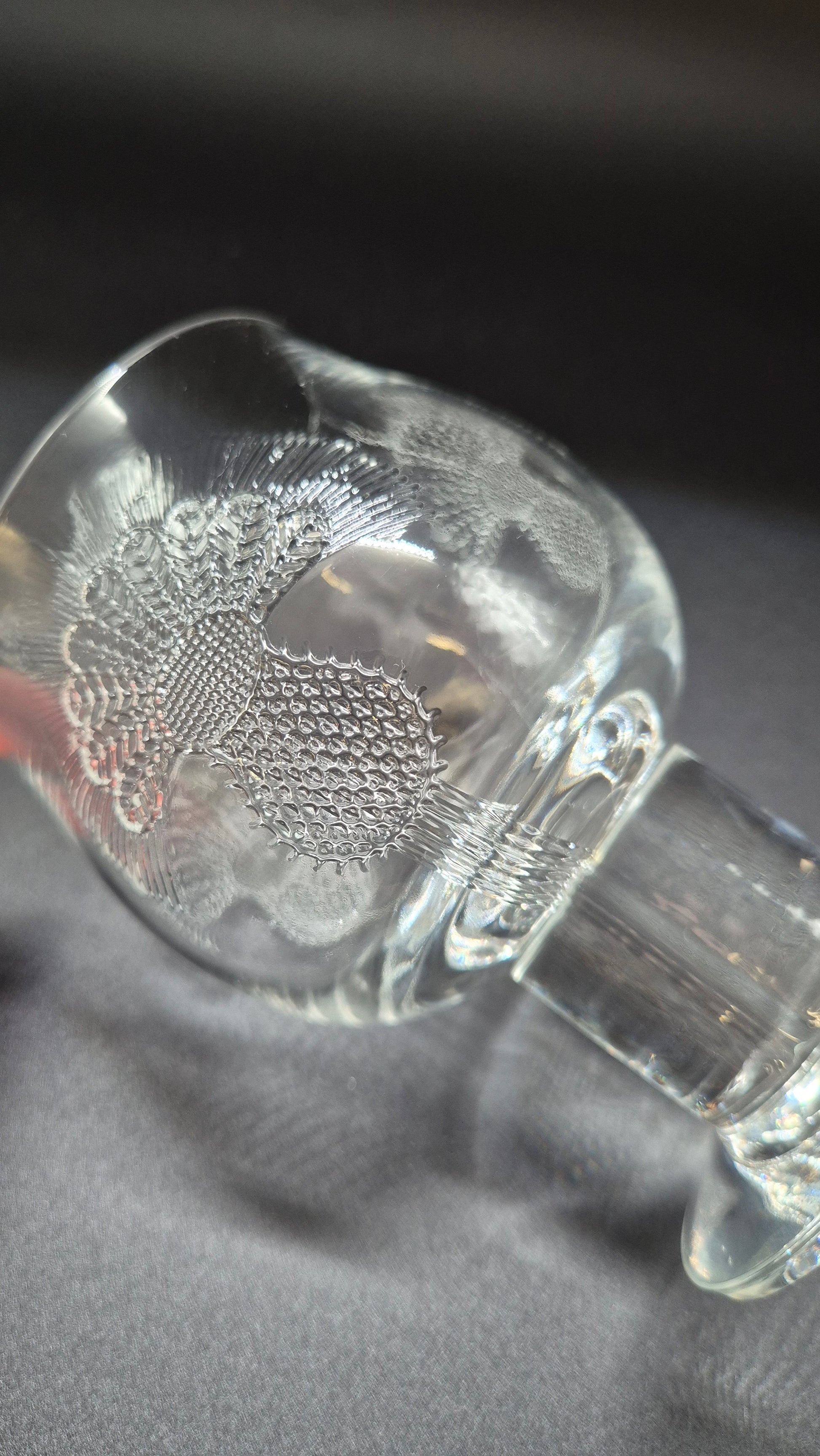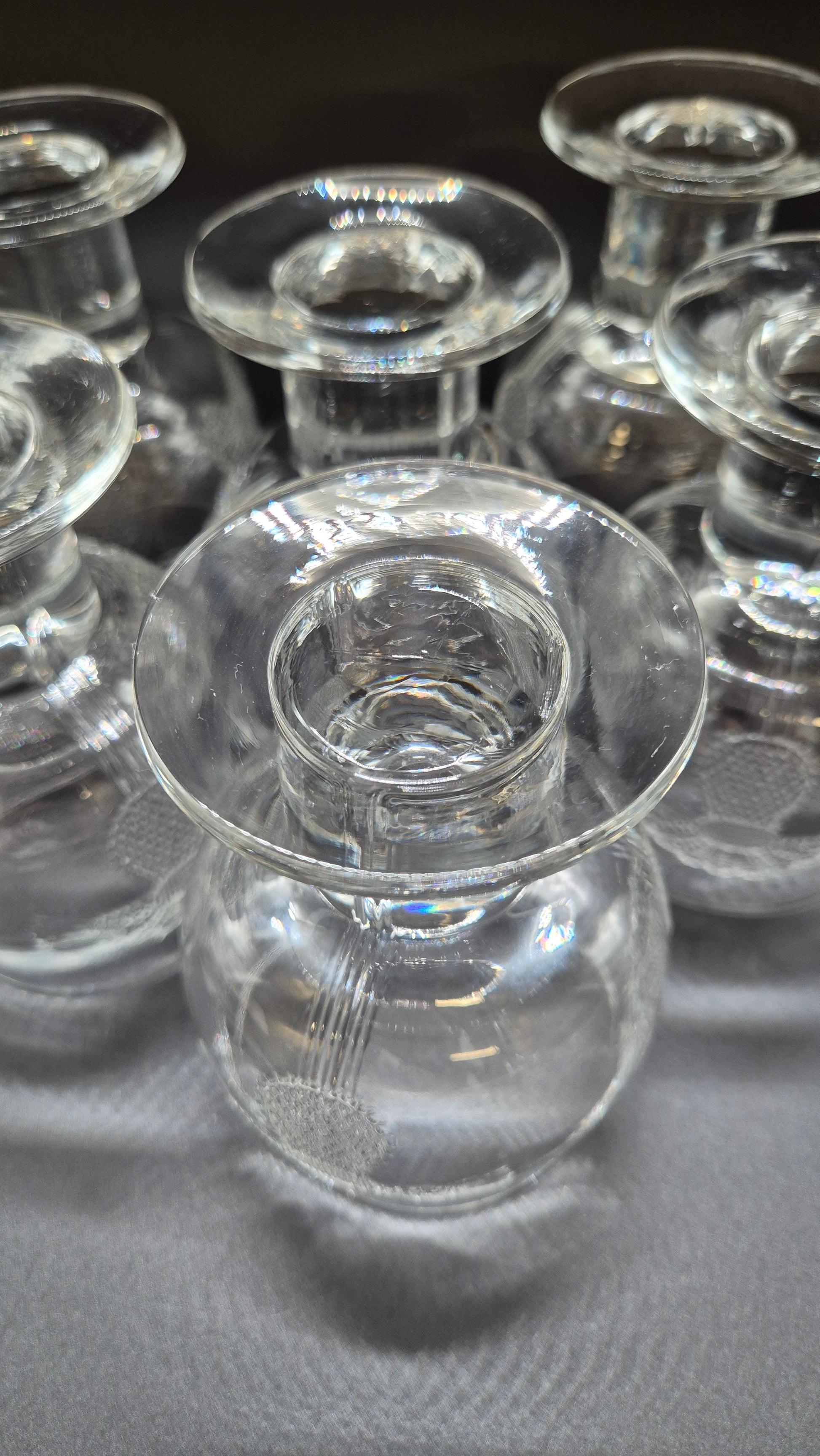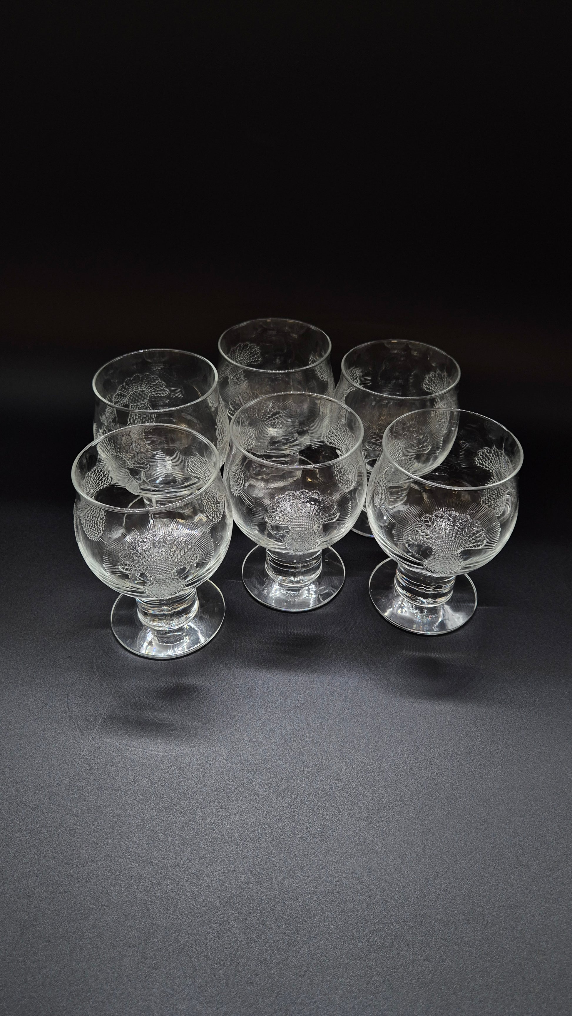 Ervaar de tijdloze elegantie van Fins glaskunstwerk met deze set Silja-glazen met steel , ontworpen door de gevierde Heikki Orvola voor Nuutajärvi. Deze glazen, vervaardigd in de jaren 70, zijn een prachtig voorbeeld van mid-century design dat helderheid, subtiele vorm en verfijnd vakmanschap combineert.