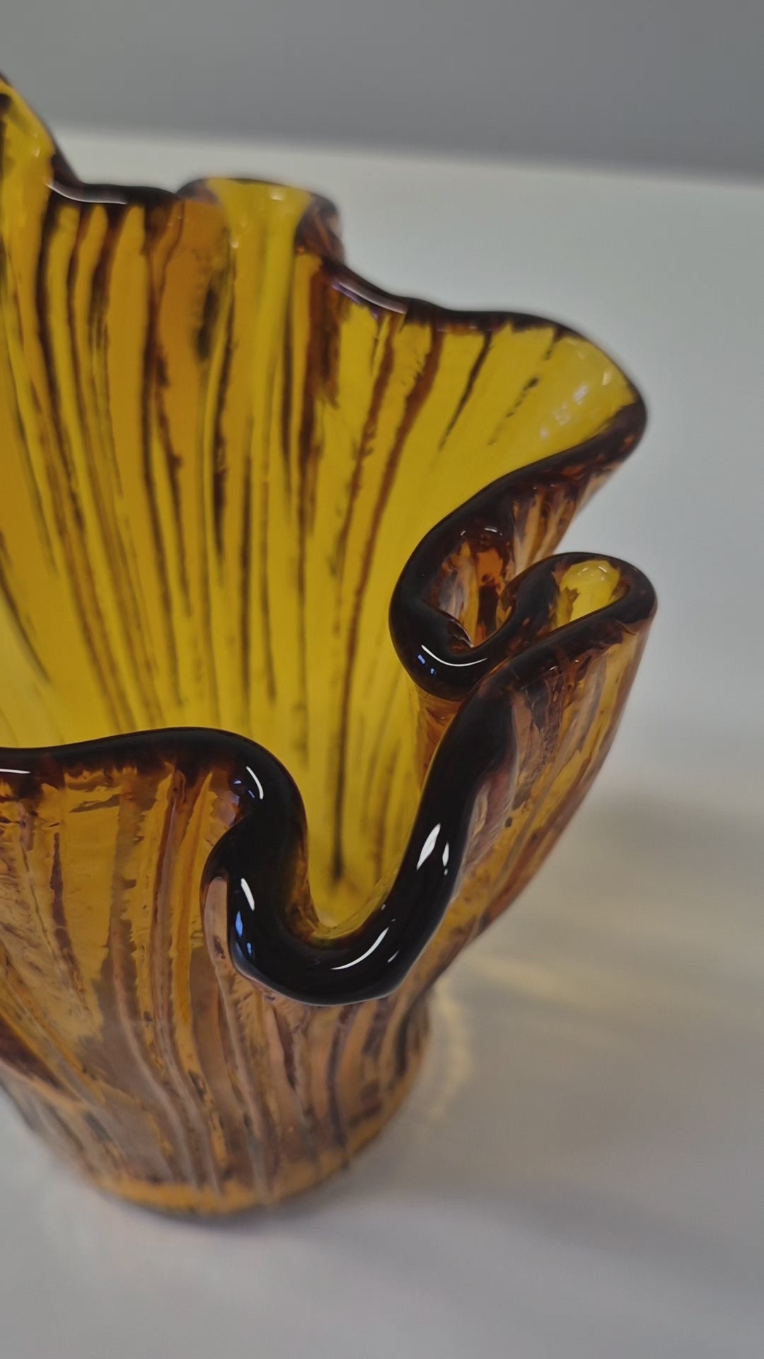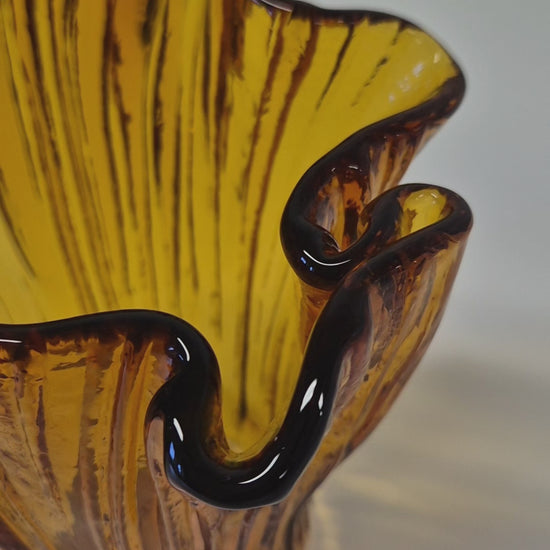 Vier het Finse vakmanschap met deze retro Muurla glazen vaas , een stijlvol voorbeeld van design uit het midden van de 20e eeuw. Bekend om hun gedurfde vormen en levendige glaswerk, brengen de Muurla-stukken een tijdloos karakter in elk interieur. Perfect om verse bloemen te presenteren of om zelfstandig te staan als sculpturaal decoratiestuk. H 17 cm B 14 cm