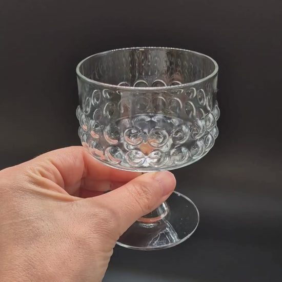 Vier klassiek Fins design met dit authentieke Riihimäen Lasi Grappo cocktailglas , gemaakt door de beroemde ontwerpster Nanny Still tussen 1967 en 1973. Still stond bekend om haar innovatieve glaswerk in deze periode en combineert vakmanschap met functionaliteit.