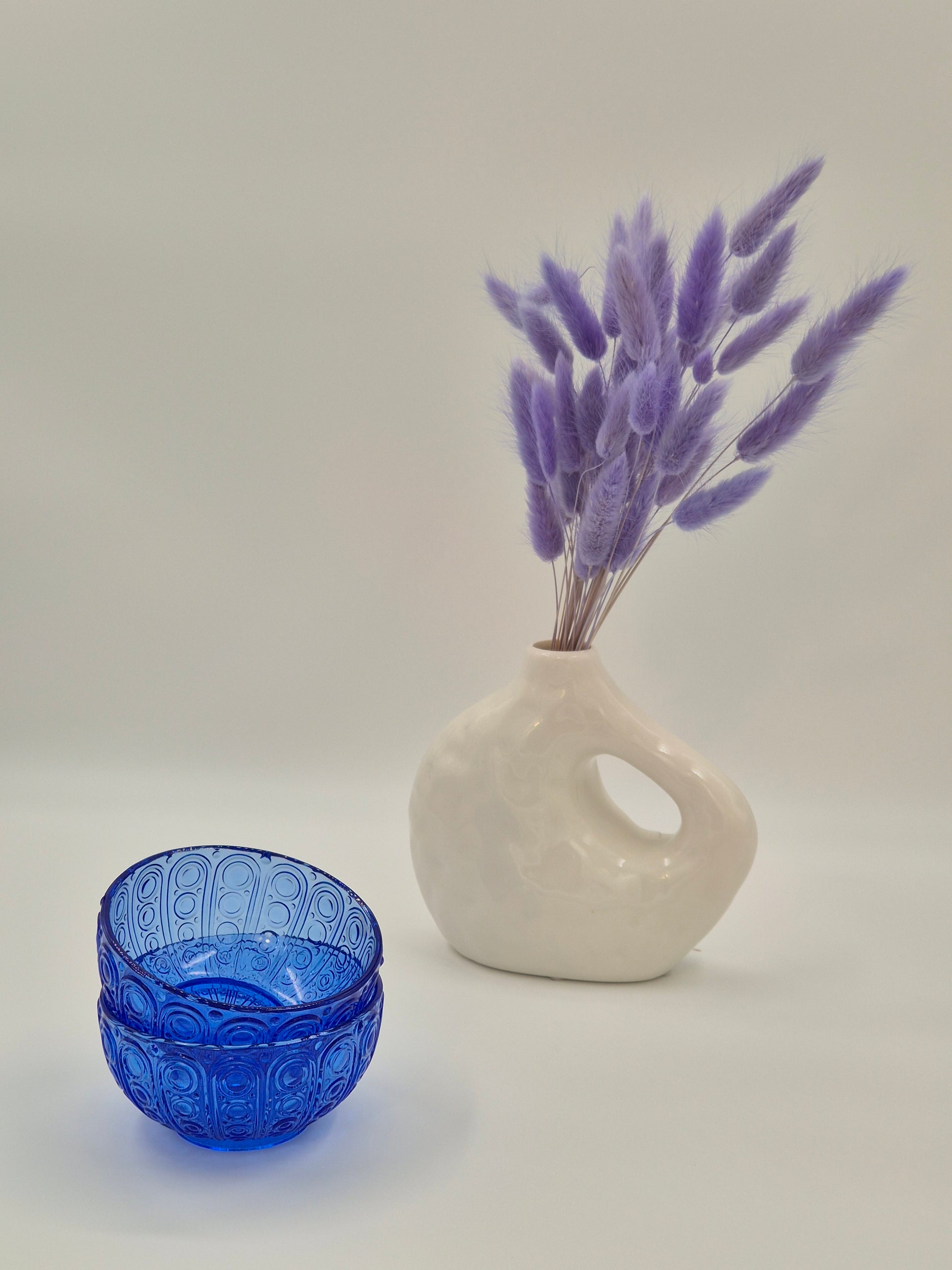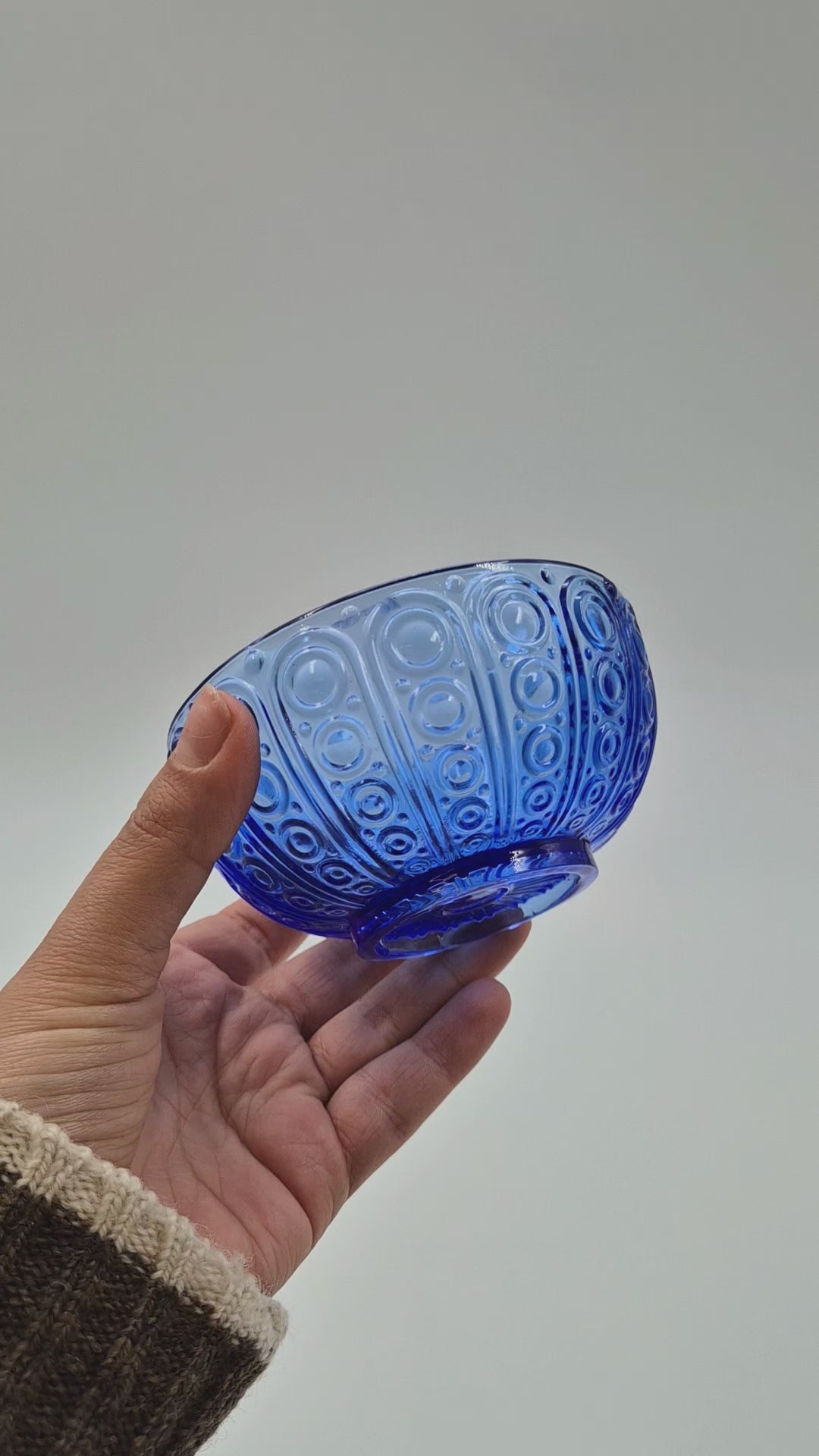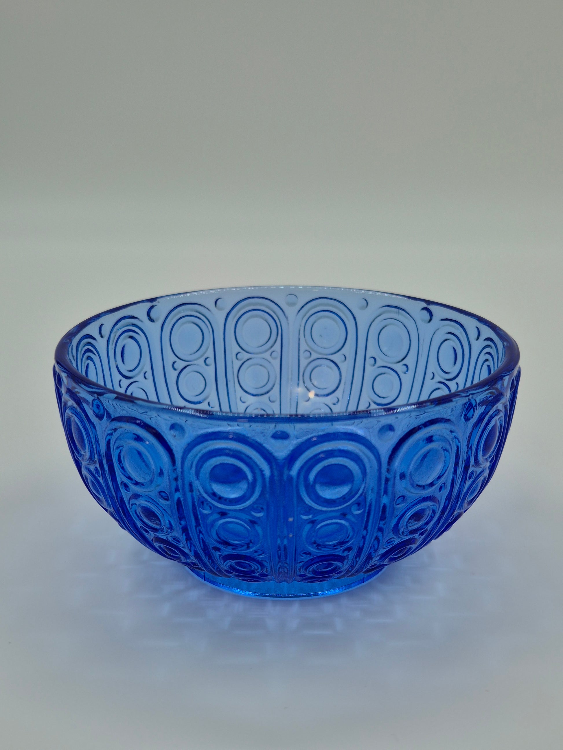 Een prachtig voorbeeld van Fins glaskunstwerk: deze Riihimäen Lasi Riikinkukko dessertkom is ontworpen door de gerenommeerde Nanny Still . Met elegante, op pauwen geïnspireerde motieven toont de kom klassieke mid-century moderne esthetiek met zijn delicate maar gedurfde ontwerp. Perfect voor het serveren van desserts of als verzamelobject, belichaamt hij de schoonheid en het vakmanschap van Fins design.