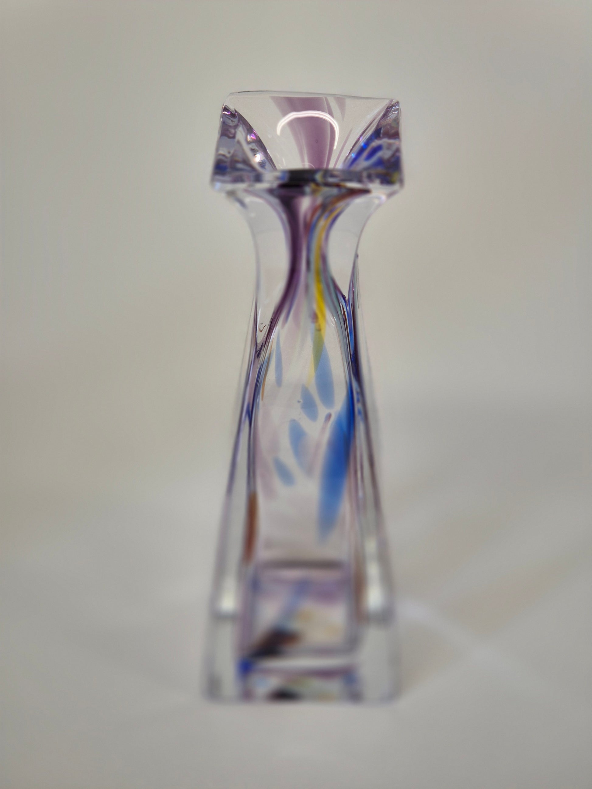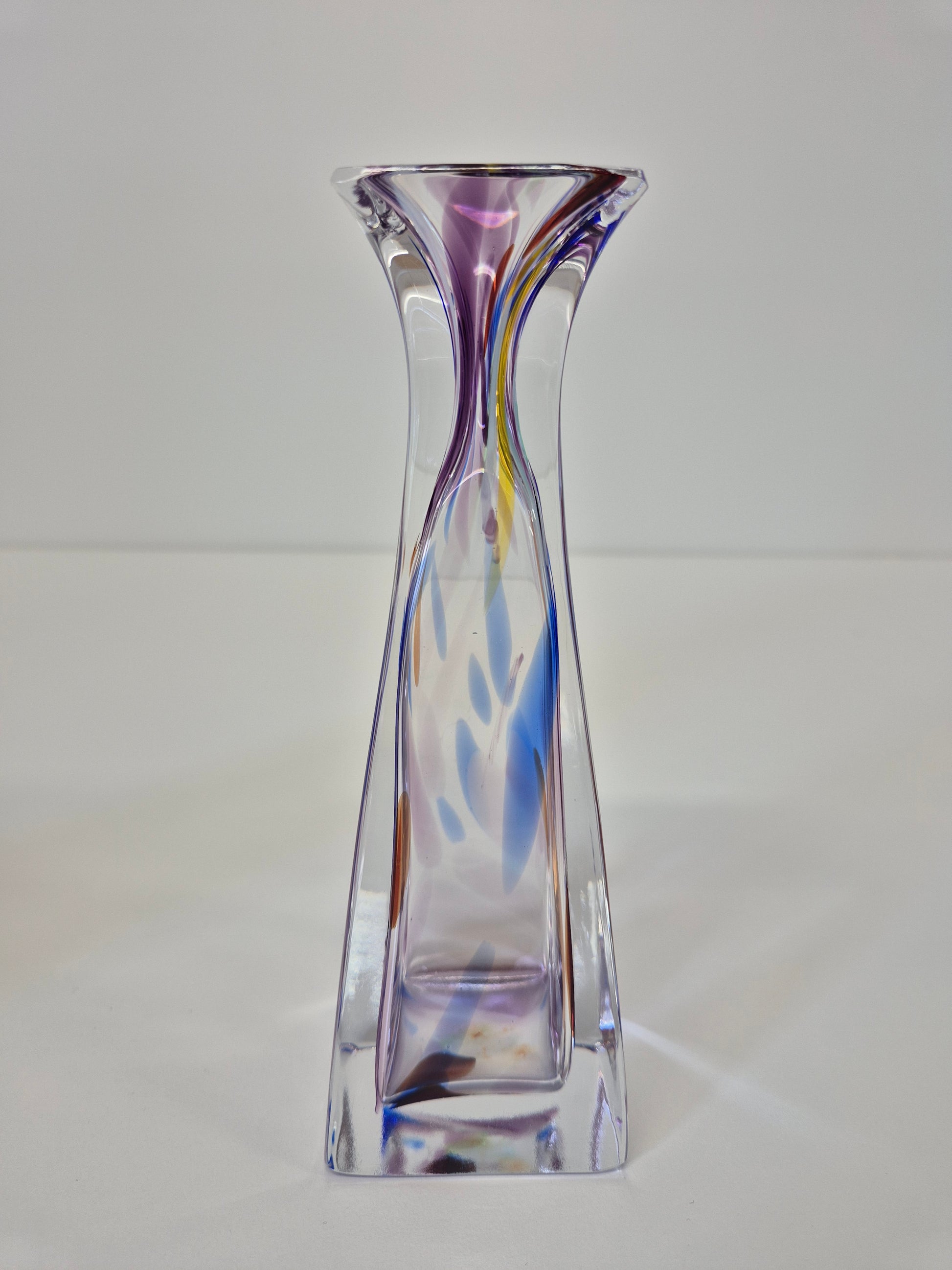 Russische gekleurde loodkristallen vaas - vintage handgesneden kunstglas