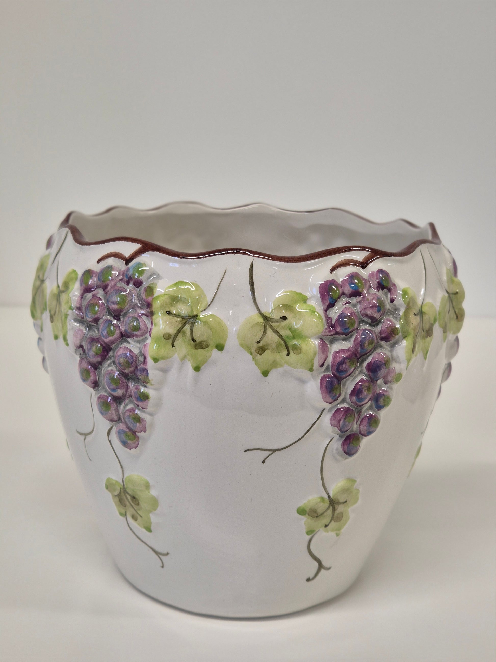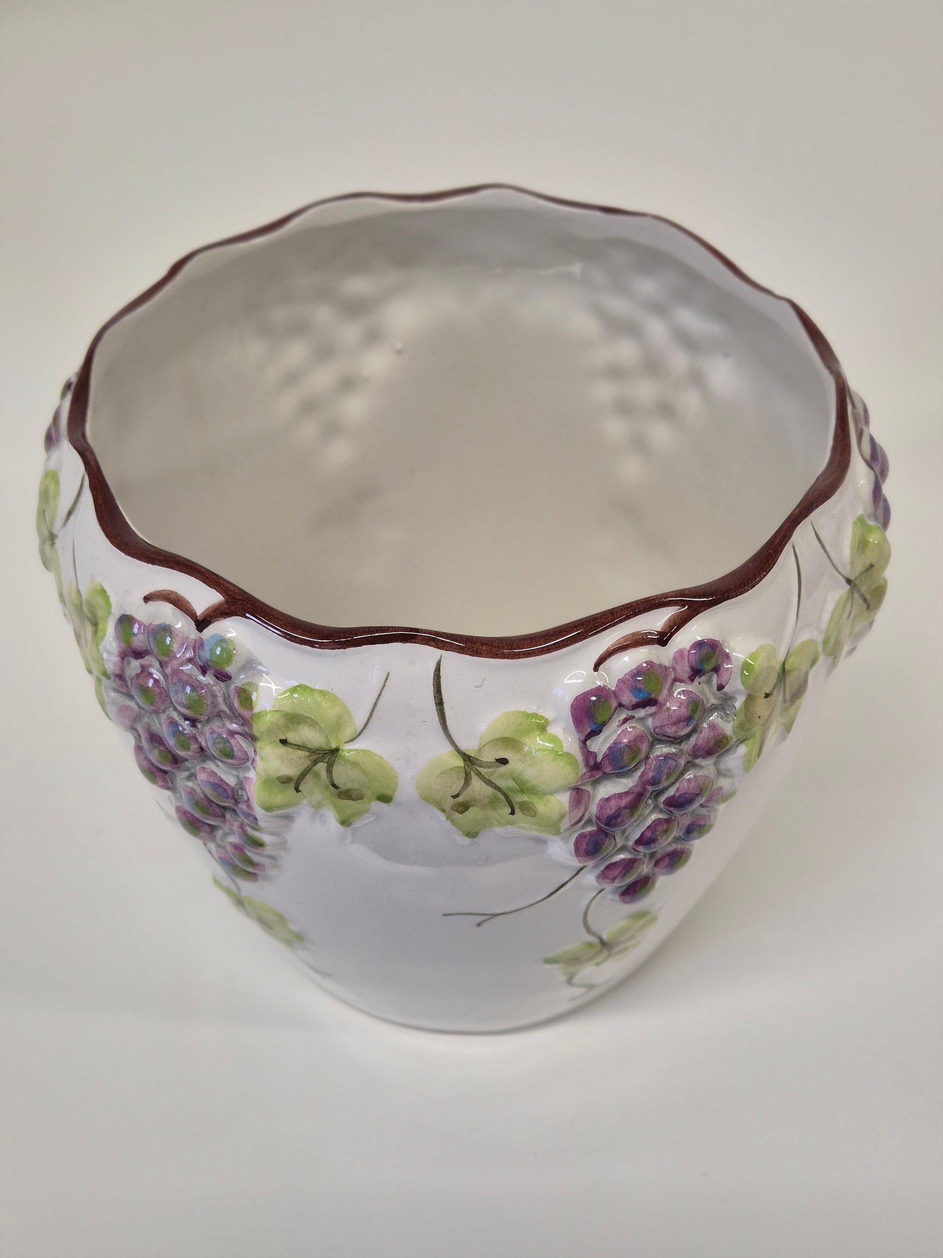 Vintage Alcobaça bloempot – met de hand beschilderd, opvallend druivenmotief