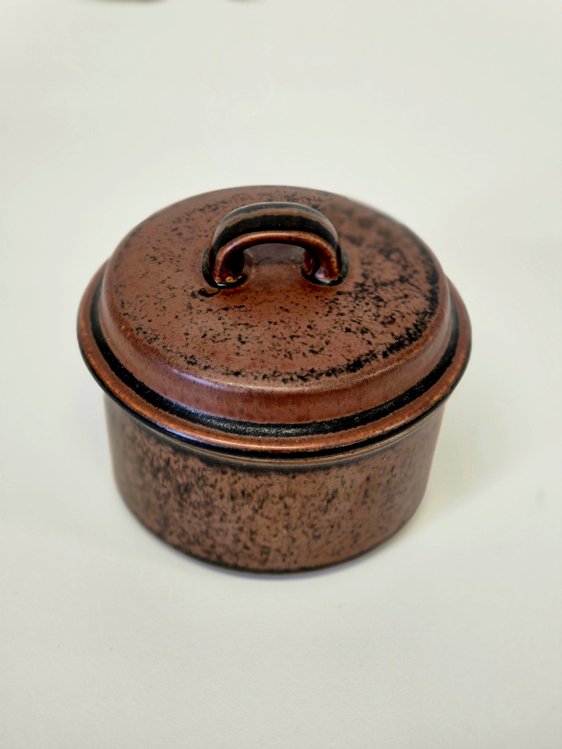 Voeg een vleugje klassiek Fins design toe aan uw tafel met deze Vintage Arabia Ruska suikerpot en melkkan , prachtig vervaardigd en ontworpen door Ulla Procopé tussen 1960 en 1999. Deze stukken maken deel uit van de iconische Ruska-collectie en kenmerken zich door de warme, aardse bruine glazuur en eenvoudige maar elegante vormen die kenmerkend zijn voor de Scandinavische stijl uit het midden van de vorige eeuw.