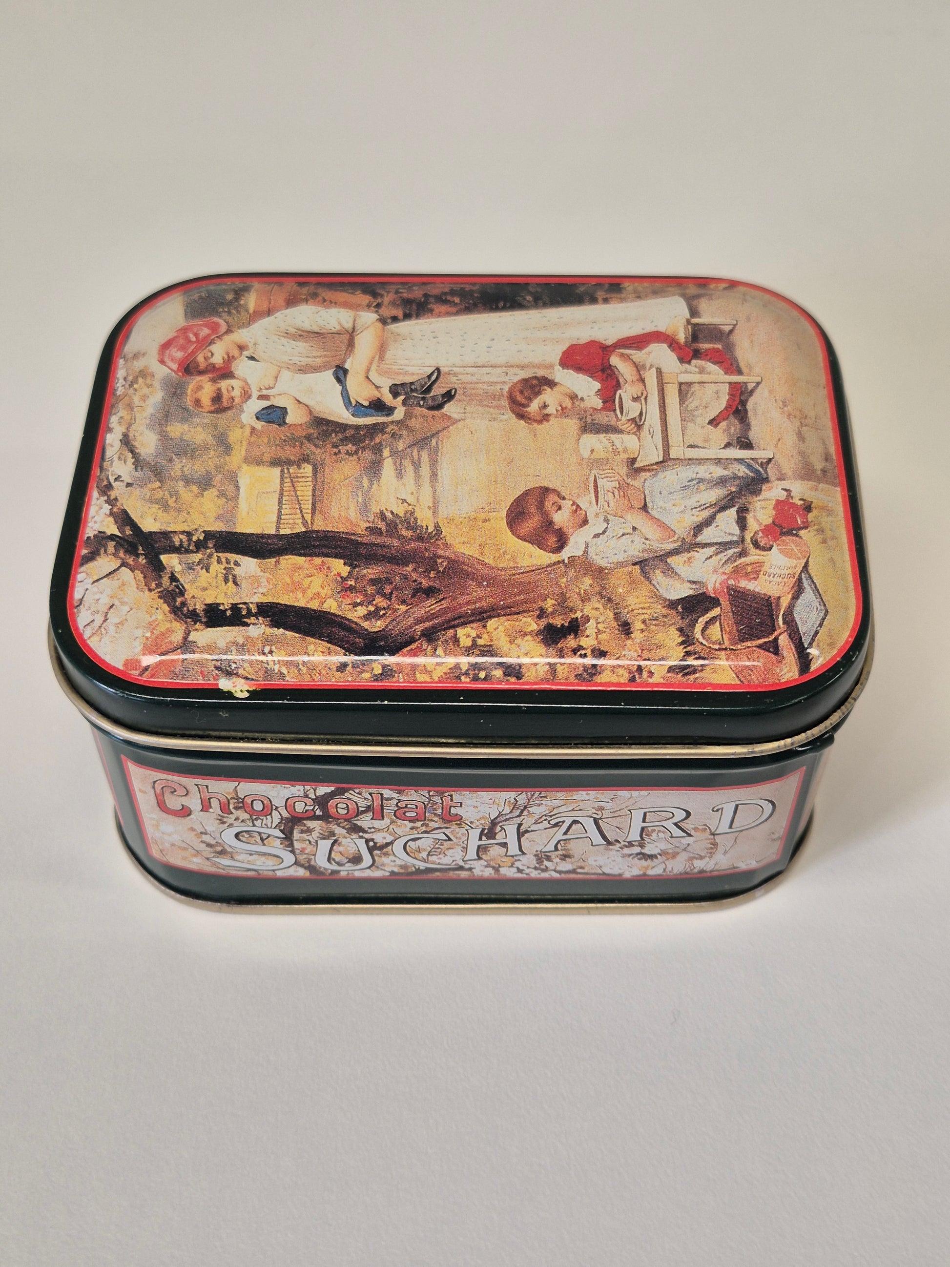 Dankzij de stevige metalen constructie is het ideaal voor opslag of decoratief gebruik, terwijl het tijdloze ontwerp de rijke geschiedenis van Chocolat Suchard benadrukt.