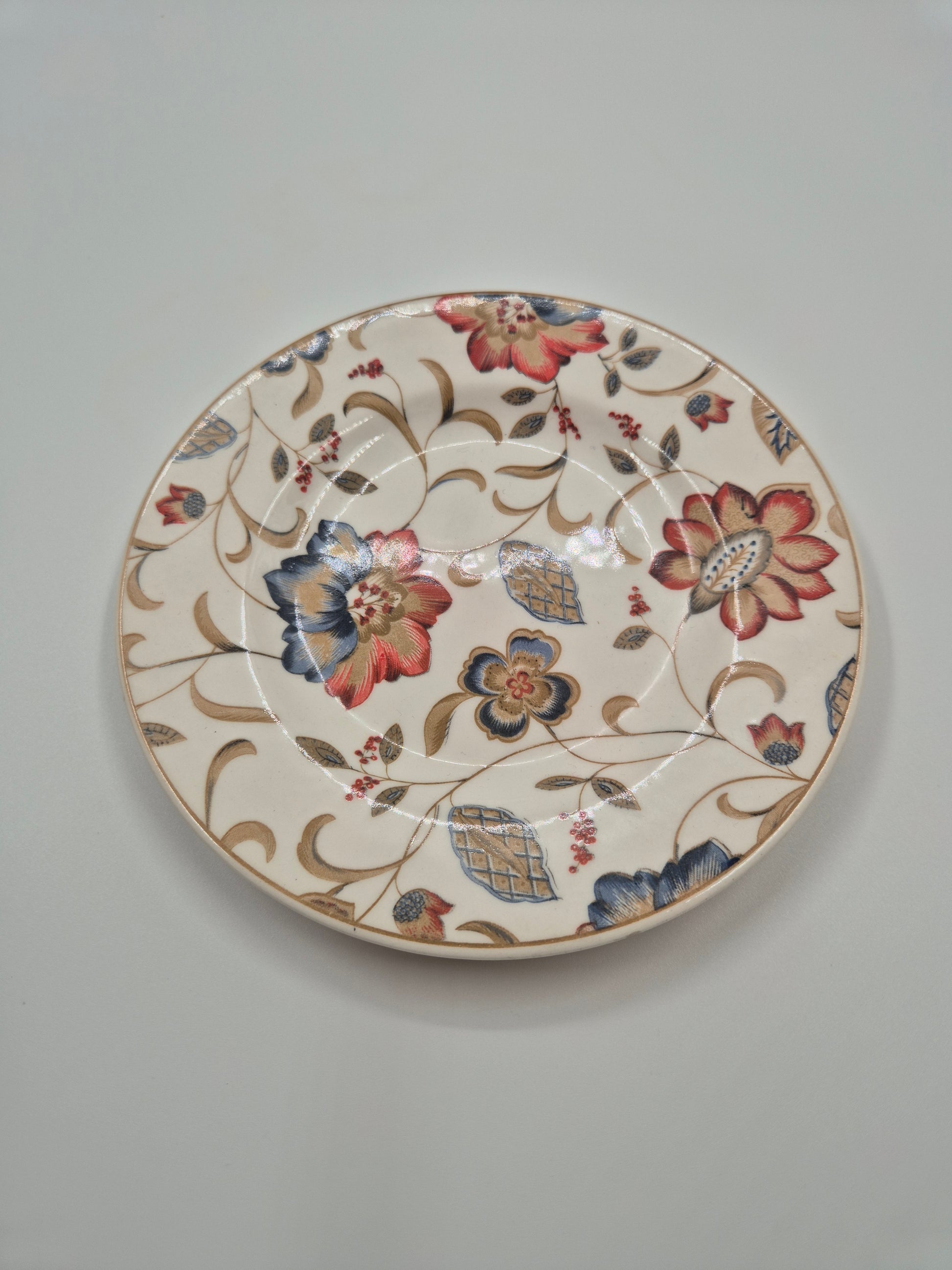 Voeg tijdloze Engelse charme toe aan uw tafel met dit vintage Churchill Jacobean bord . Gemaakt door Churchill in Engeland, is het voorzien van het iconische Jacobean bloemenpatroon – rijk, elegant en vol karakter.