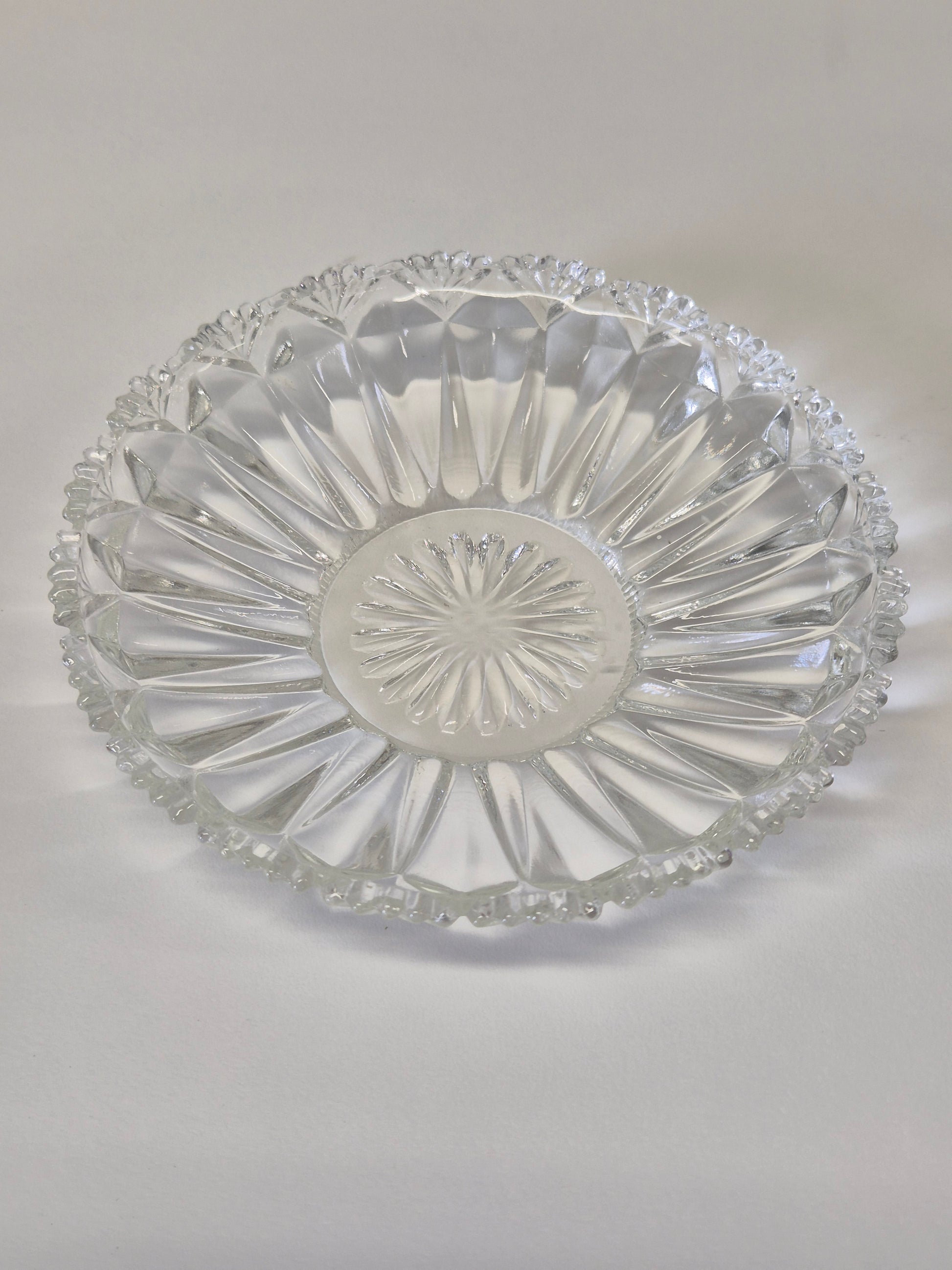 Delicaat en tijdloos, dit vintage glazen dessertbord is de perfecte finishing touch voor uw gedekte tafel. Met een diameter van 14 cm is het ideaal voor het serveren van zoetigheden, gebak of kleine hapjes met vintage elegantie.