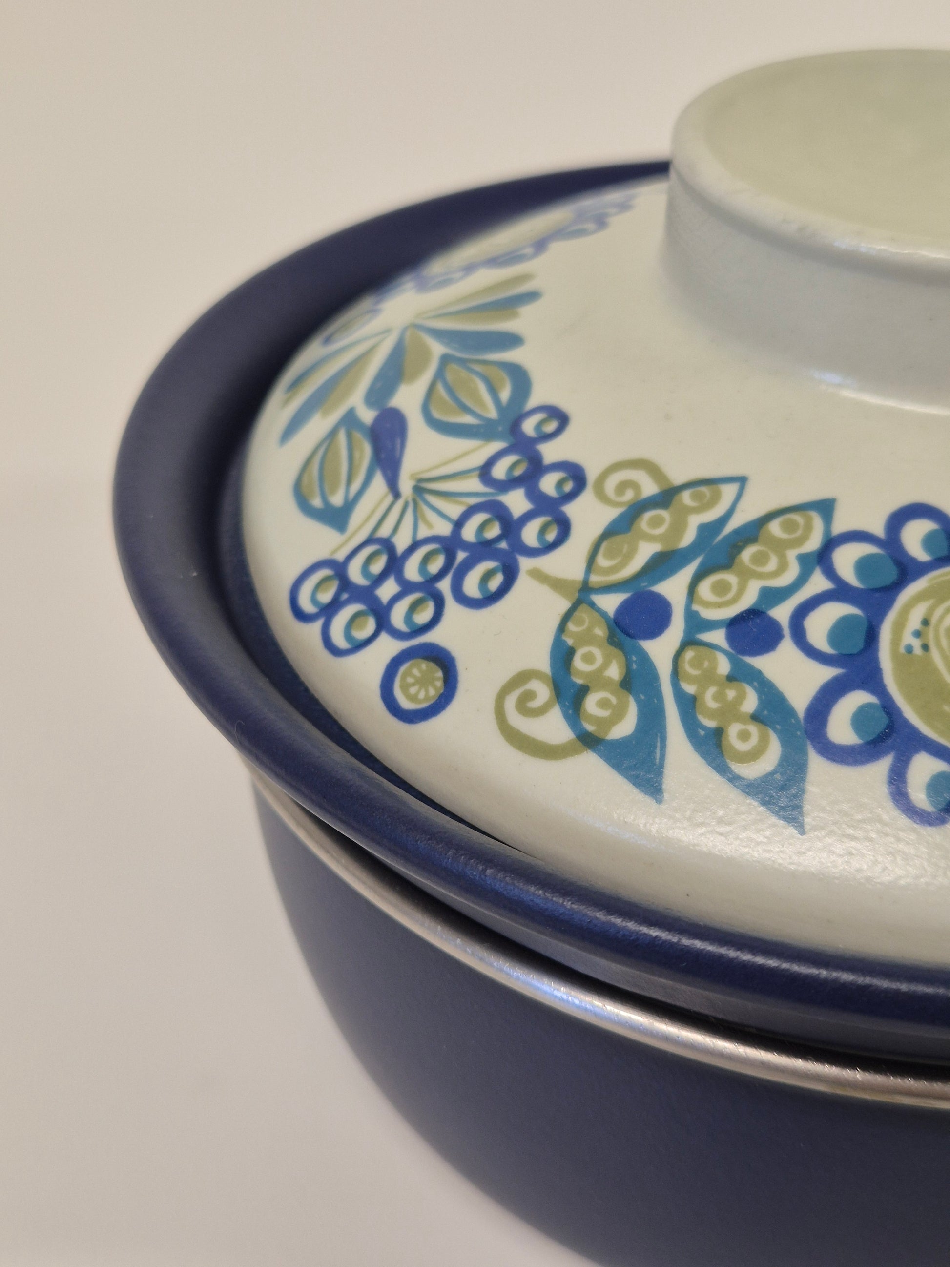 Een charmante en zeldzame vondst voor liefhebbers van Scandinavisch keramiek uit het midden van de vorige eeuw: deze vintage Figgjo Flameware "Tor Viking" steelpan combineert een rustiek Scandinavisch design met alledaagse functionaliteit. Gemaakt in Noorwegen door Figgjo Flint , maakt dit exemplaar deel uit van de geliefde Tor Viking -serie, bekend om zijn handgeschilderde volksmotieven en aardse tinten.