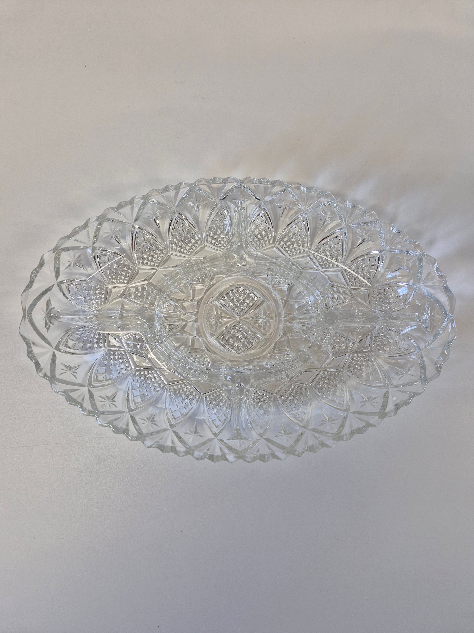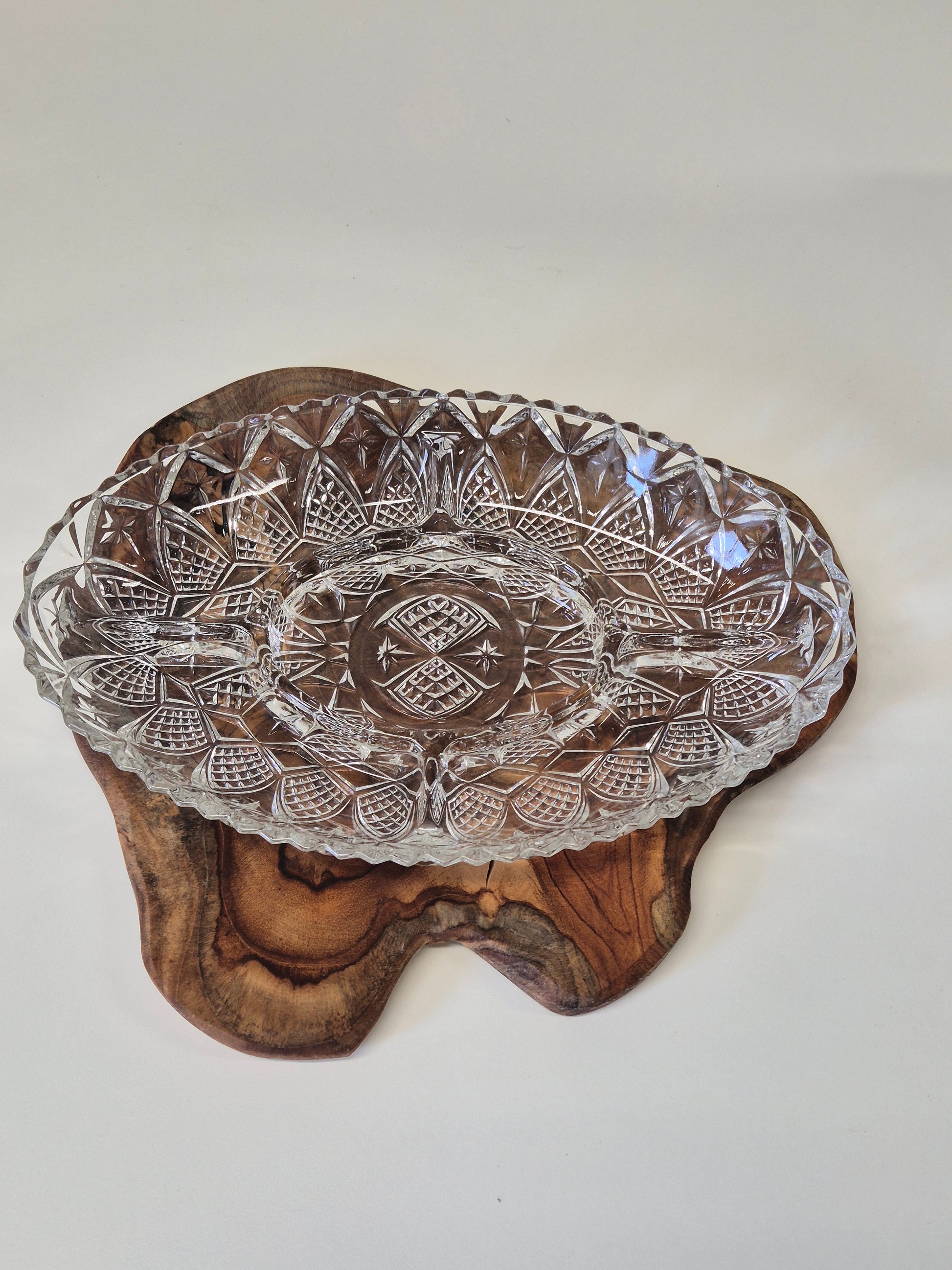 Serveer met stijl en vintage charme met dit Vintage French Glass Partition Plate , een prachtig ontworpen serveerschaal met 5 vakken, gemaakt van dik, geperst glas.