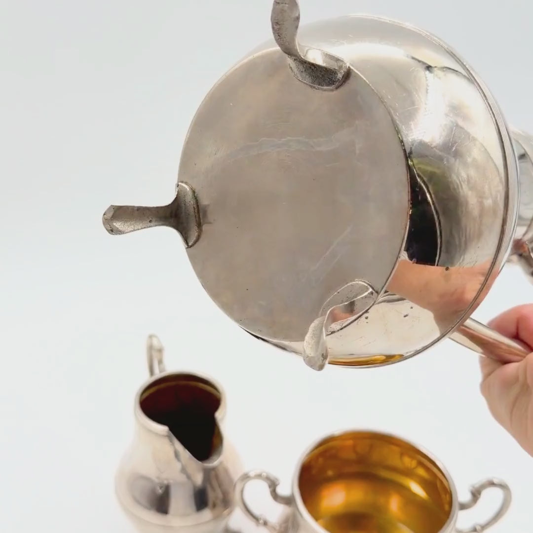 Antieke kan, suikerpot en melkkan in Jugend-stijl – elegante Art Nouveau-set