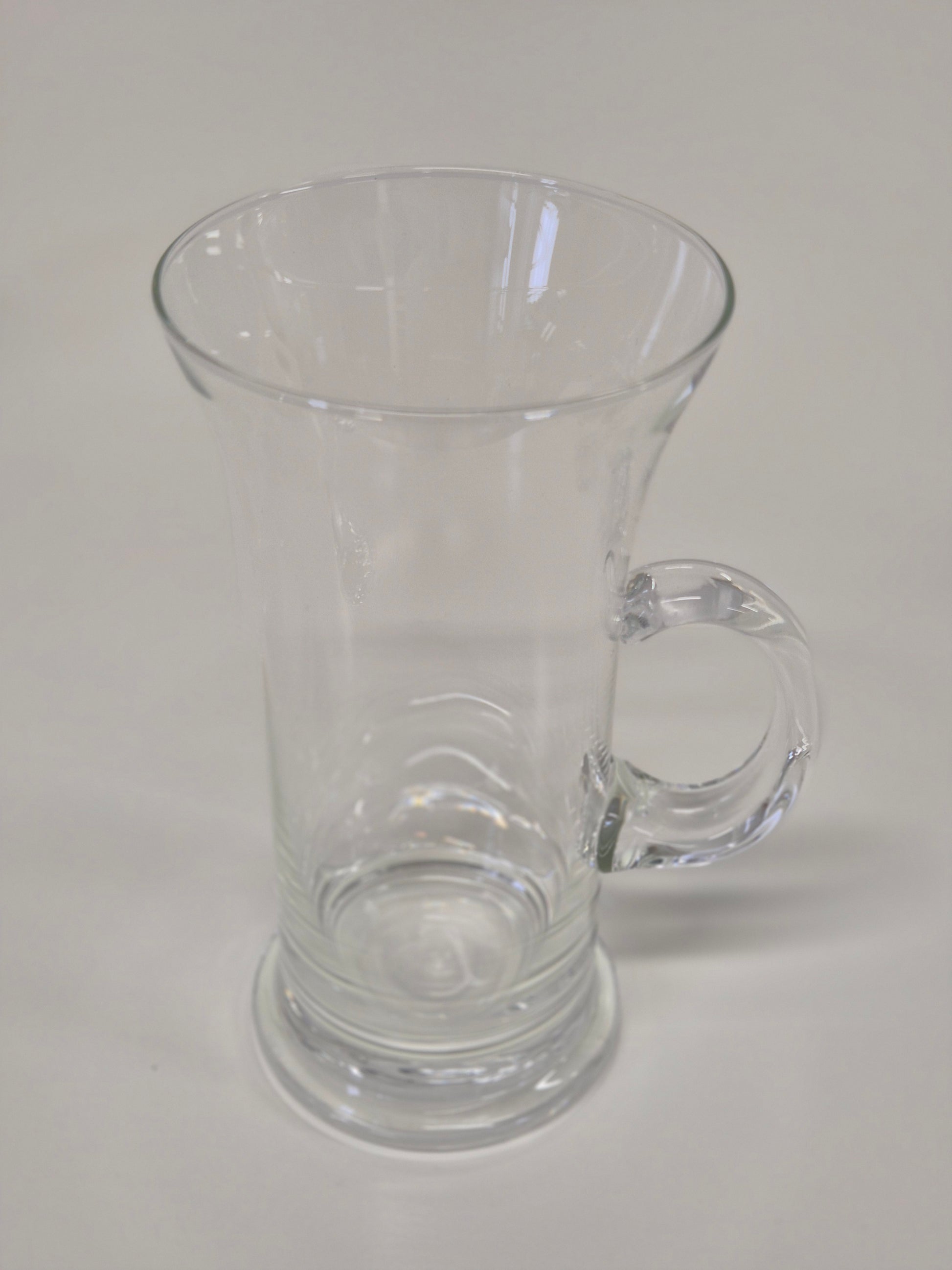 Serveer je warme dranken in tijdloze Scandinavische stijl met dit vintage Irish Coffee glas van Nuutajärvi , ontworpen door de beroemde Finse ontwerper Heikki Orvola . Dit elegante glas, geproduceerd tussen 1971 en 1994 , heeft een klassieke vorm met een stevig handvat en een voet op voet, ideaal voor Irish coffee, glühwein of speciale desserts.
