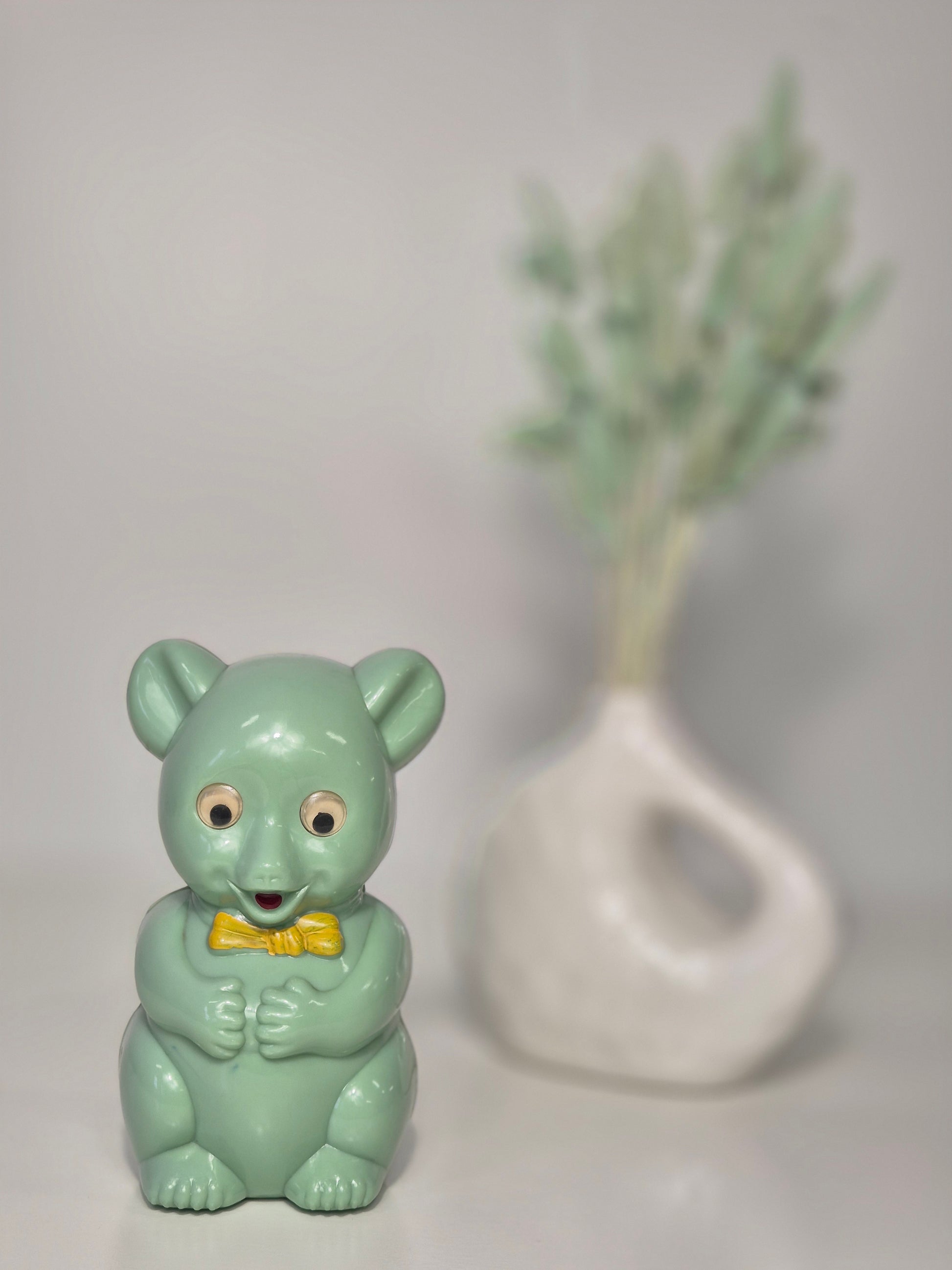 Bewaar je munten in stijl met deze schattige vintage lichtgroene spaarpot . Met zijn zachte pastelgroene kleur en klassieke design voegt deze spaarpot een nostalgische touch toe aan elke kamer, of het nu een kinderkamer, babykamer of je vintage verzameling is.