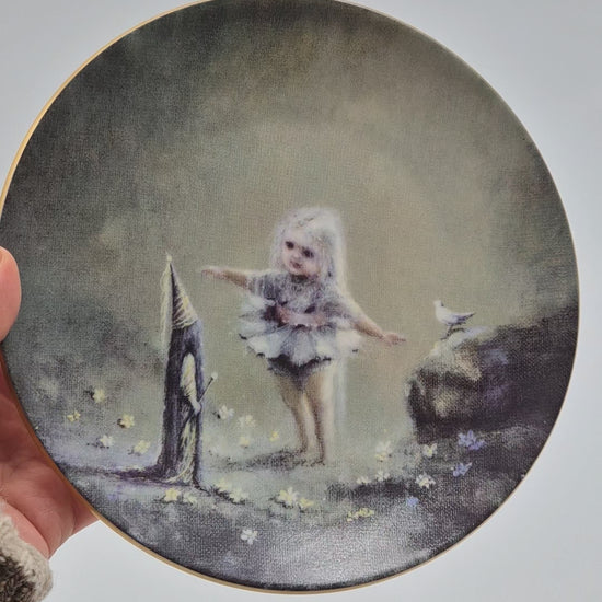 Celebrate Finnish artistry with this Arabia Sadun Totuus Wall Plate, designed by Sussi Anna Åberg in 1990. A beautiful collectible porcelain plate from Arabia Finland, showcasing elegant Scandinavian design and storytelling.