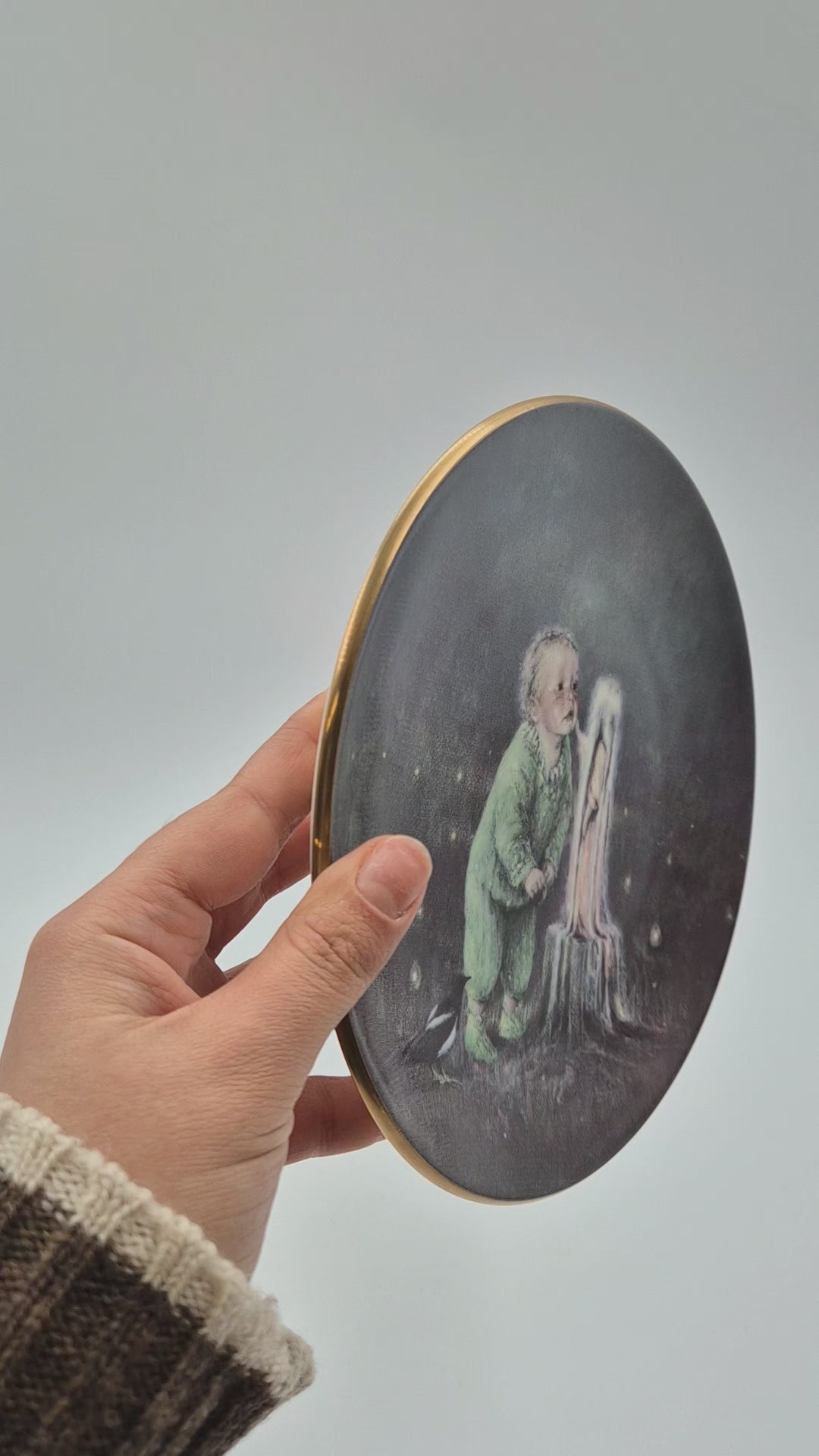 Bring home the magic of Finnish design with this Arabia “Sadun totuus” wall plate by Sussi Anna Åberg (1990). Featuring a whimsical fairy-tale illustration, this collectible porcelain plate captures the charm of Nordic storytelling. Perfect as a decorative art piece or a unique gift, it’s a timeless treasure that adds Scandinavian elegance and storybook wonder to your home.