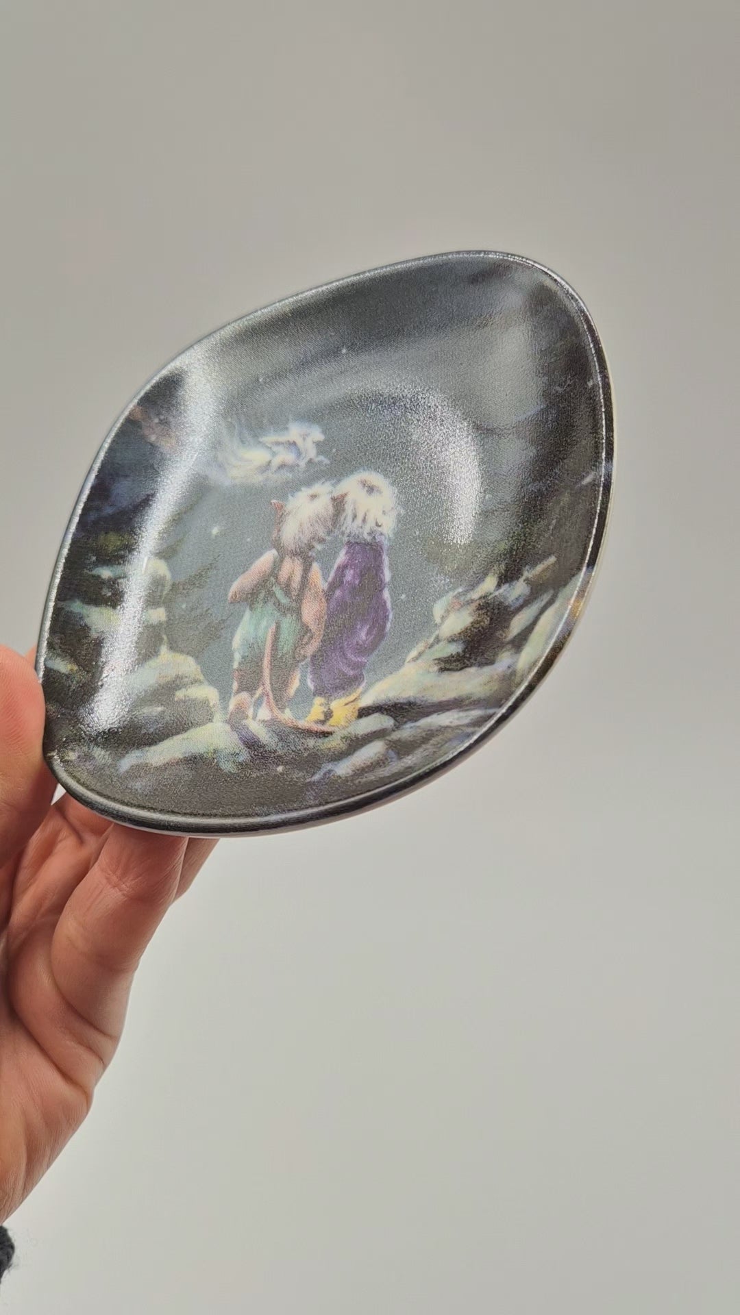 Add a touch of storybook magic and heartfelt elegance to your walls with this Arabia “Sydänystävät” wall plate by Sussi Anna Åberg (1994). Its gentle, whimsical illustration captures the spirit of friendship and joy, making it a charming collectible for lovers of Nordic design.