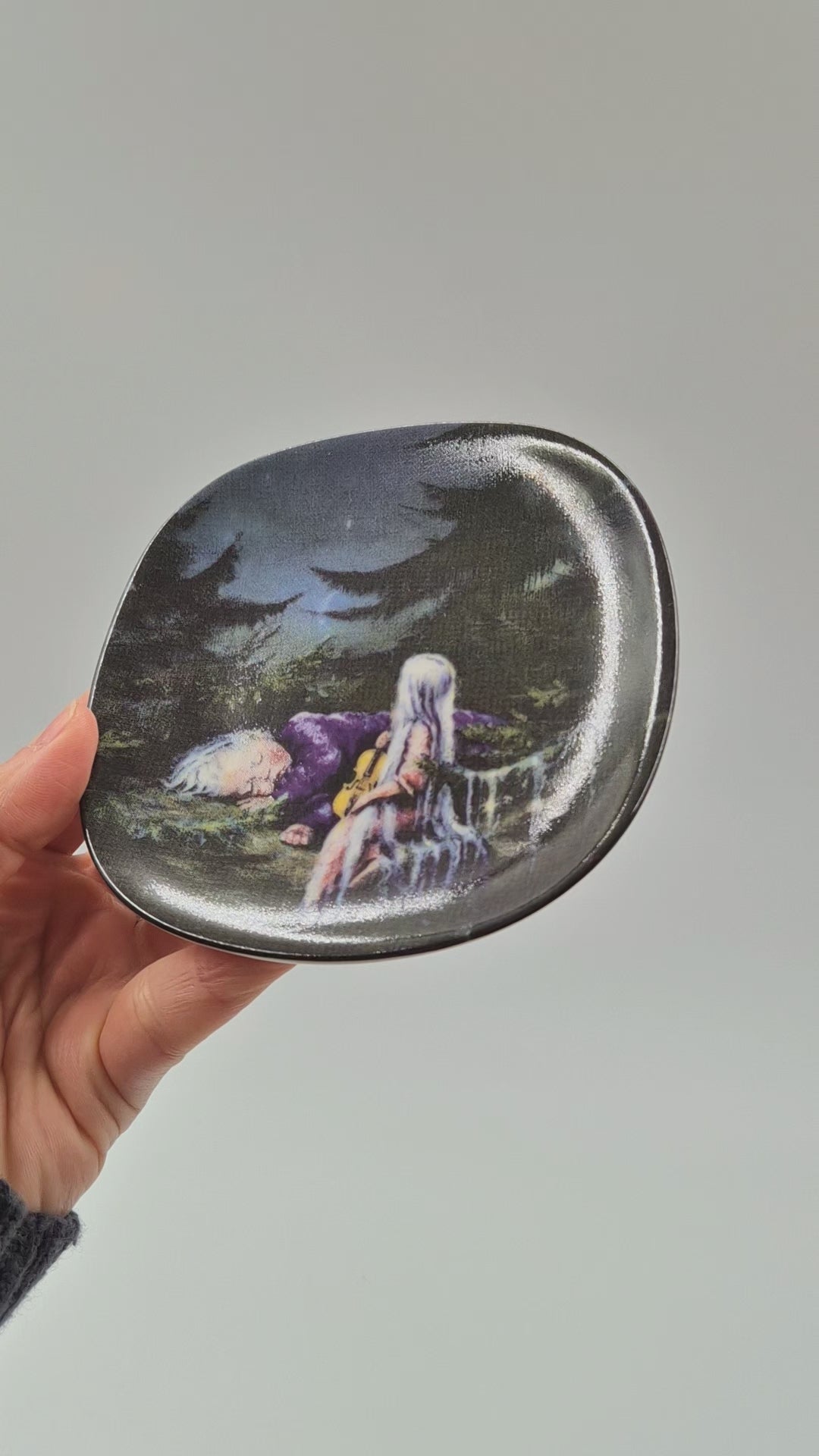 Celebrate heartfelt moments and quiet happiness with this Arabia wall plate by Sussi Anna Åberg. The storybook-inspired illustration captures the essence of peaceful companionship, making it a collectible treasure.