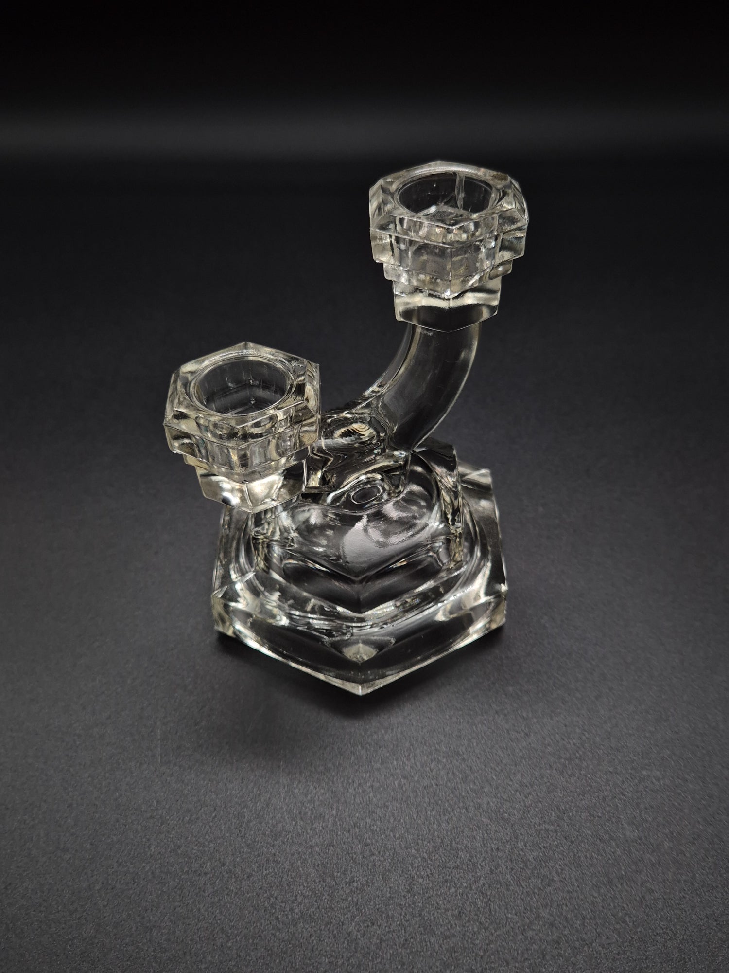 Featuring the clean lines, geometric shapes, and refined simplicity characteristic of the Art Deco era, this glass candlestick beautifully captures the spirit of 1920s design with Nordic craftsmanship. The clear glass refracts candlelight into a warm, sparkling glow — perfect for creating a cozy ambiance or as a stunning vintage collectible.