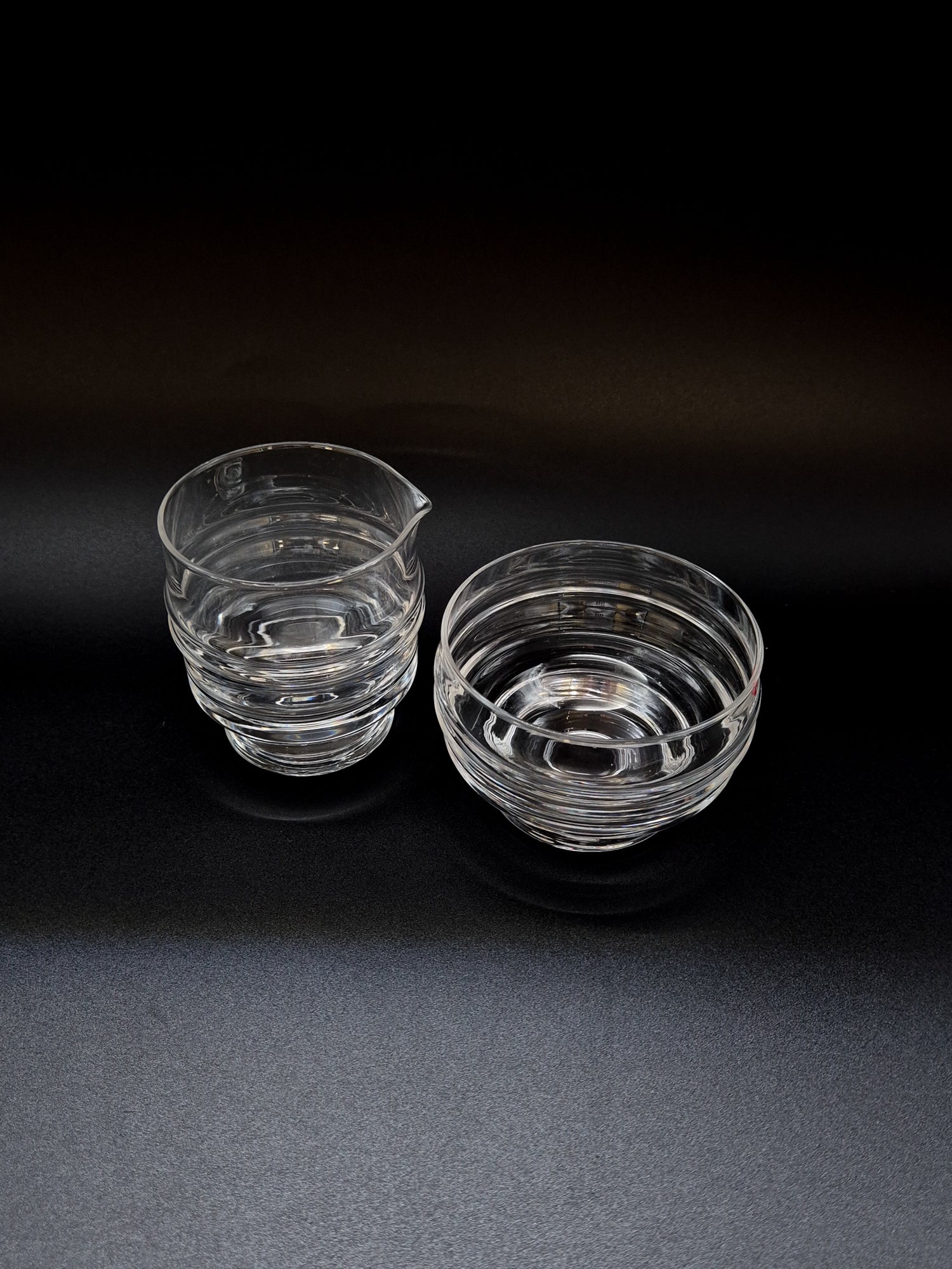Perfect for serving sugar and cream during coffee or tea, or as decorative items, this set combines functionality with timeless Scandinavian style. A must-have for collectors and lovers of mid-century modern design and Iittala glassware.
