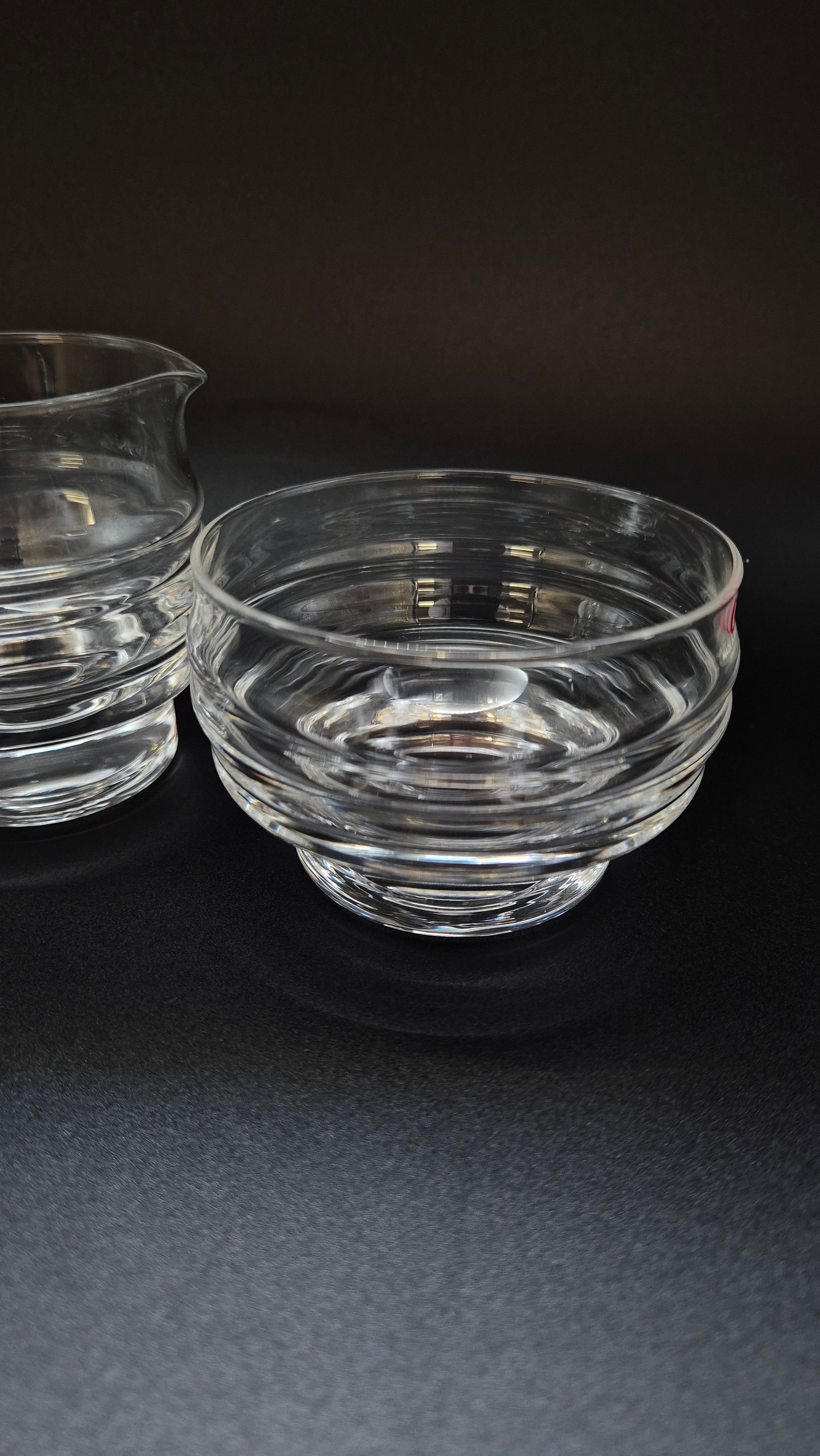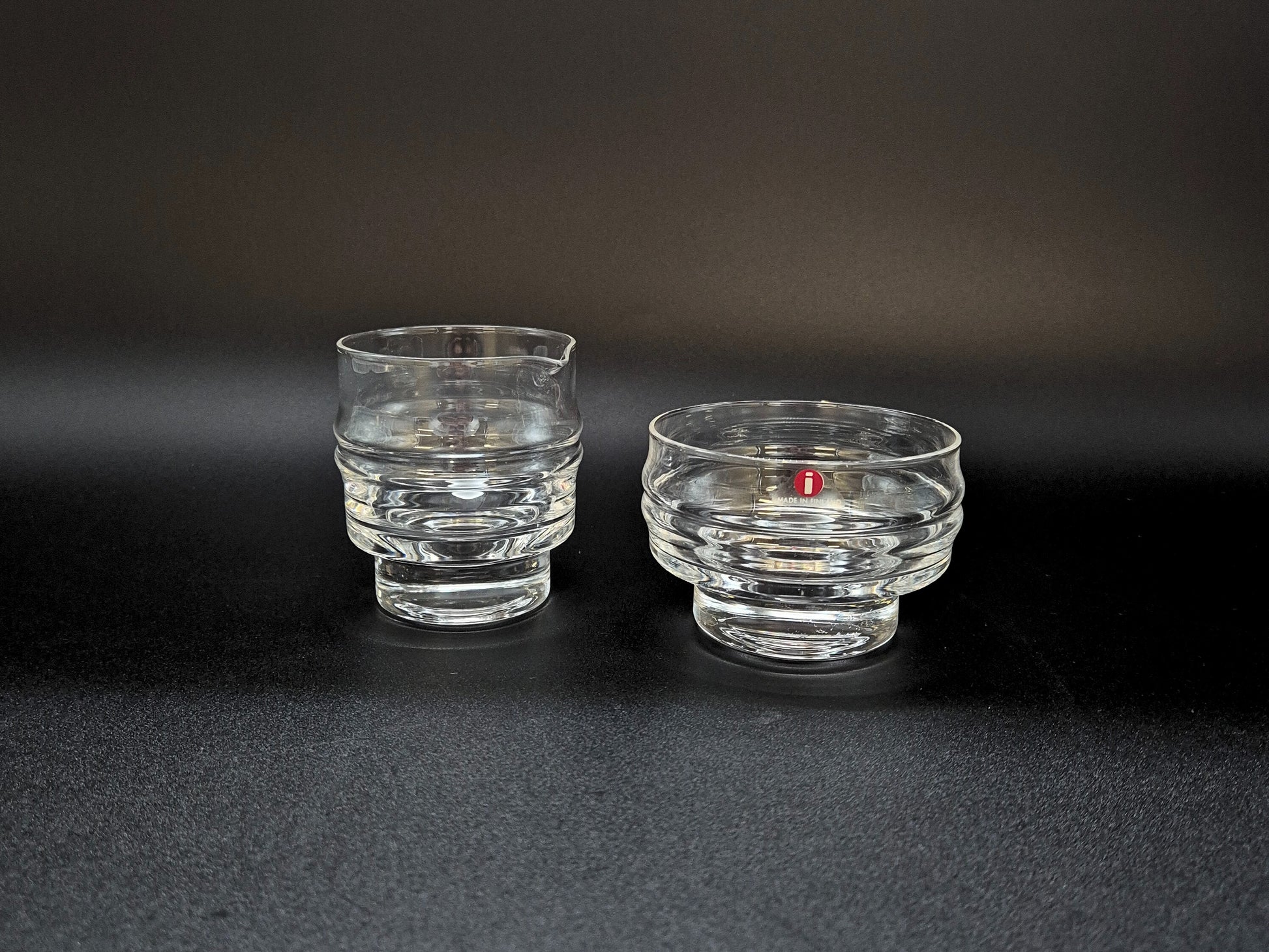 Perfect for serving sugar and cream during coffee or tea, or as decorative items, this set combines functionality with timeless Scandinavian style. A must-have for collectors and lovers of mid-century modern design and Iittala glassware.