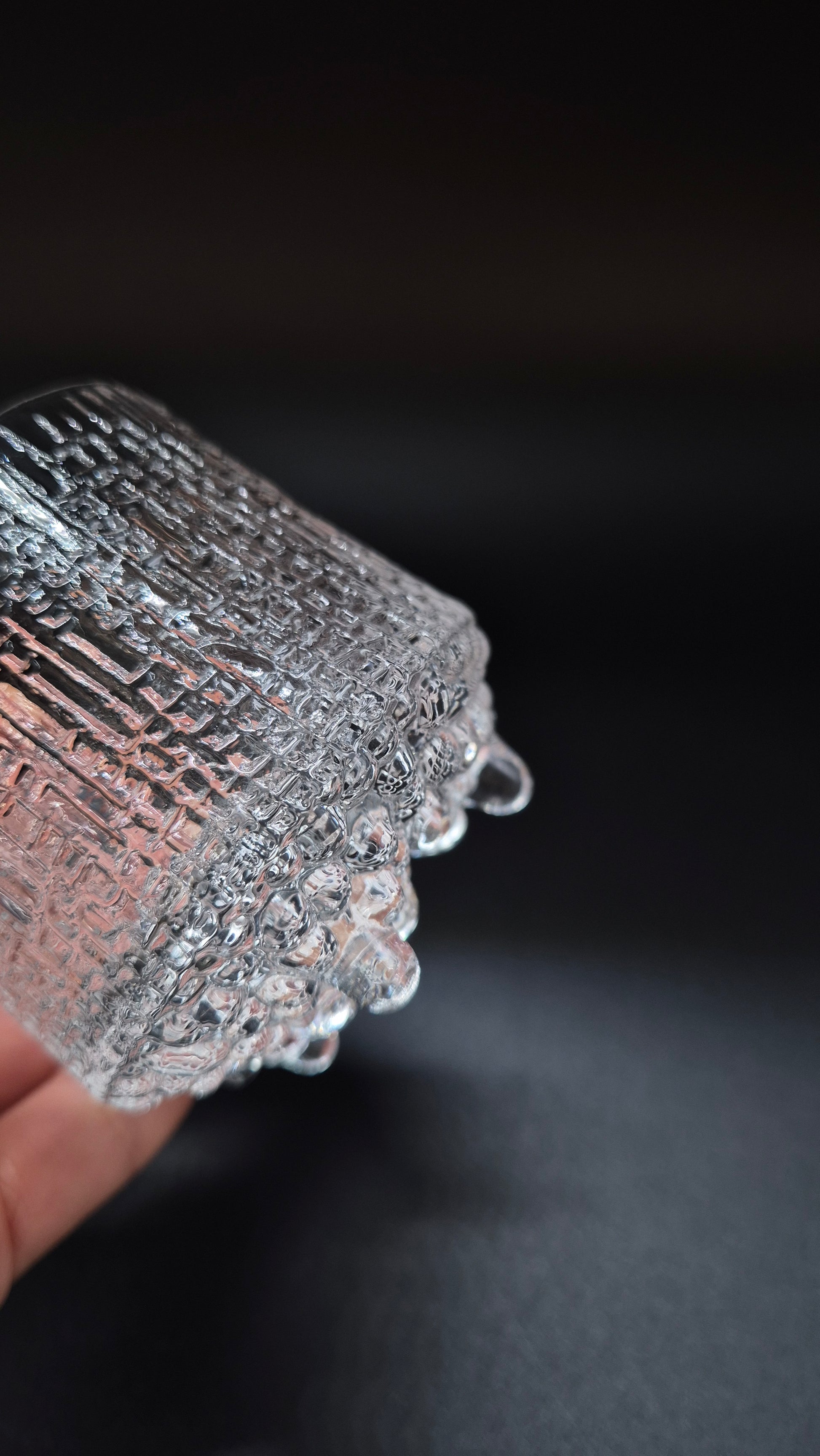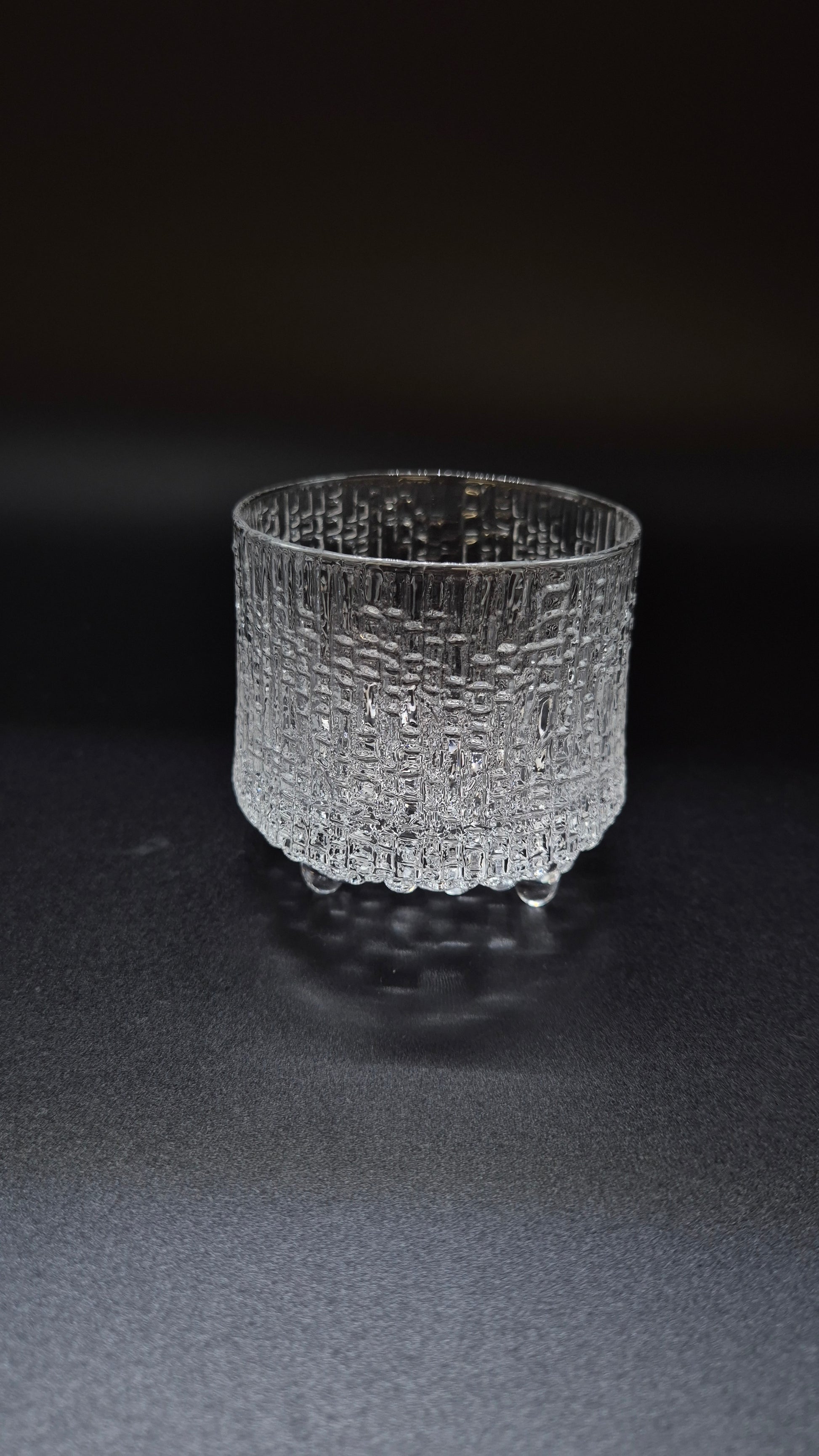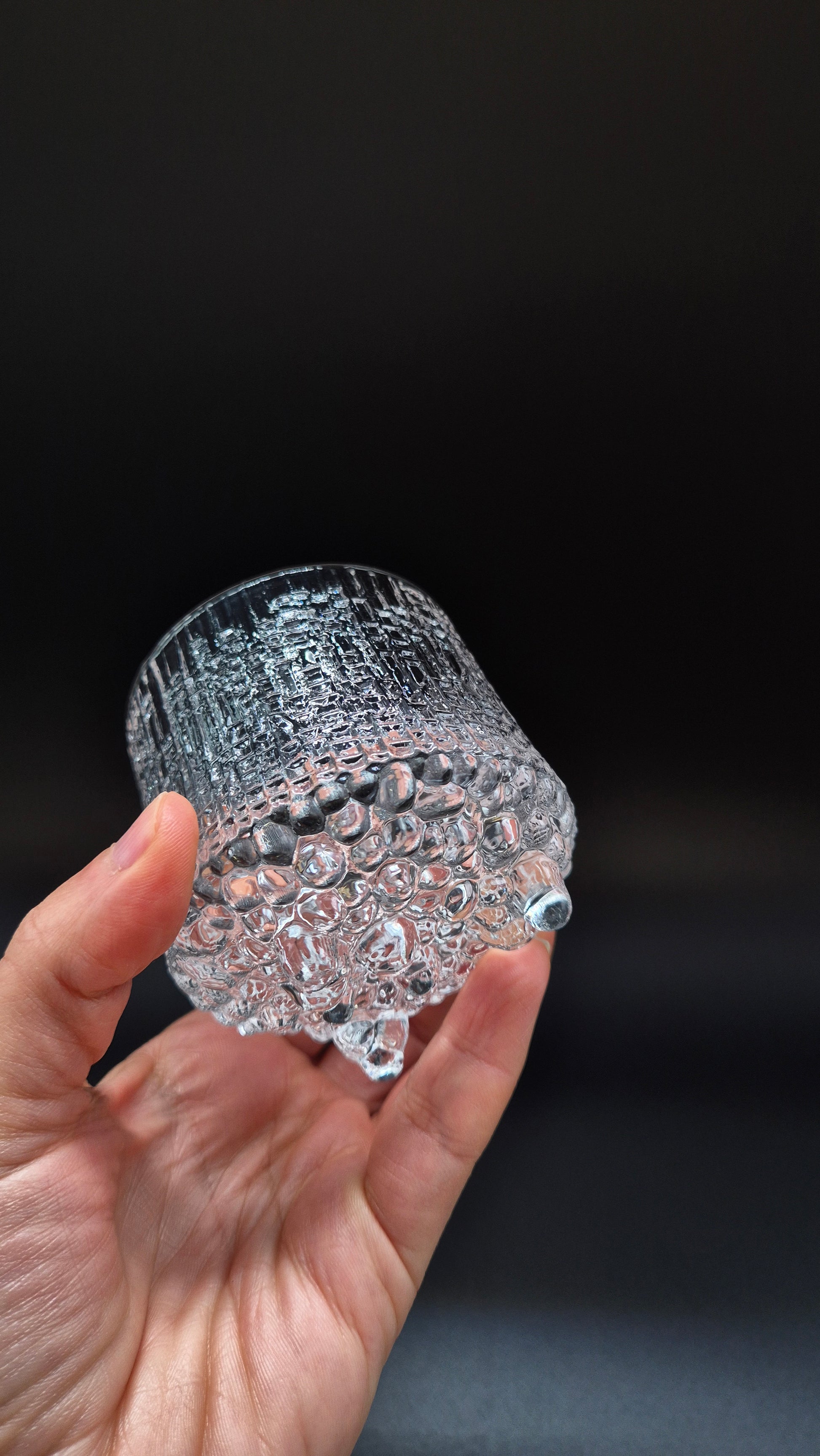 Discover the iconic beauty of Finnish design with the Iittala Ultima Thule Glass, crafted by legendary designer Tapio Wirkkala in 1968. Inspired by the natural world, this glass features a distinctive ice crystal pattern that captures the rugged essence of the Nordic landscape. Made from high-quality glass with a textured, sculptural surface, the Ultima Thule series combines artistic elegance with practical functionality. Perfect as a collectible or for everyday use, this glass is a timeless tribute to mid-century Scandinavian craftsmanship. H7cm Ø7cm