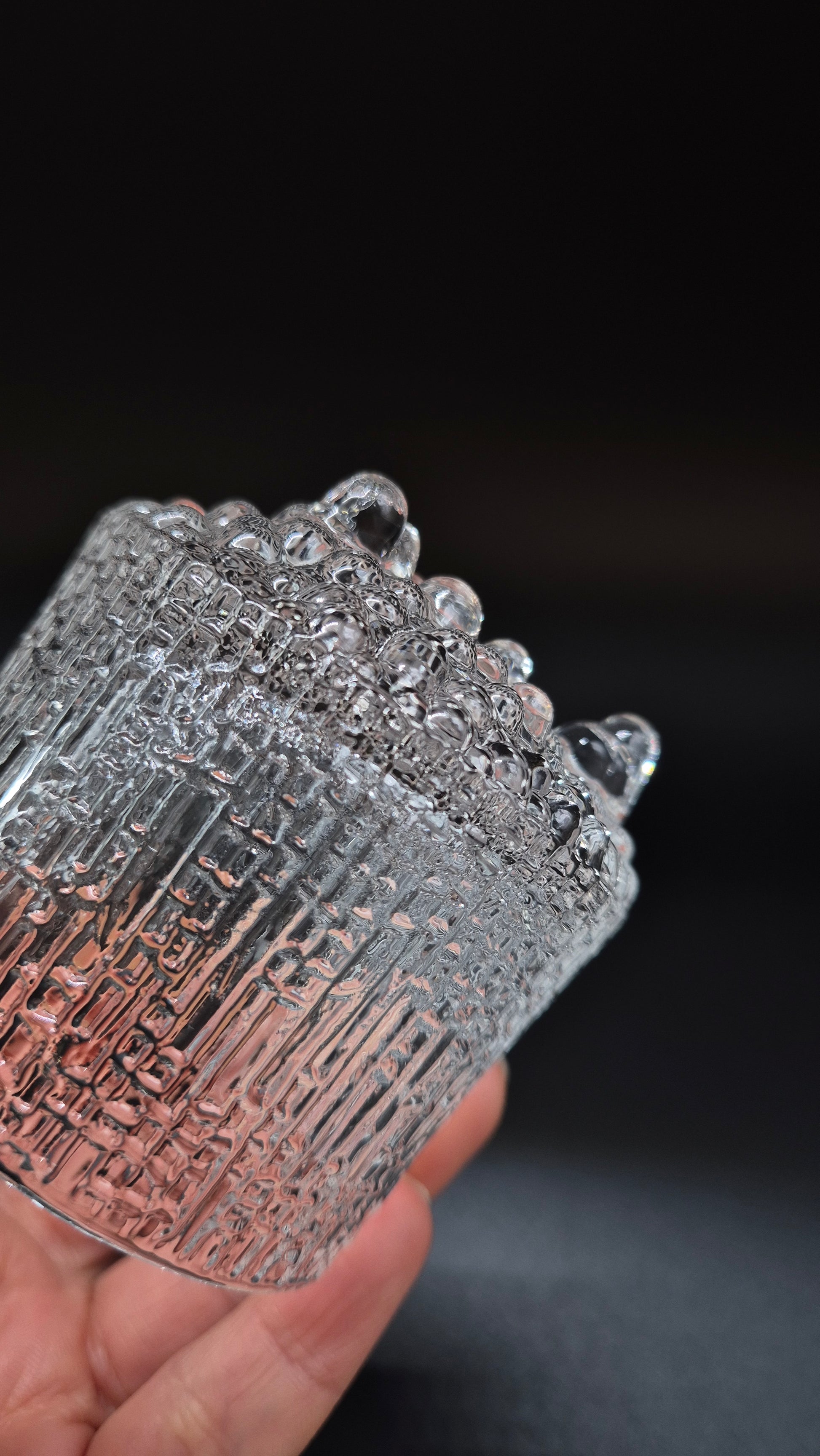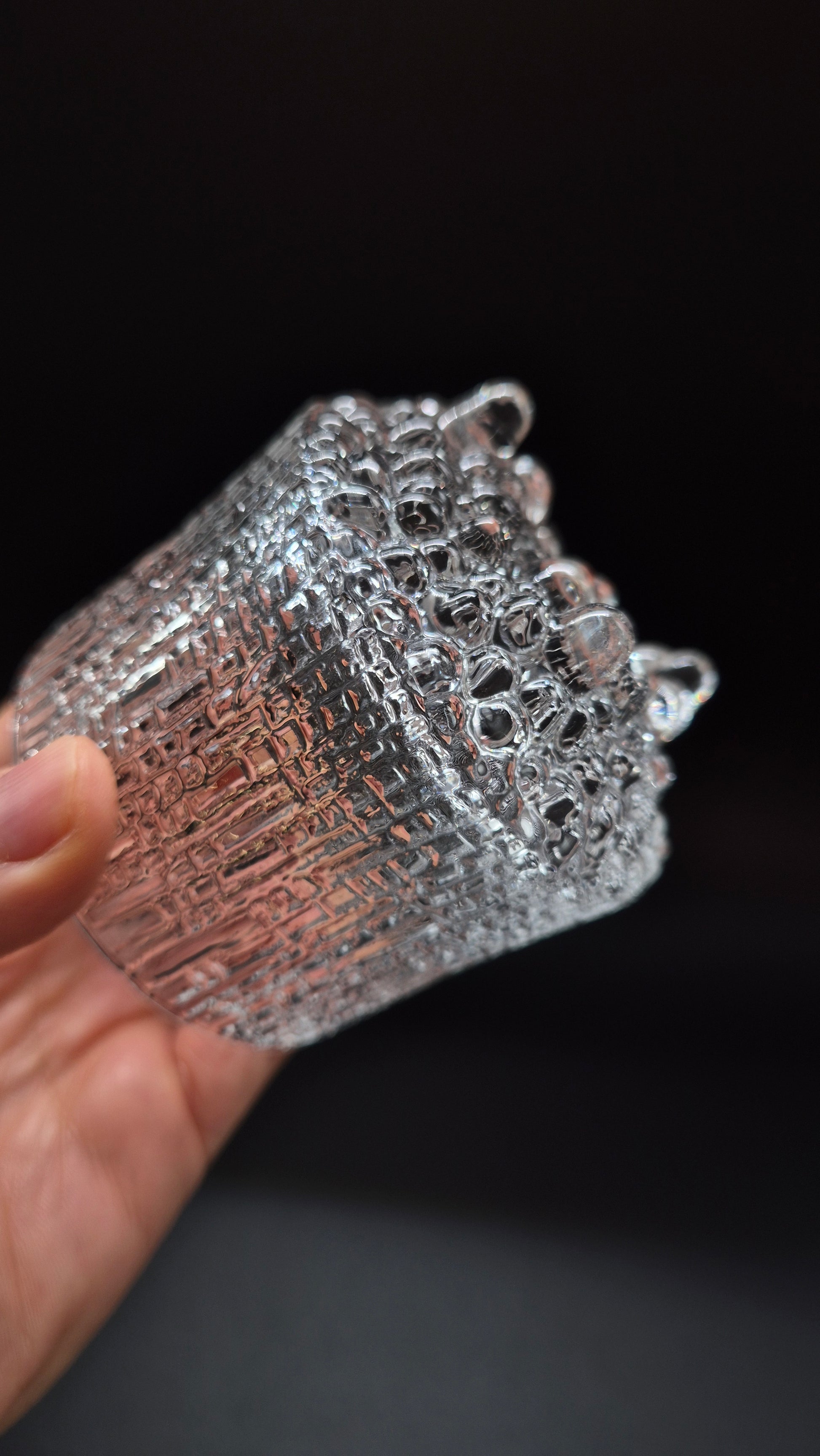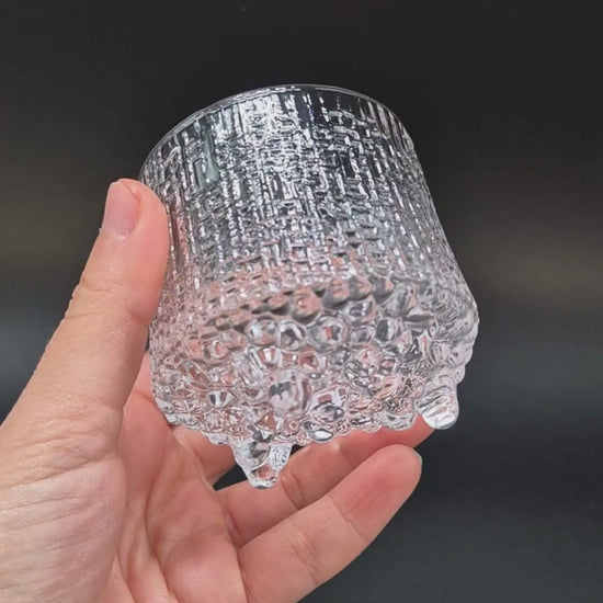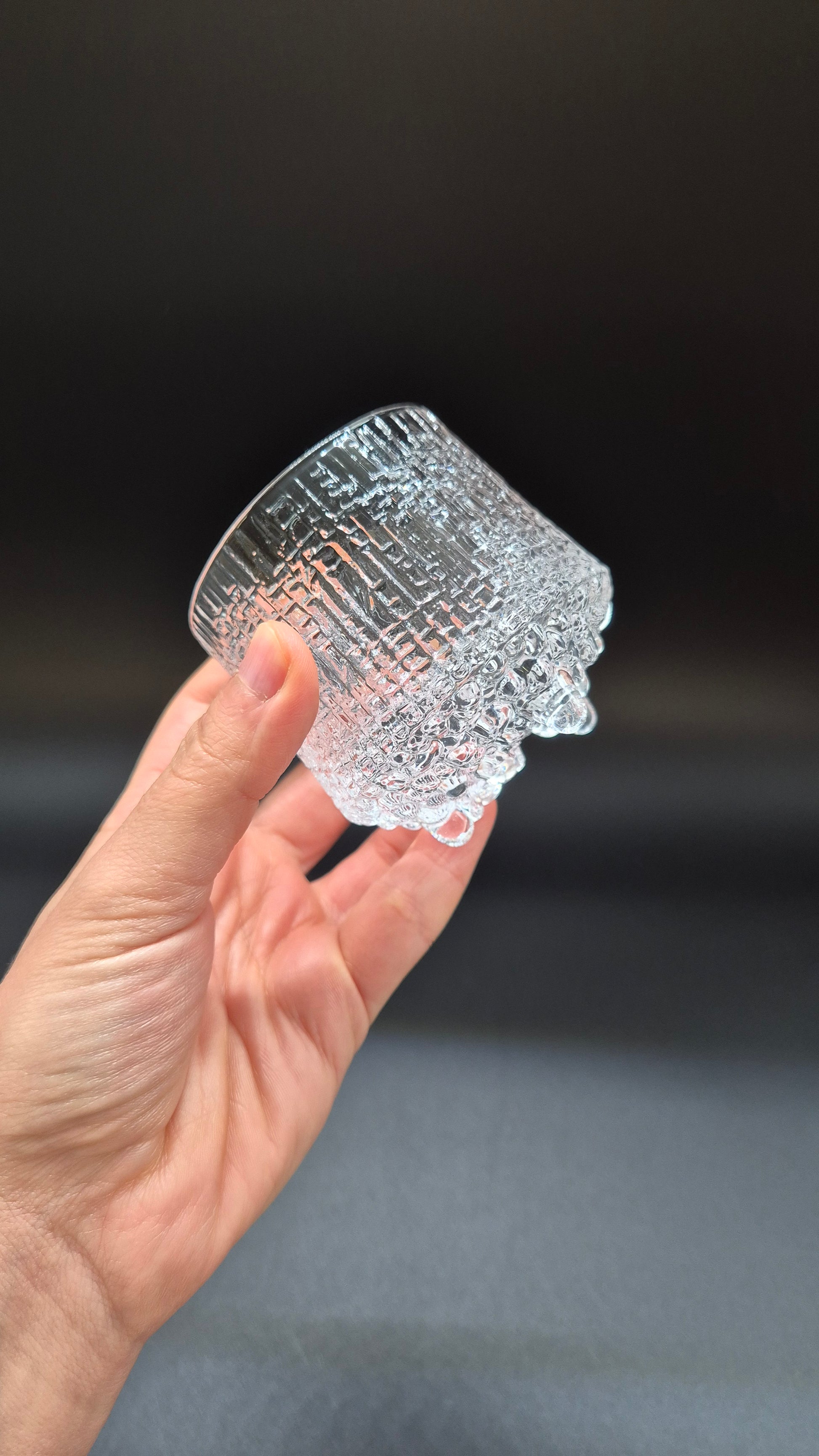 Discover the iconic beauty of Finnish design with the Iittala Ultima Thule Glass, crafted by legendary designer Tapio Wirkkala in 1968. Inspired by the natural world, this glass features a distinctive ice crystal pattern that captures the rugged essence of the Nordic landscape. Made from high-quality glass with a textured, sculptural surface, the Ultima Thule series combines artistic elegance with practical functionality. Perfect as a collectible or for everyday use, this glass is a timeless tribute to mid-century Scandinavian craftsmanship. H7cm Ø7cm